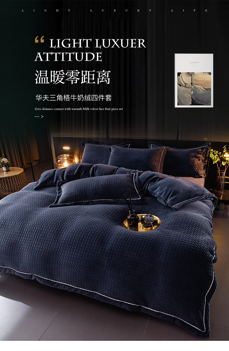 商品名称:(总)印季家纺 2025新款华夫格三角格牛奶绒四件套
