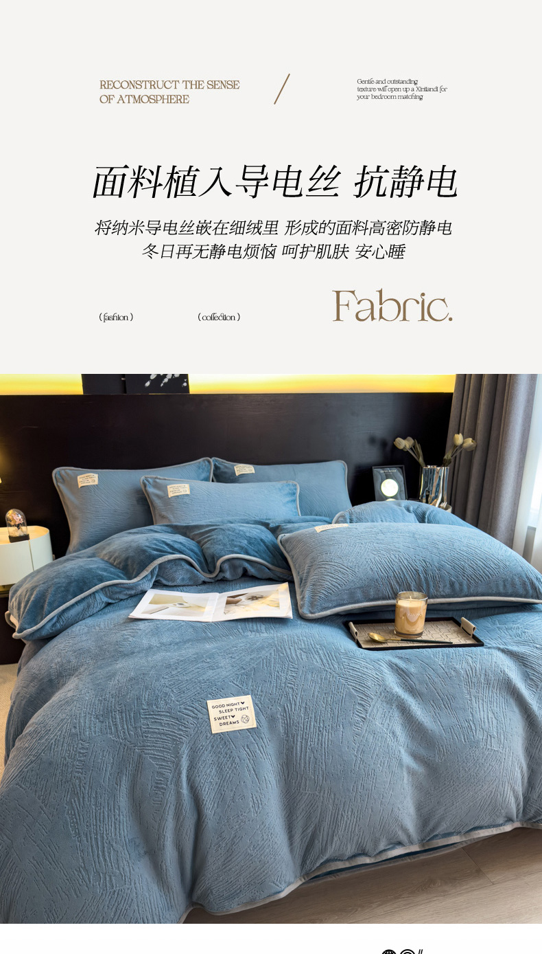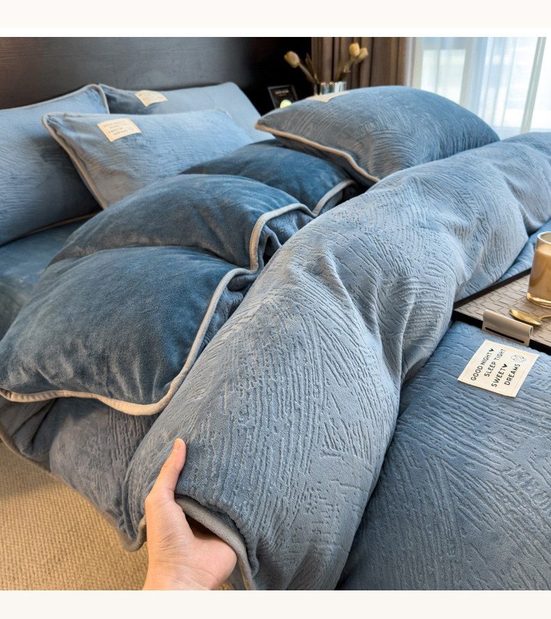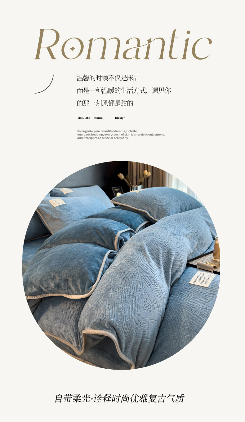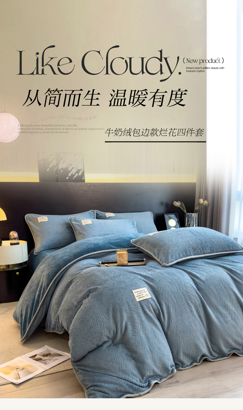 当前位置: 91家纺网 > 商品网购 > 床品套件 > 四件套 > 牛奶绒四件套 > 印季家纺 2025新款牛奶绒包边款烂花四件套 蓝灰-蓝灰