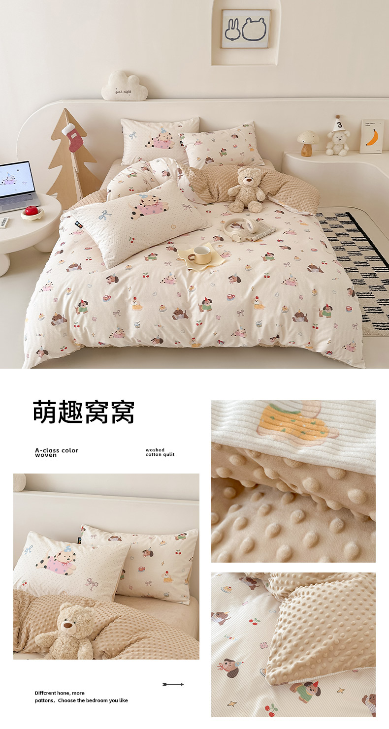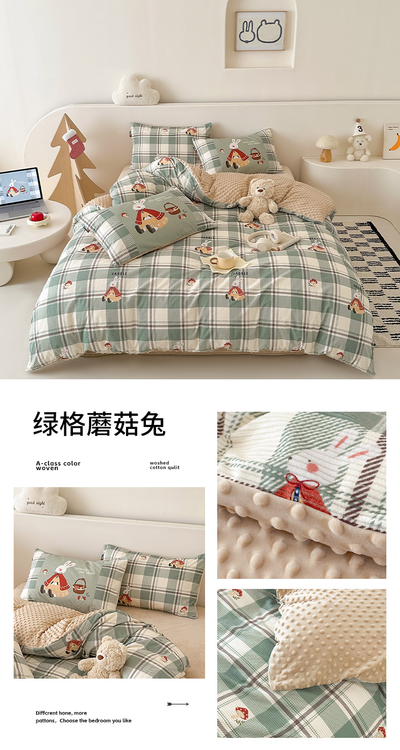 (总)RYB红黄兰 2025新款设计师原创灯芯绒+豆豆绒婴儿绒数码印花四件套,奶咖汪汪队,花蜜粉兔,包装,小熊伙伴,萌趣窝窝,绿格蘑菇兔,花拾光,萌宠花园