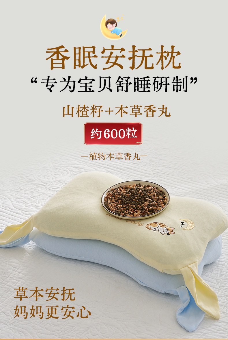 商品名称:乐可 2025新款香眠安抚枕山楂籽合香枕手工香丸枕枕头枕芯 香眠安抚枕-猫咪蓝