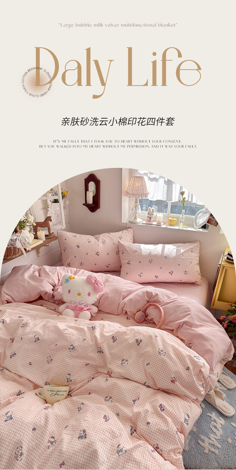 当前位置: 91家纺网 > 商品网购 > 床品套件 > 四件套 > 其它四件套 > 金梦拉家纺 2026新款春夏古法水洗仿棉砂洗云小棉小布袋四件套 绿野仙兔