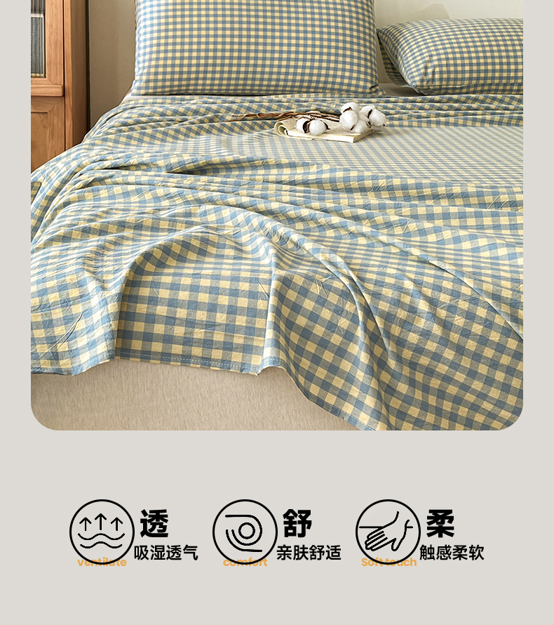 • 91家纺网 家纺一手货源 找家纺 21度C 2026新款A类全棉水洗棉母婴级床单 琉璃格