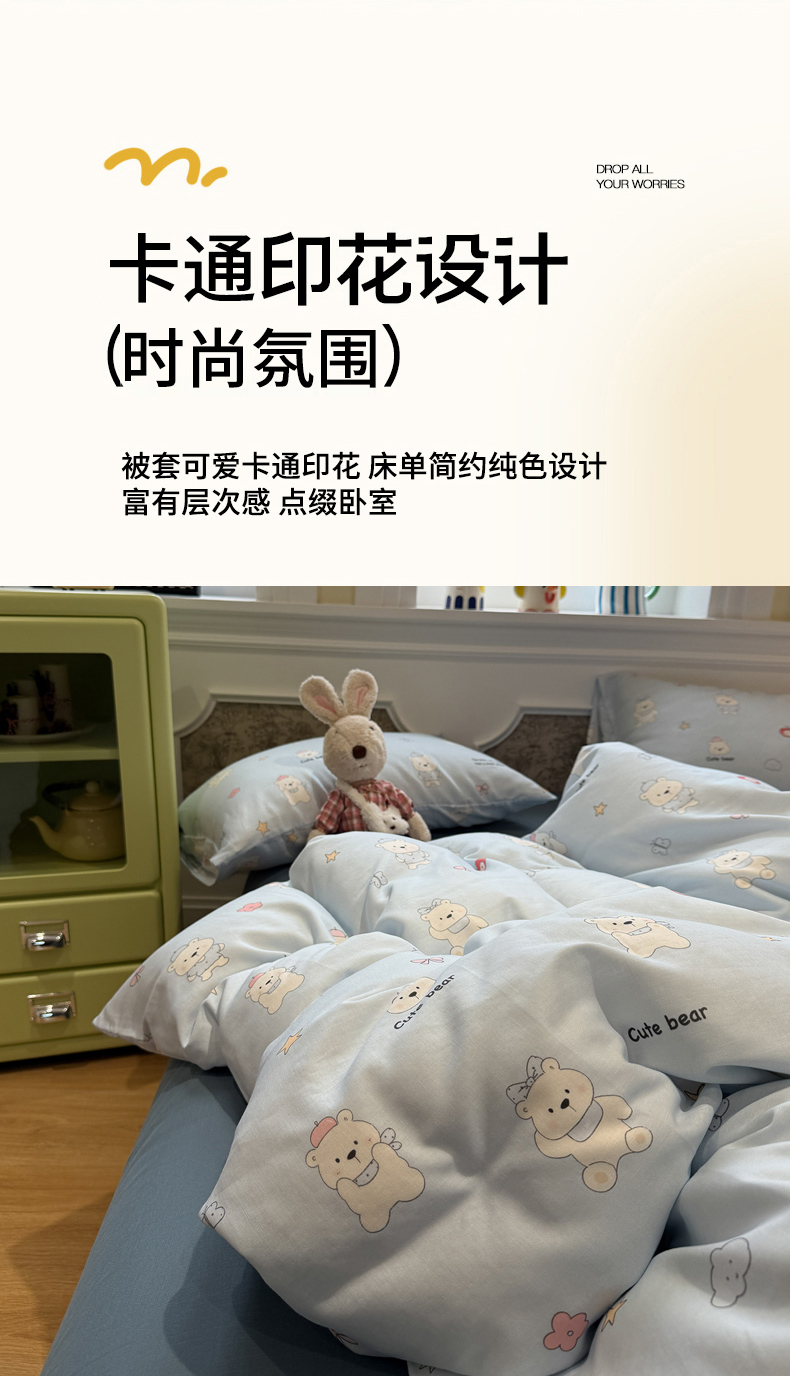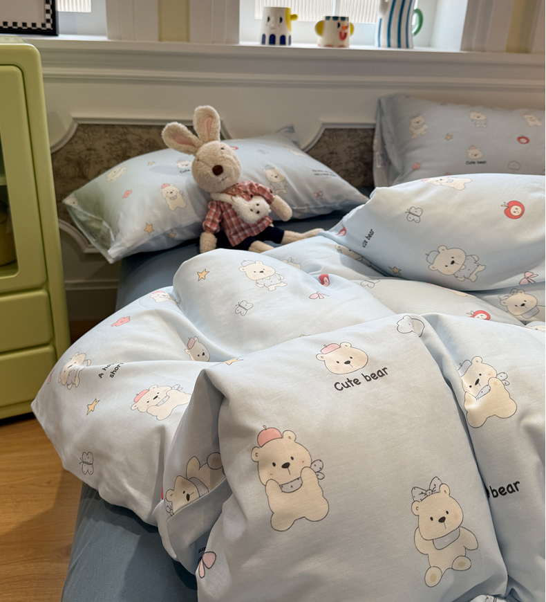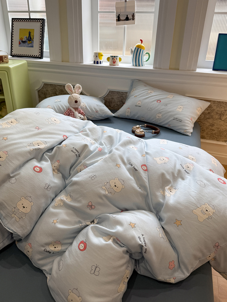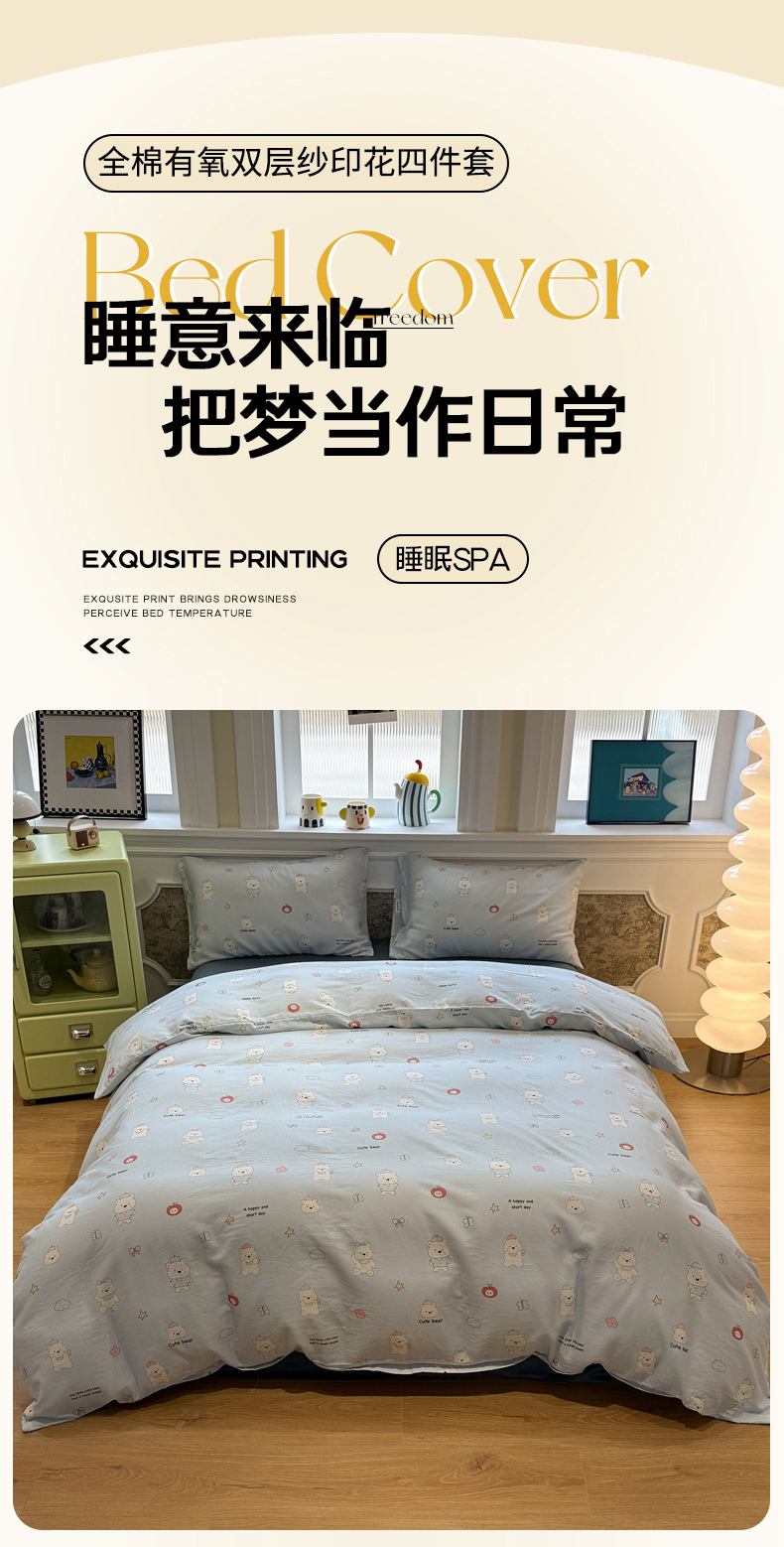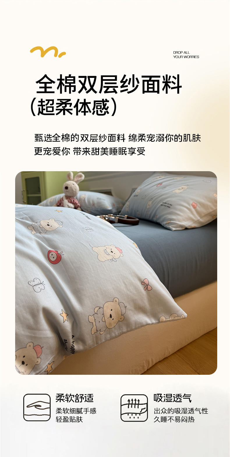 当前位置: 91家纺网 > 商品网购 > 床品套件 > 四件套 > 双层纱四件套 > 塞纳 2026新款.全棉有氧双层纱四件套-场景一 软糖小熊-蓝