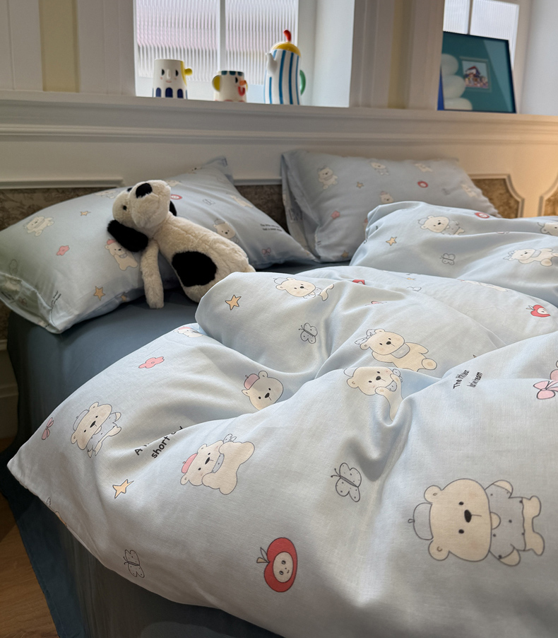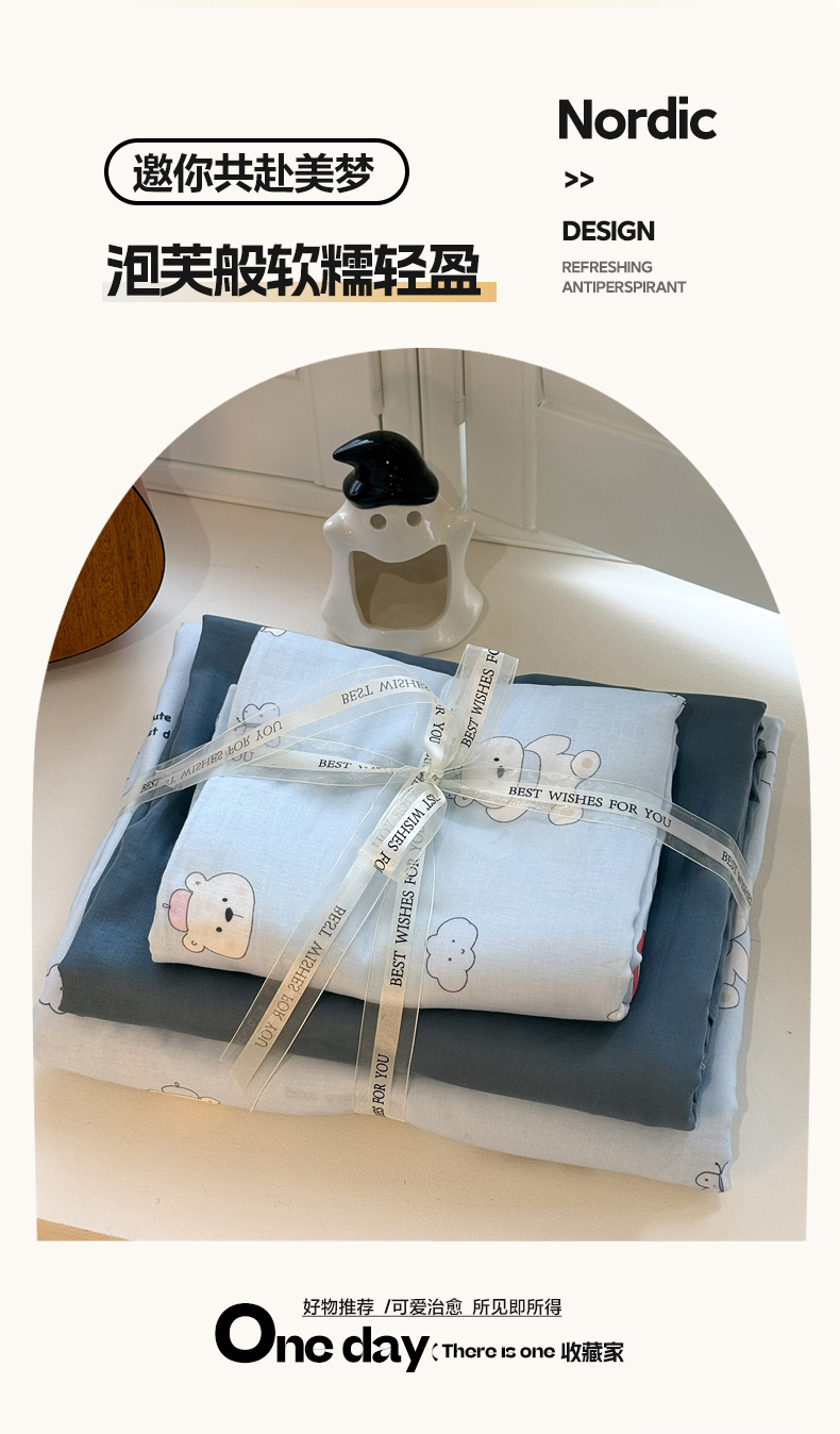 当前位置: 91家纺网 > 商品网购 > 床品套件 > 四件套 > 双层纱四件套 > 塞纳 2026新款.全棉有氧双层纱四件套-场景二 软糖小熊-蓝