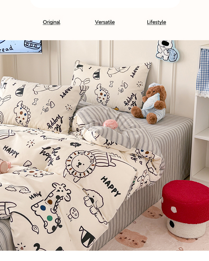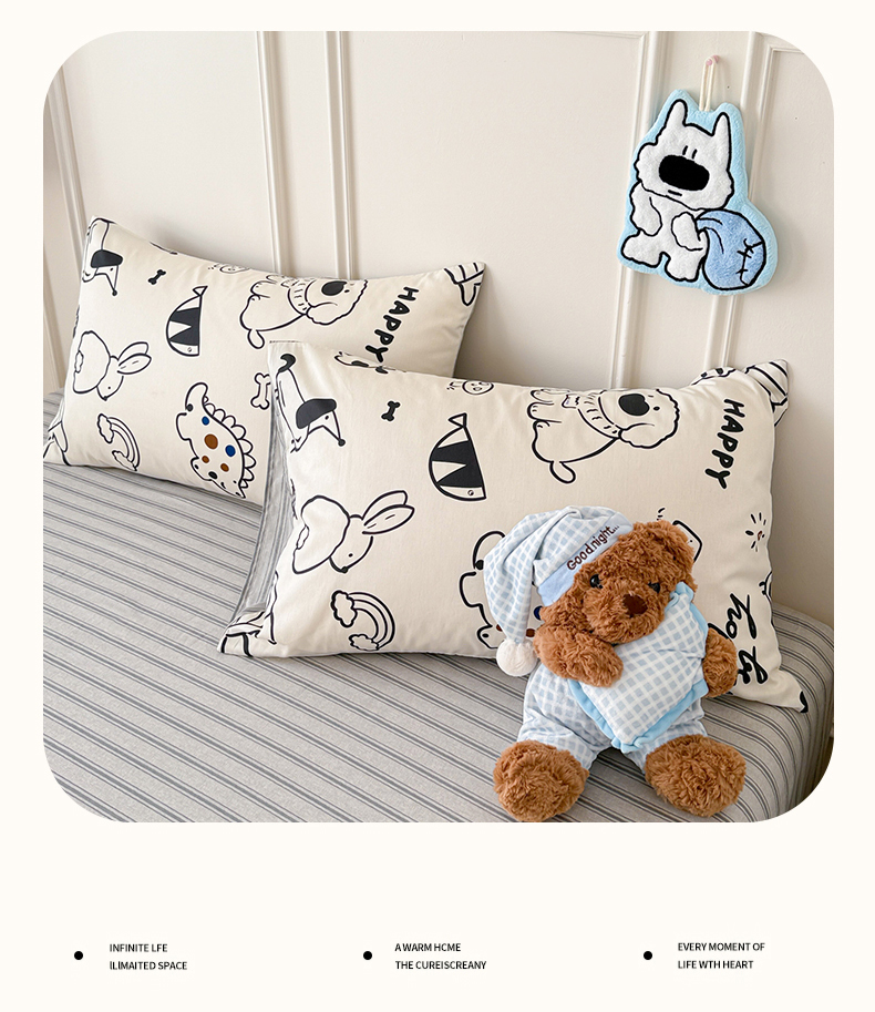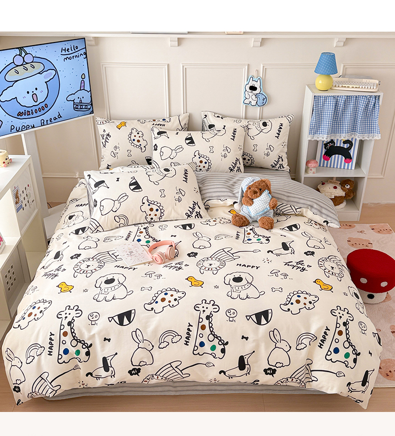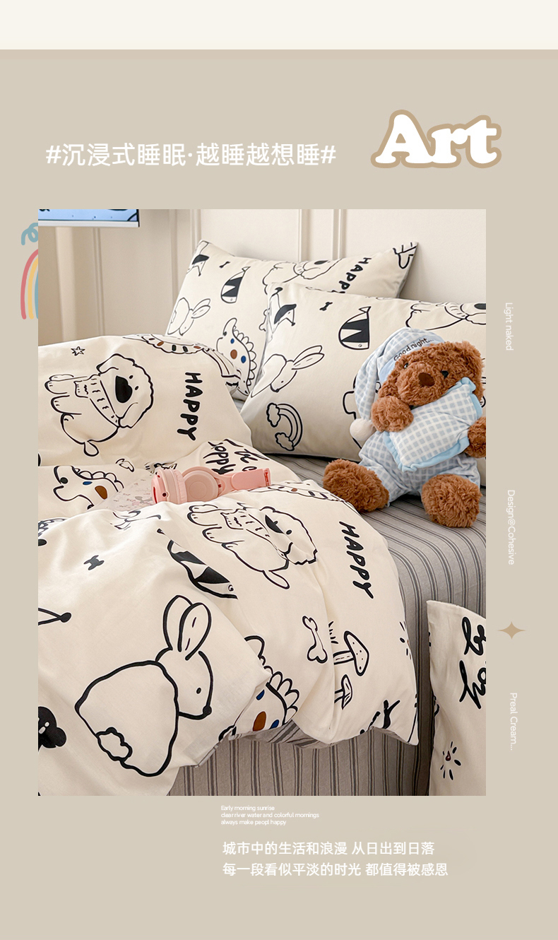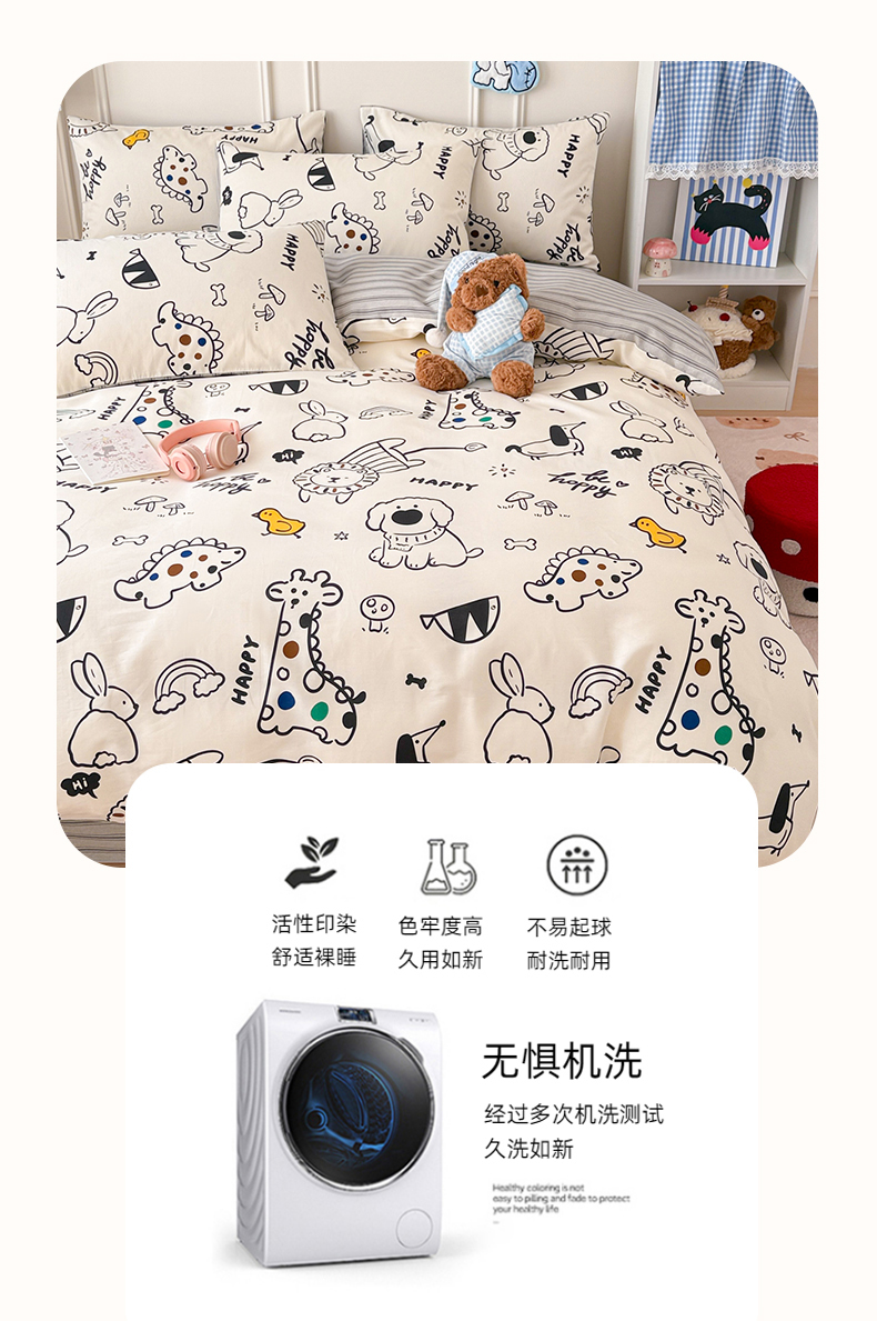简宜家居(朝初家纺) 2026新款全棉12868卡通印花四件套大耳朵兔兔系列 黑白动物集