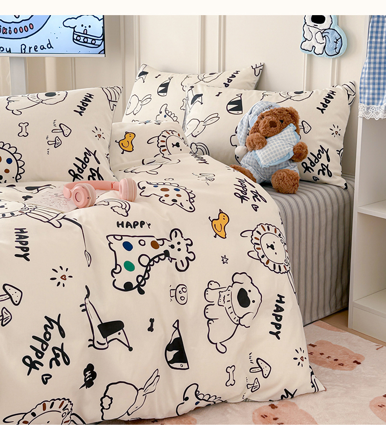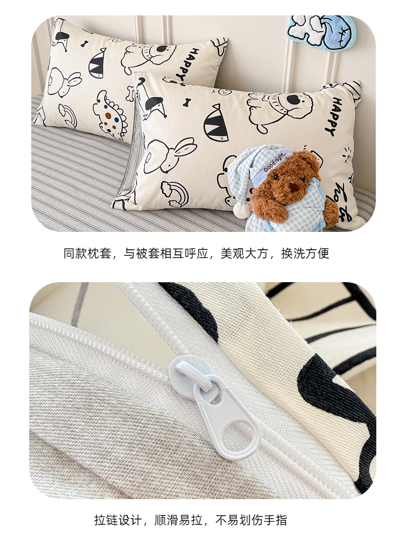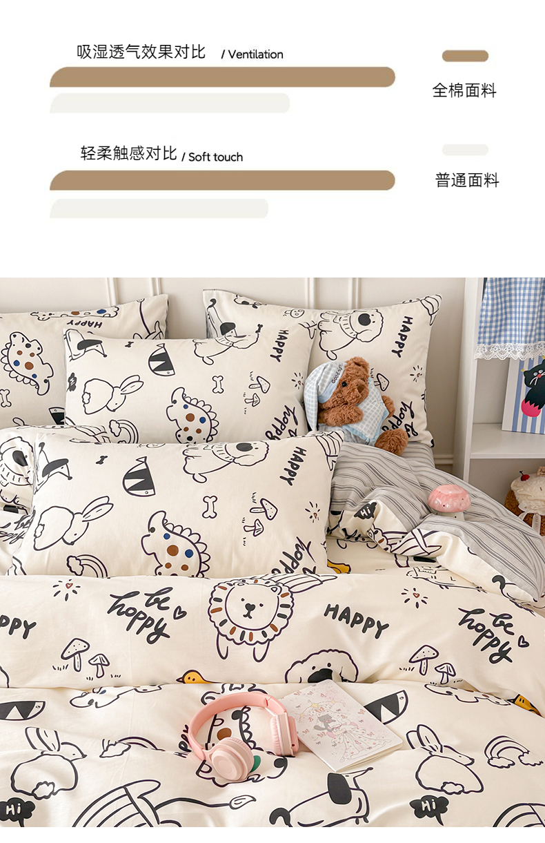 商品名称:简宜家居(朝初家纺) 2026新款全棉12868卡通印花四件套大耳朵兔兔系列 黑白动物集