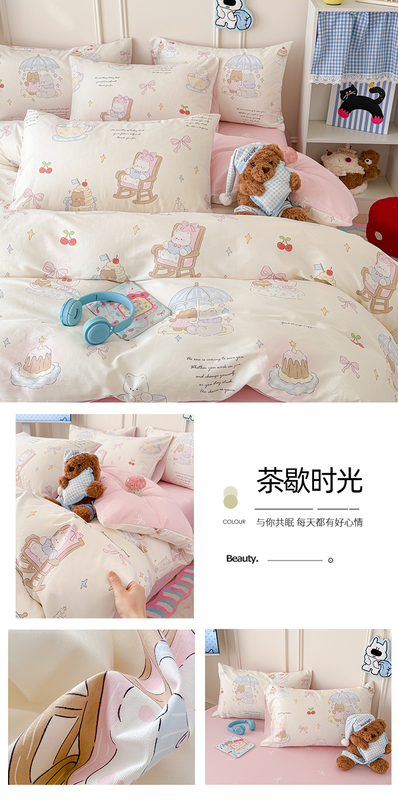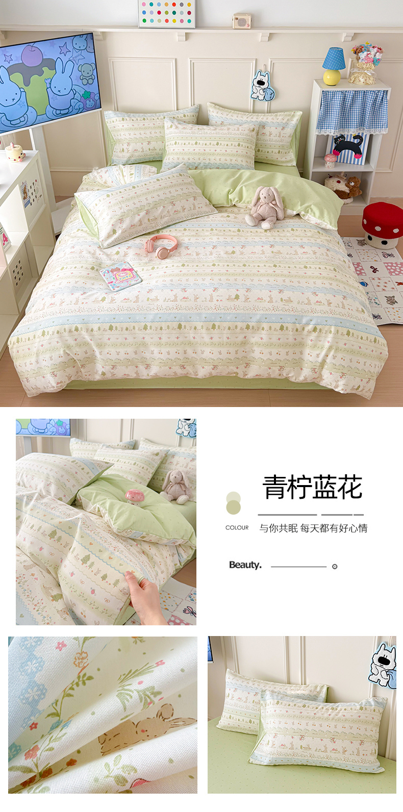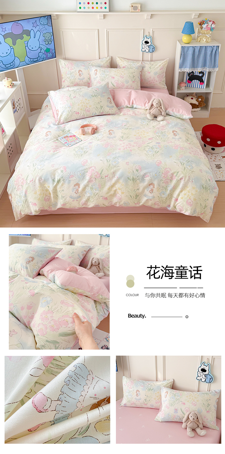简宜2023新款13070纯棉全棉40支斜纹卡通小清新学生三件套四件套,花园兔,紫葡仙子,倩影粉,hello 萌熊,嘟嘟小车,简笔画,开心小黄鸭,梦幻城堡,浓情爱意