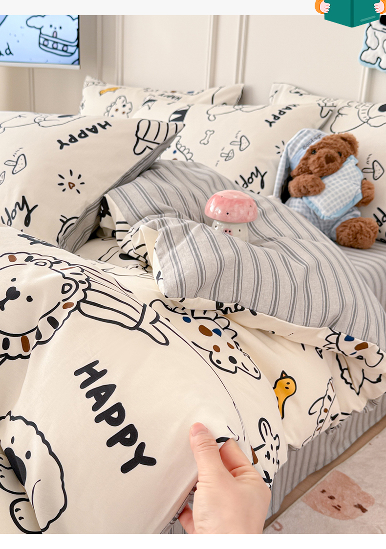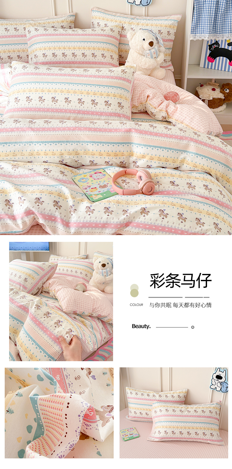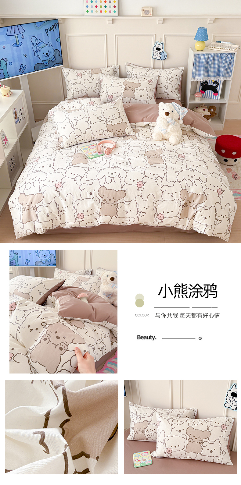 简宜2023新款13070纯棉全棉40支斜纹卡通小清新学生三件套四件套,花园兔,紫葡仙子,倩影粉,hello 萌熊,嘟嘟小车,简笔画,开心小黄鸭,梦幻城堡,浓情爱意