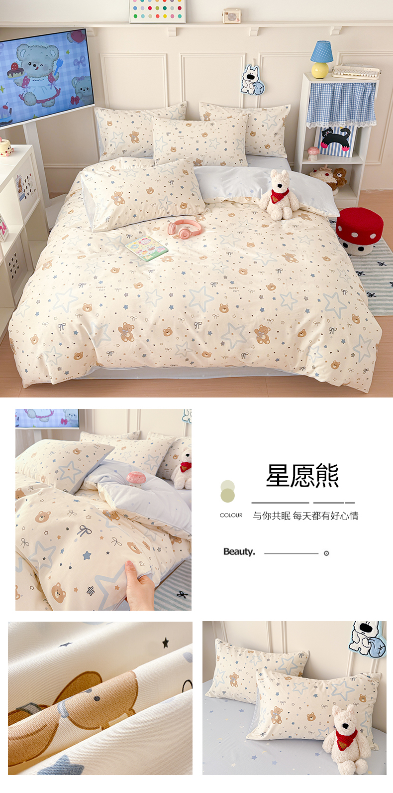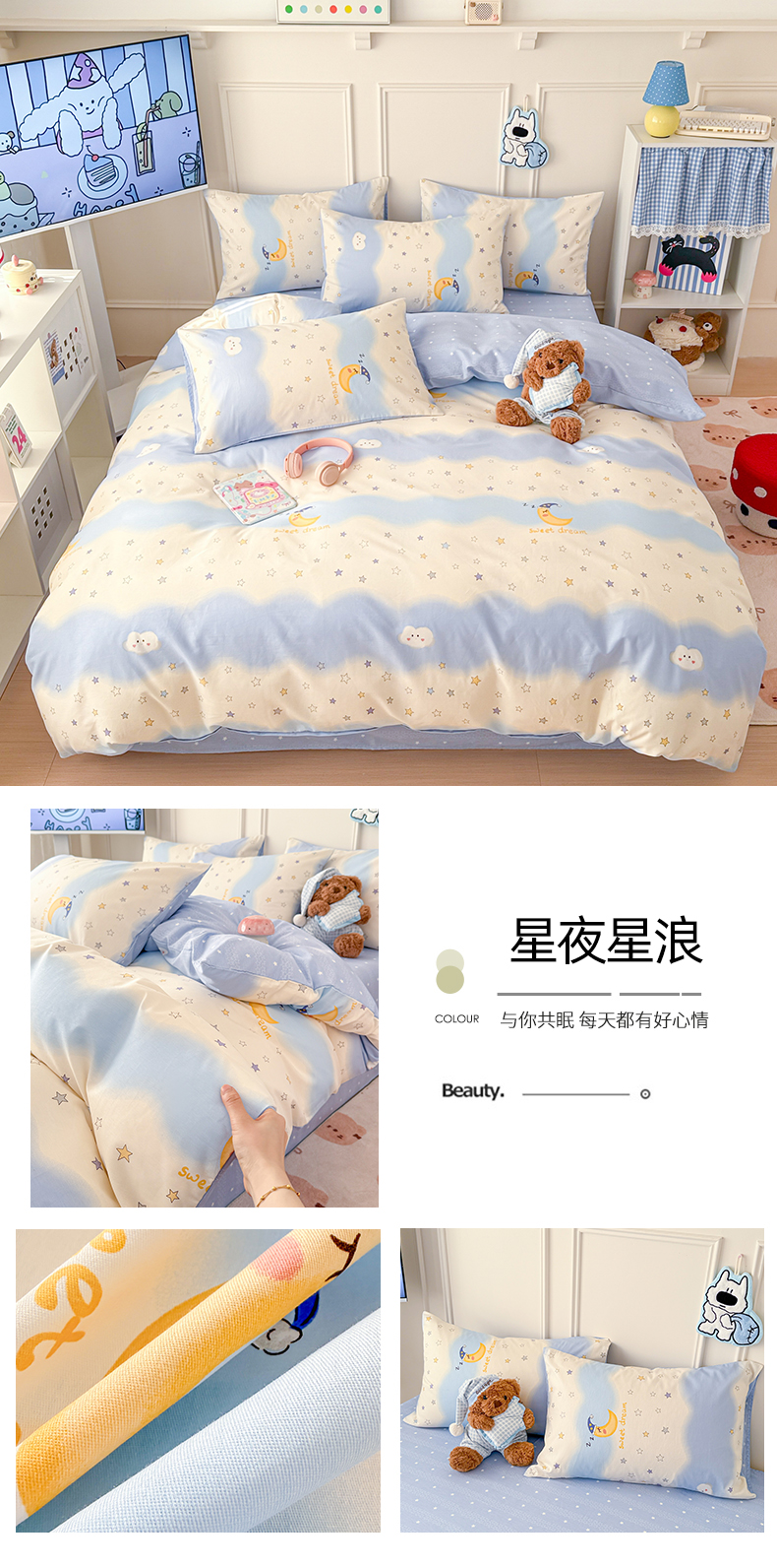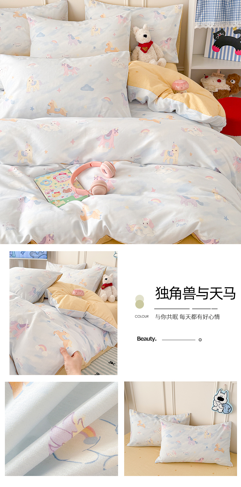 (总)简宜家居 2023新款小清新卡通纯棉全棉斜纹四件套,贩卖美好,蓝彩,蓝色心愿,梦享,奇妙农场,星月童话