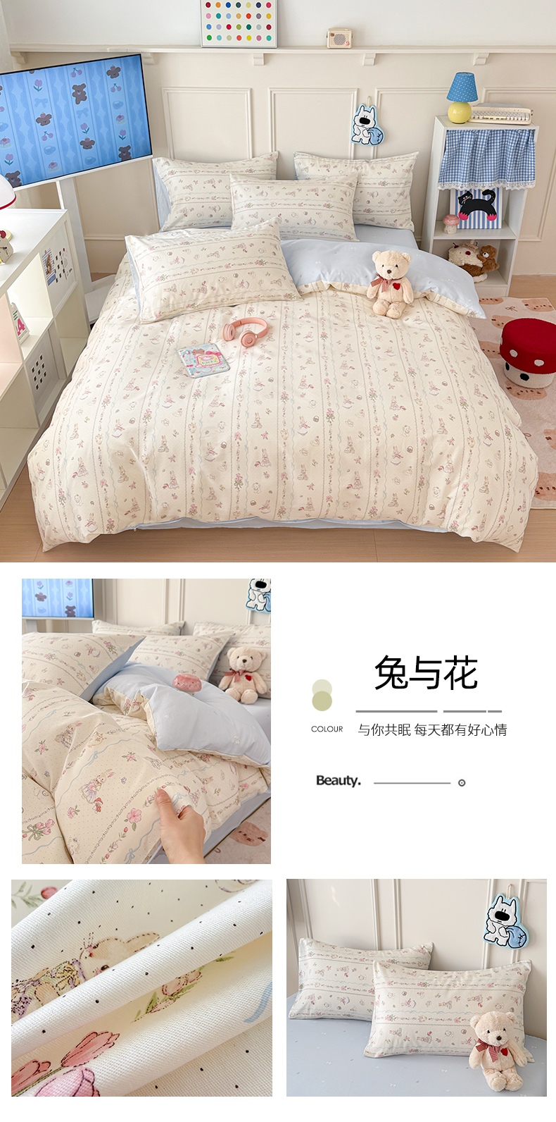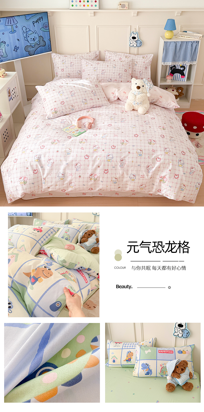 (总)简宜家居(朝初家纺) 2026新款全棉12868卡通印花四件套大耳朵兔兔系列,元气恐龙格,彩条马仔,茶歇时光,大耳朵兔兔,粉格甜崽,黑白动物集,蝴蝶结萌宠,花海童话,蓝粉汪集,蓝格甜崽,蓝格汪星,奶芙呼呼,七彩星星,青柠蓝花,手绘汪星人,甜娃娃,兔叽碎花,兔与花,线条蓝猫咪,线条木马,小微笑,小熊涂鸦,星夜星浪,星愿熊,hello粉猫
