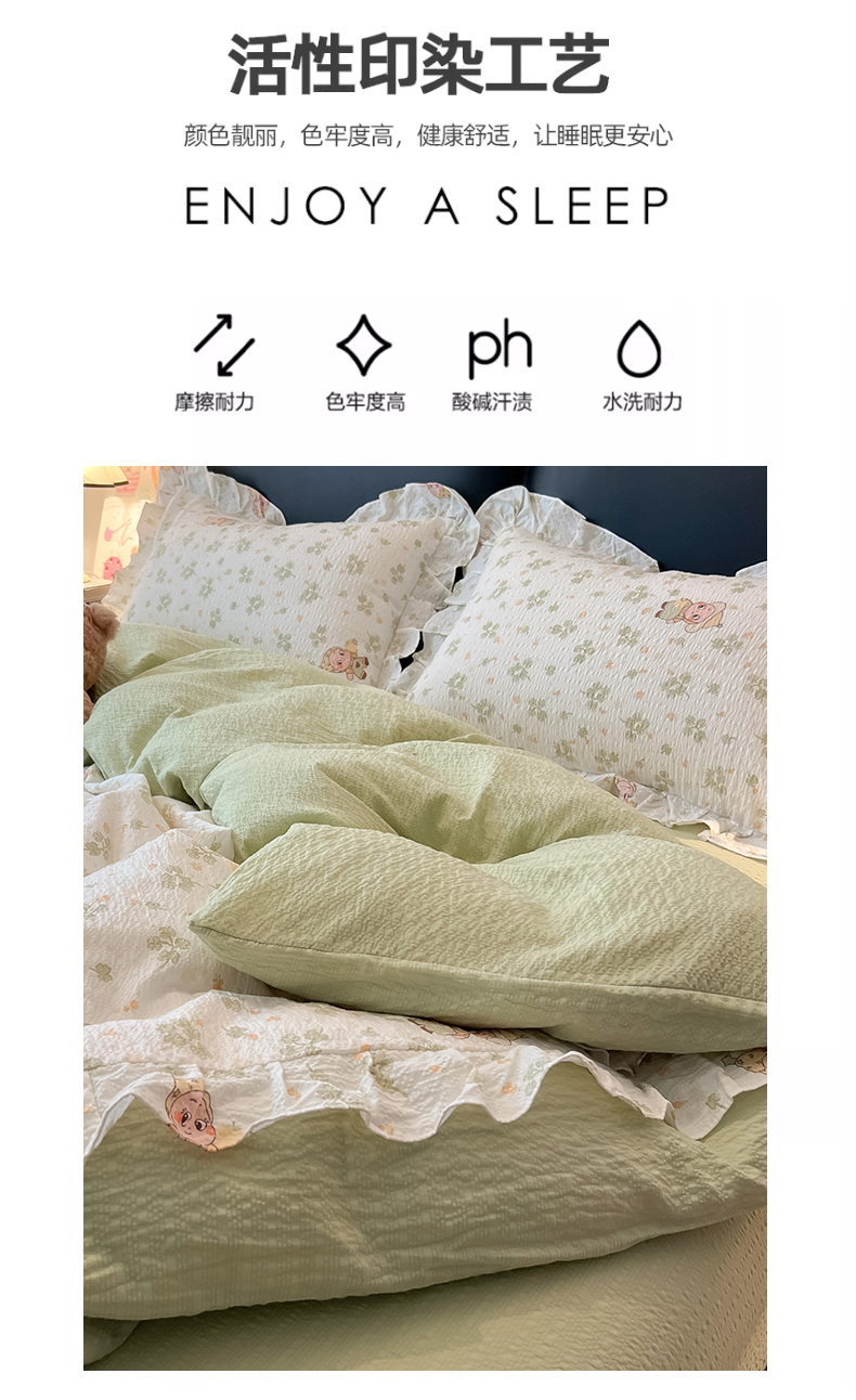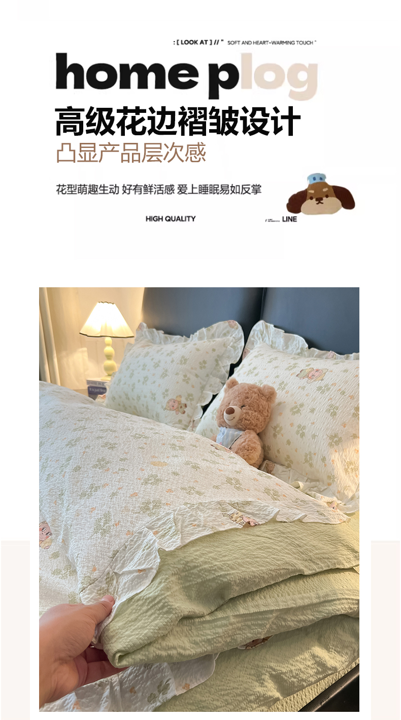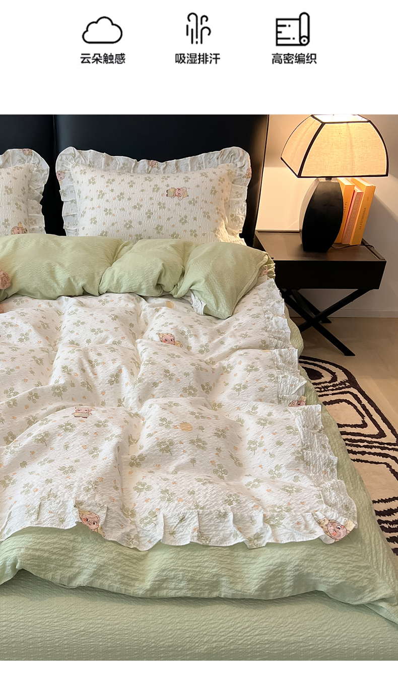 当前位置: 91家纺网 > 商品网购 > 床品套件 > 四件套 > 其它四件套 > 子钦家纺 2026春夏新款提花泡芙棉花边拼角工艺床单床笠四件套-卡哇伊 卡哇伊-欢乐颂