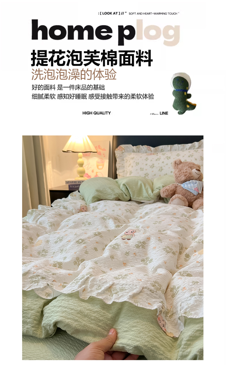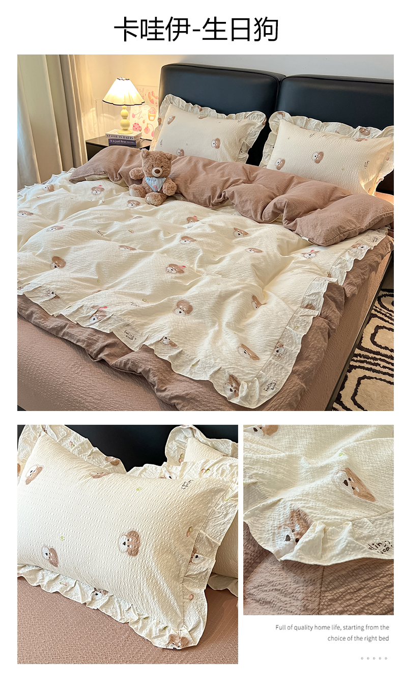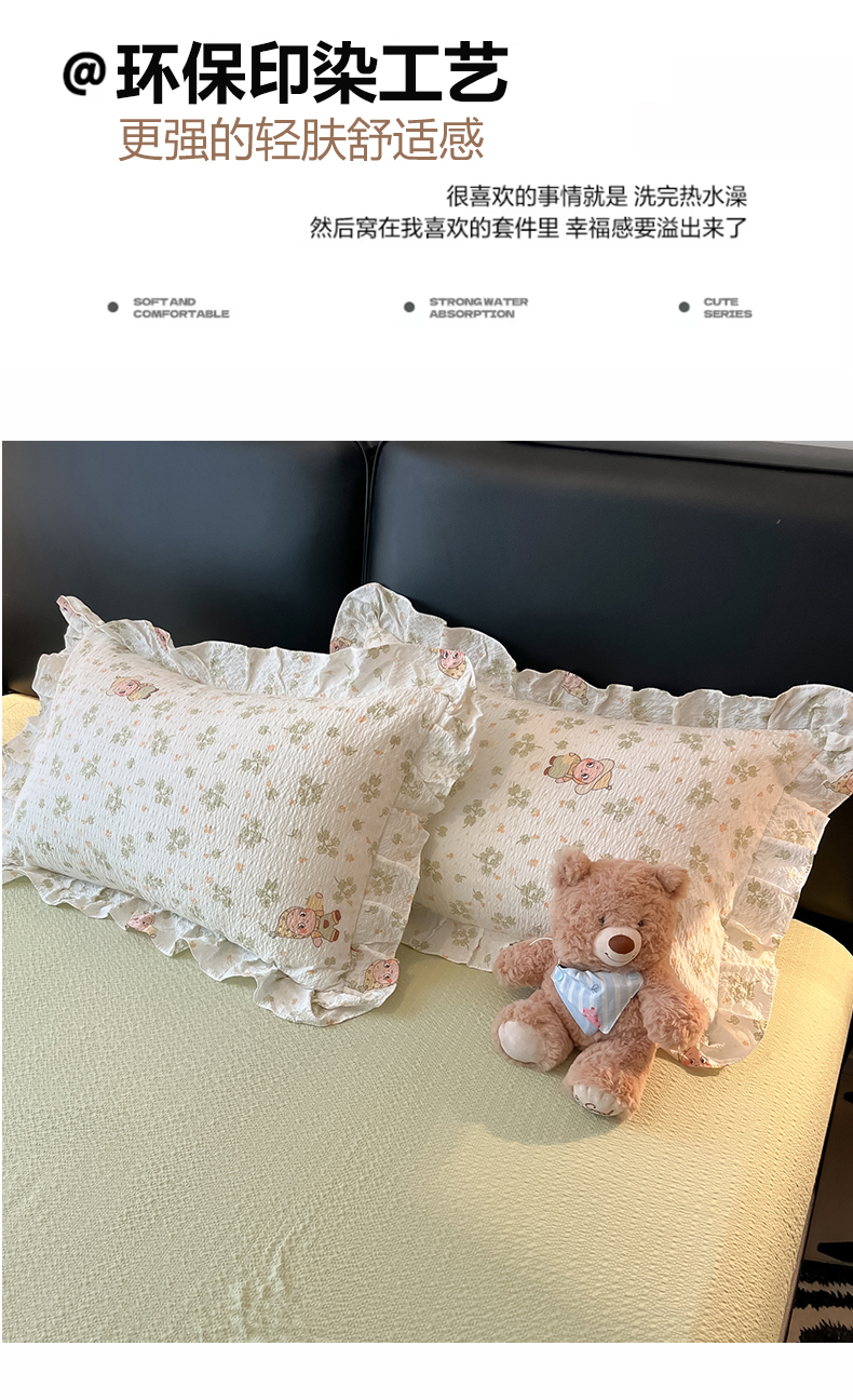 当前位置: 91家纺网 > 商品网购 > 床品套件 > 四件套 > 其它四件套 > 子钦家纺 2026春夏新款提花泡芙棉花边拼角工艺床单床笠四件套-卡哇伊 卡哇伊-欢乐颂