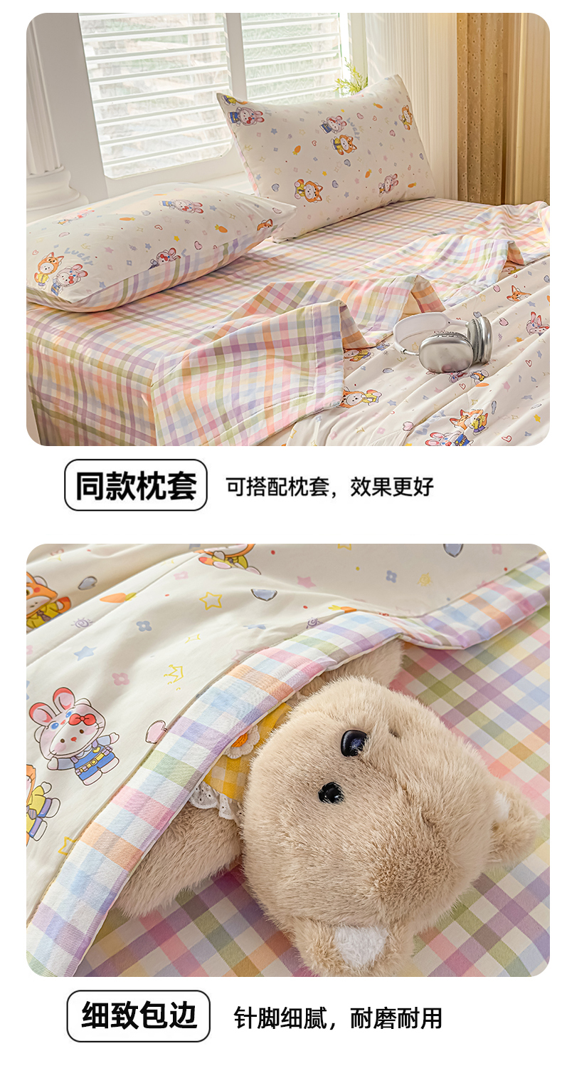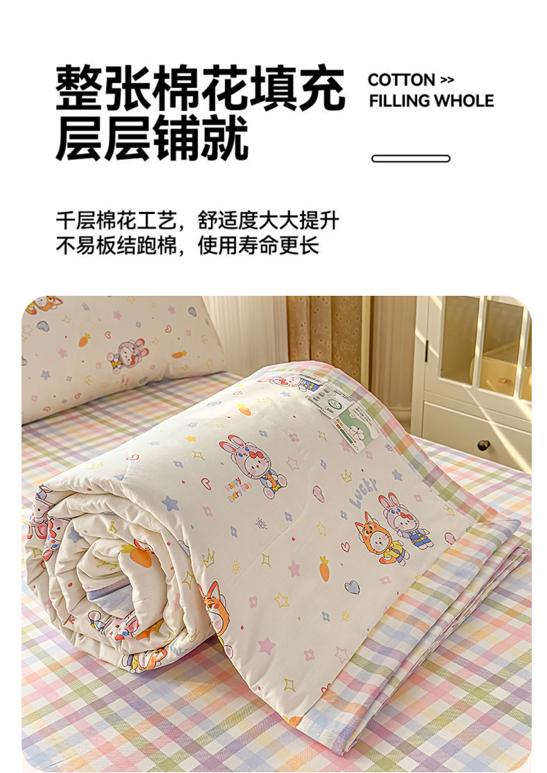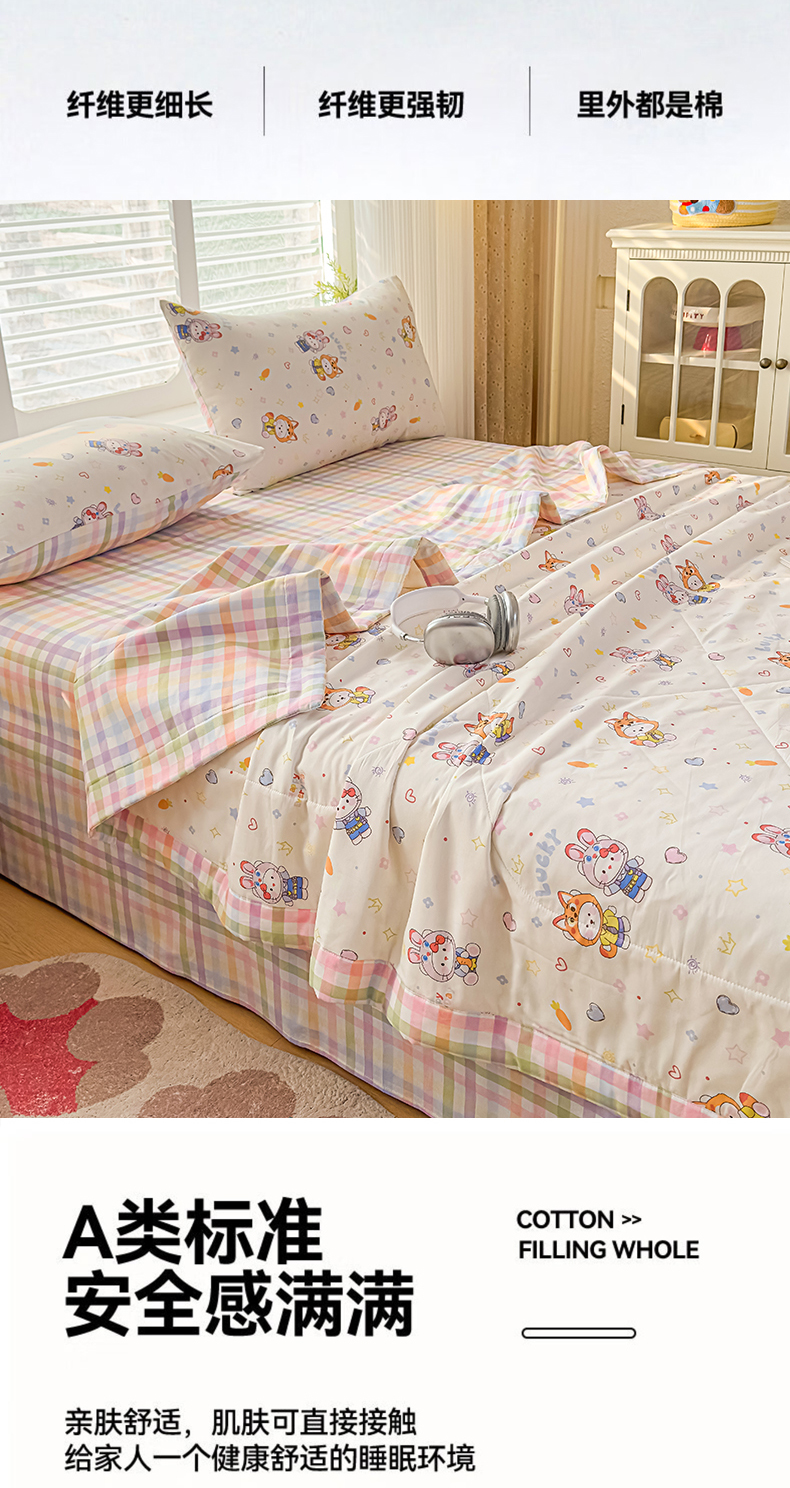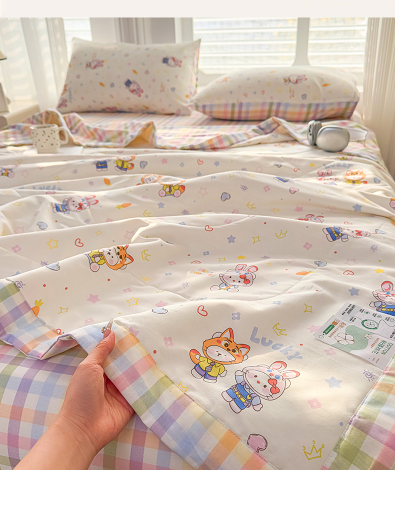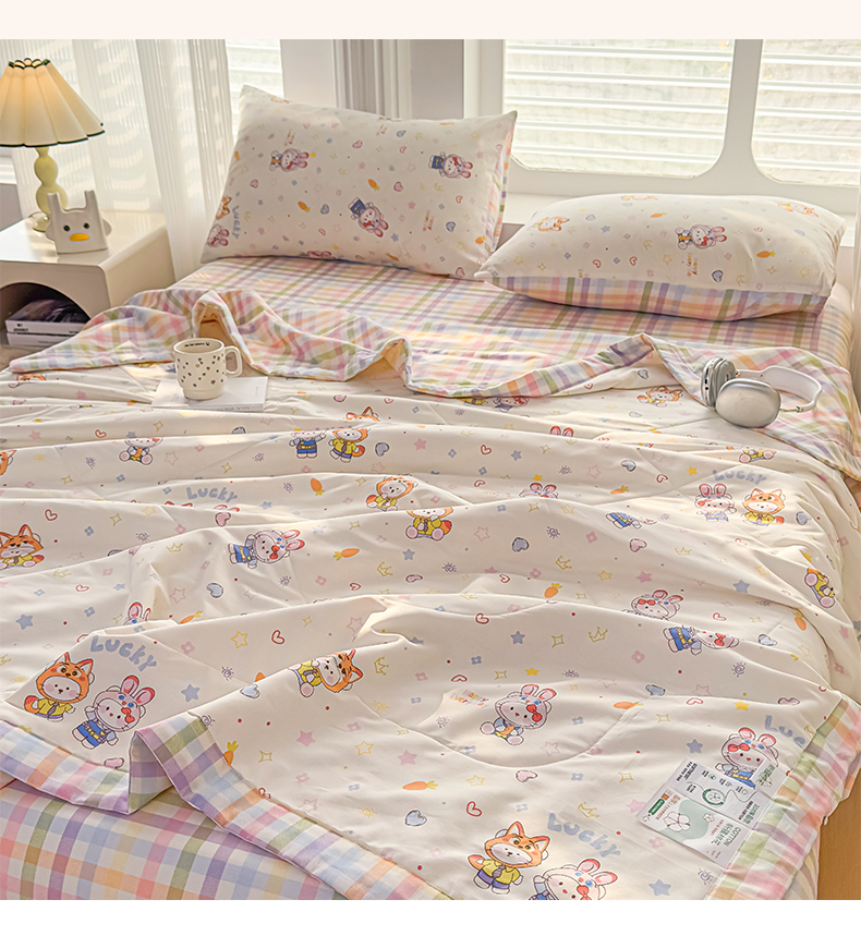 • 91家纺网 家纺一手货源 找家纺 蓝雀翎 2025新款全棉印花新疆棉花夏被 甜蜜小兔