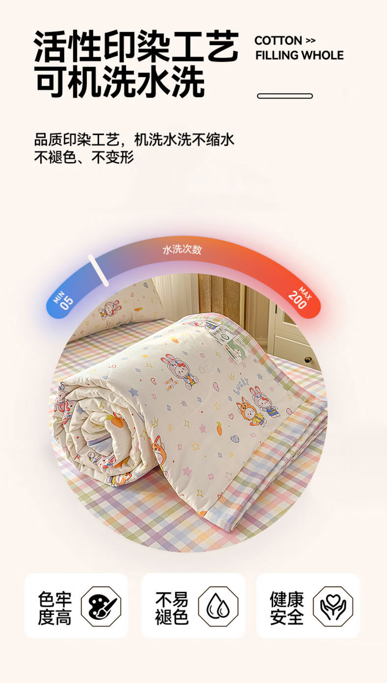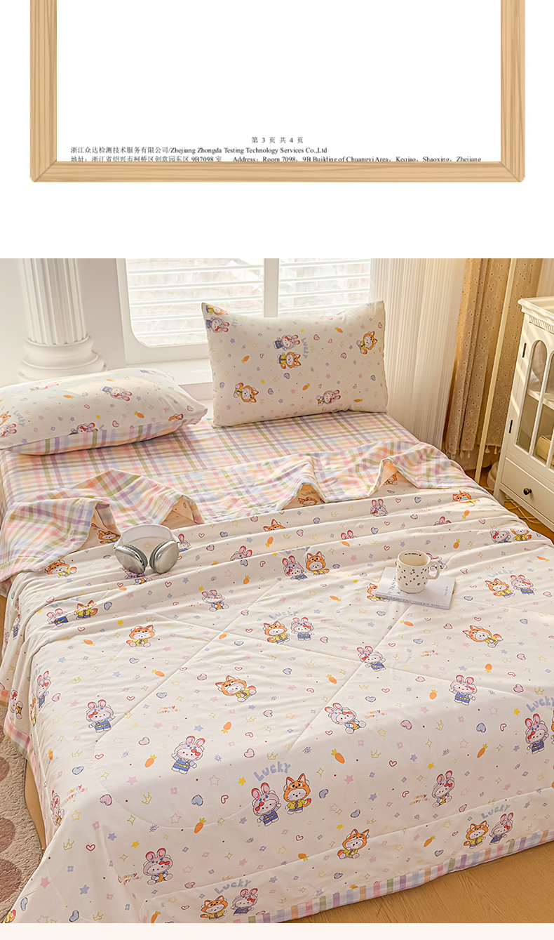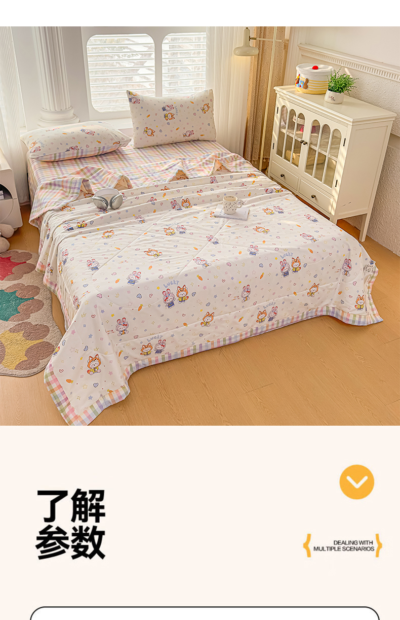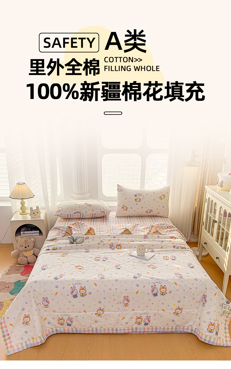 • 91家纺网 家纺一手货源 找家纺 蓝雀翎 2025新款全棉印花新疆棉花夏被 甜蜜小兔