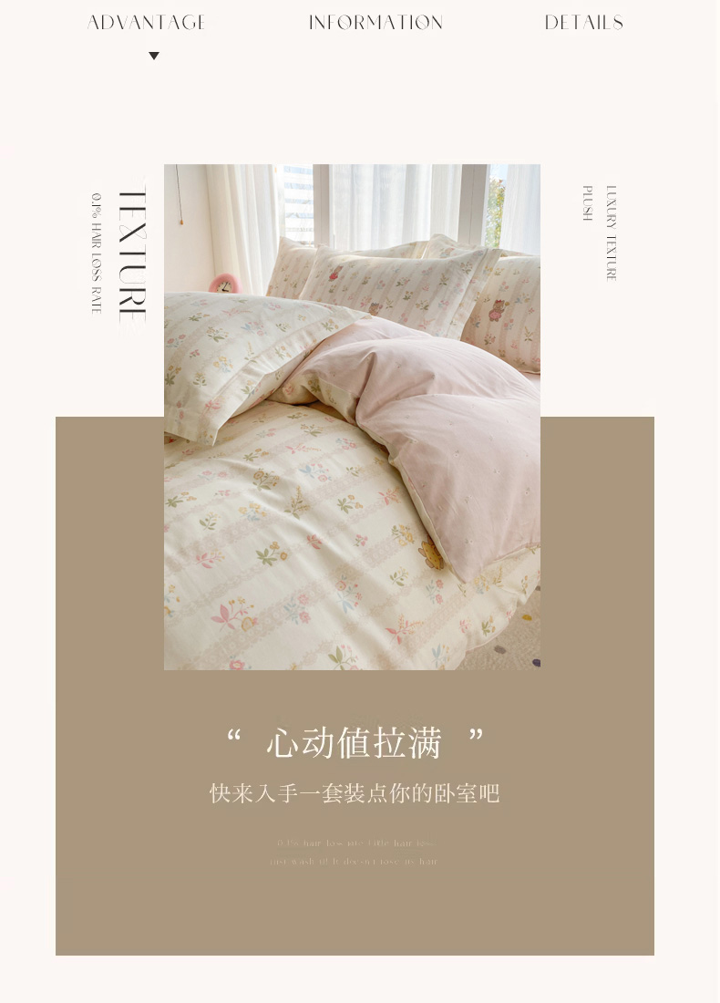 【床笠款】1.8加大四件套-被套240*220,床笠180*200,枕套48*74*2 | ¥109.00 |