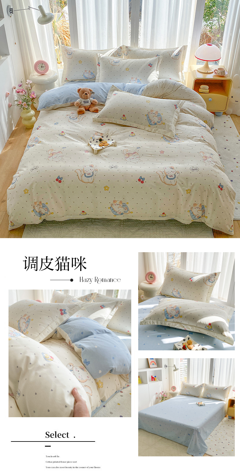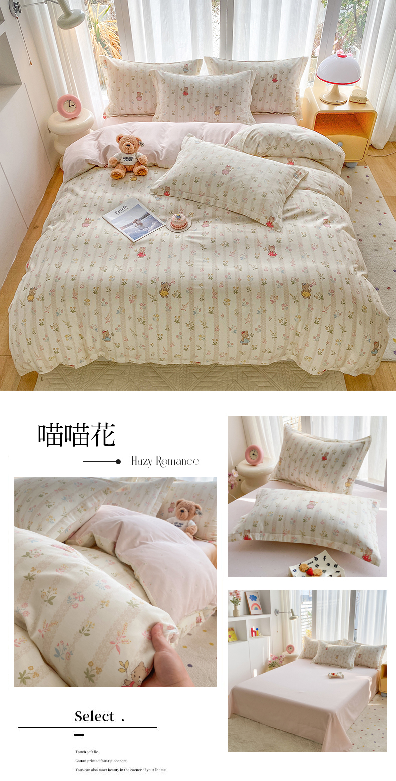 当前位置: 91家纺网 > 商品网购 > 床品套件 > 四件套 > 全棉普通四件套 > 钰锦珀家纺 2026新款13070全棉直角床单三件套四件套 喵喵花