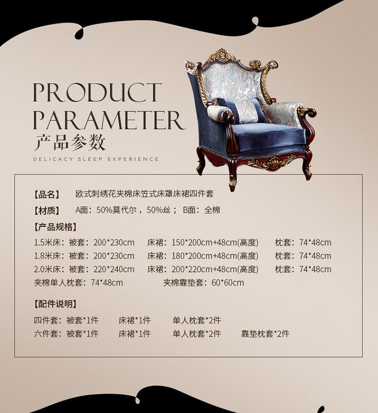 当前位置: 91家纺网 > 商品网购 > 床品套件 > 四件套 > 全棉普通四件套 > 兴美佳家纺 欧式刺绣花夹棉床笠式床罩床裙四件套 美丽传说