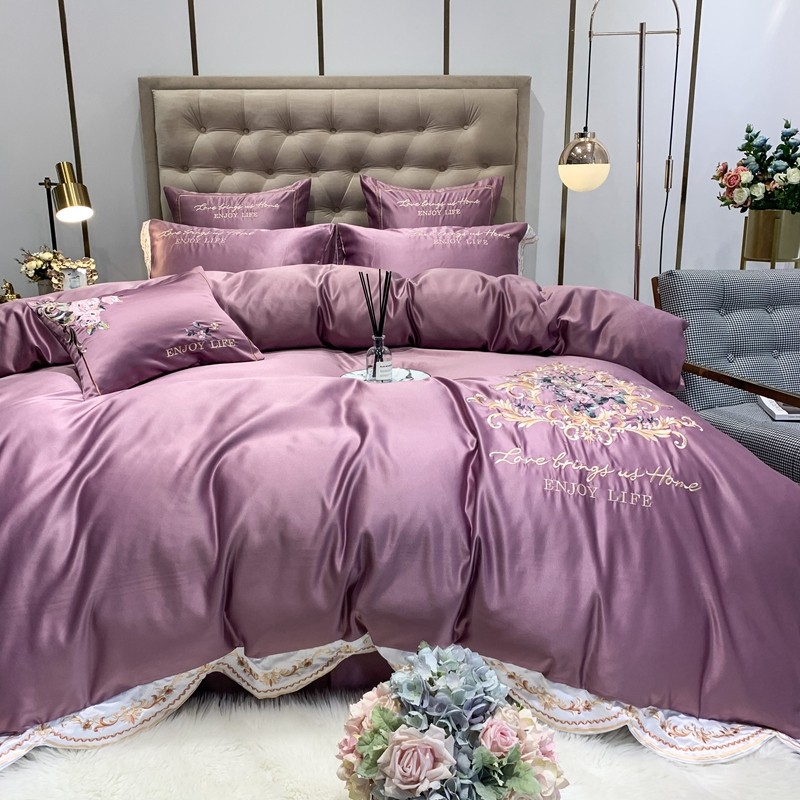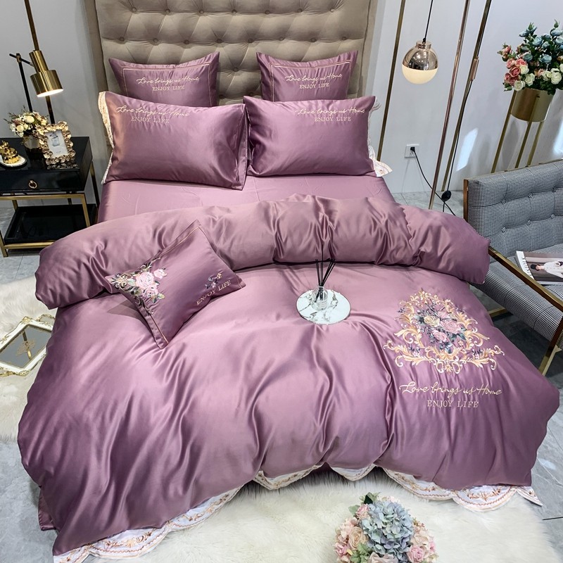 商品名称:安妮 2020新款AB版水洗真丝贡缎全棉四件套 紫色