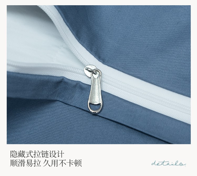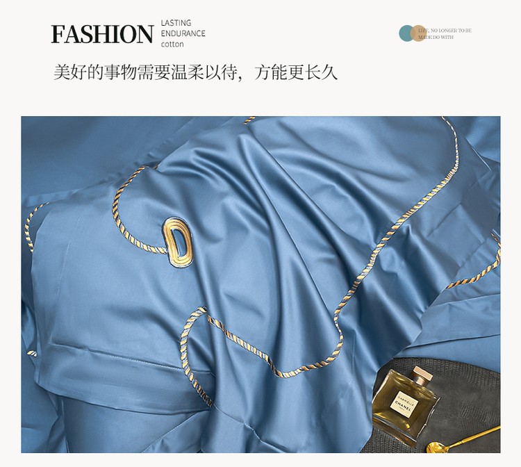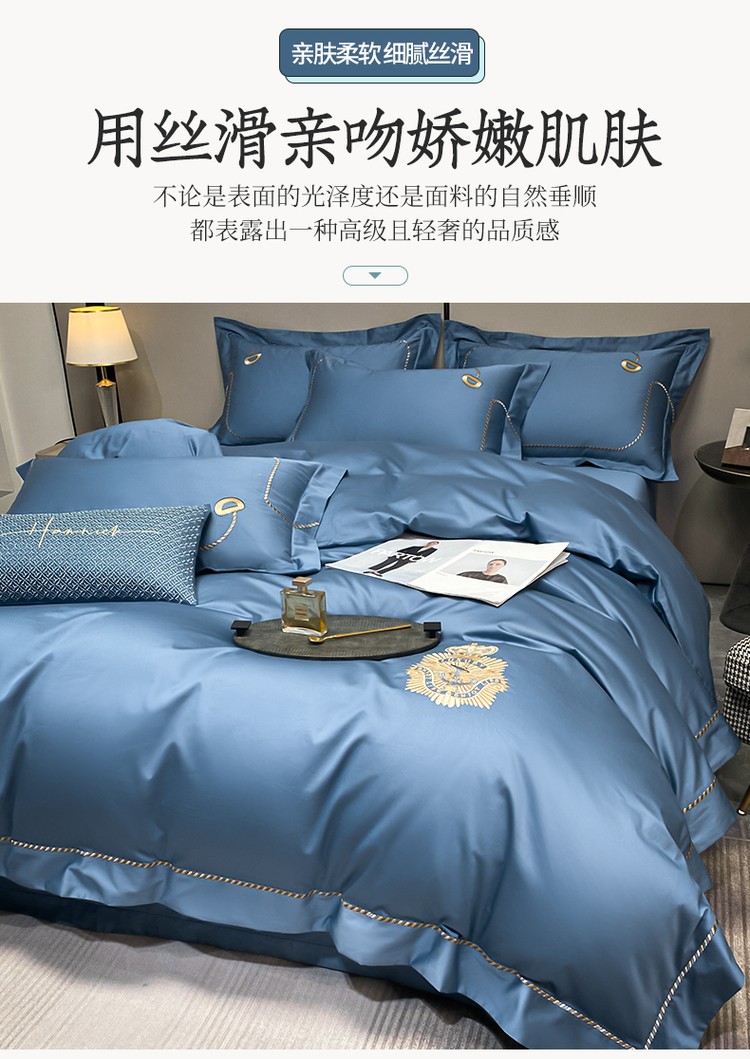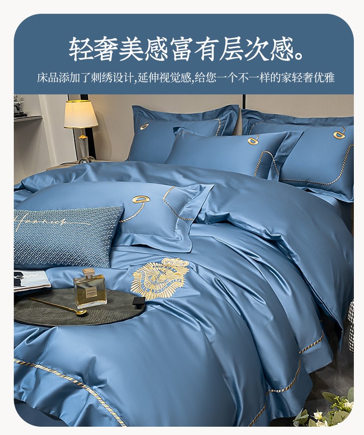 柔觉家纺 天丝刺绣贡缎提花全棉四件套,柔梦-海蓝