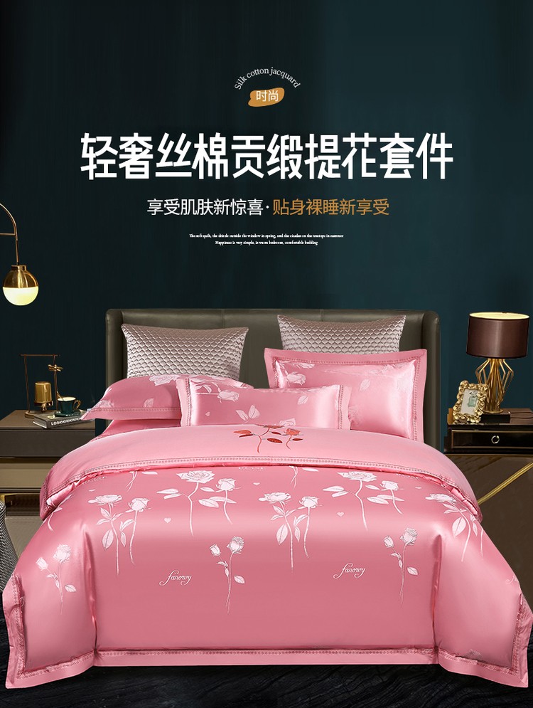 (总)柔觉家纺 天丝刺绣贡缎提花全棉四件套,艾利斯-兰金,宝琪-藕荷玉,罗娜恋歌-粉,奥威丽雅-蓝,奥薇丽雅(豆沙),龙凤交鸣(大红),罗娜恋歌-红玉,情恋花语(大红),罗兰庄园-靛蓝,莫奈情怀-蓝金,叶语浪漫-浅紫,约瑟情调-灰金,约瑟情调-魅紫,雅普诺-卡兰,小憩-雪青,科西利亚-金色,雅普诺-红灰,水汐-绸缎兰