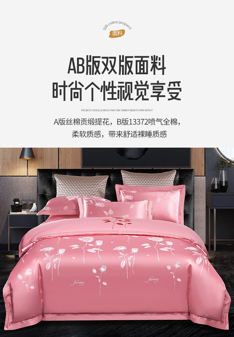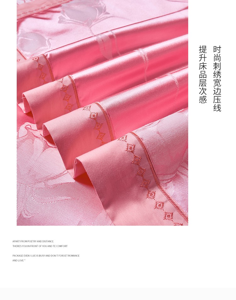 柔觉家纺 天丝刺绣贡缎提花全棉四件套,卡曼时尚-粉紫