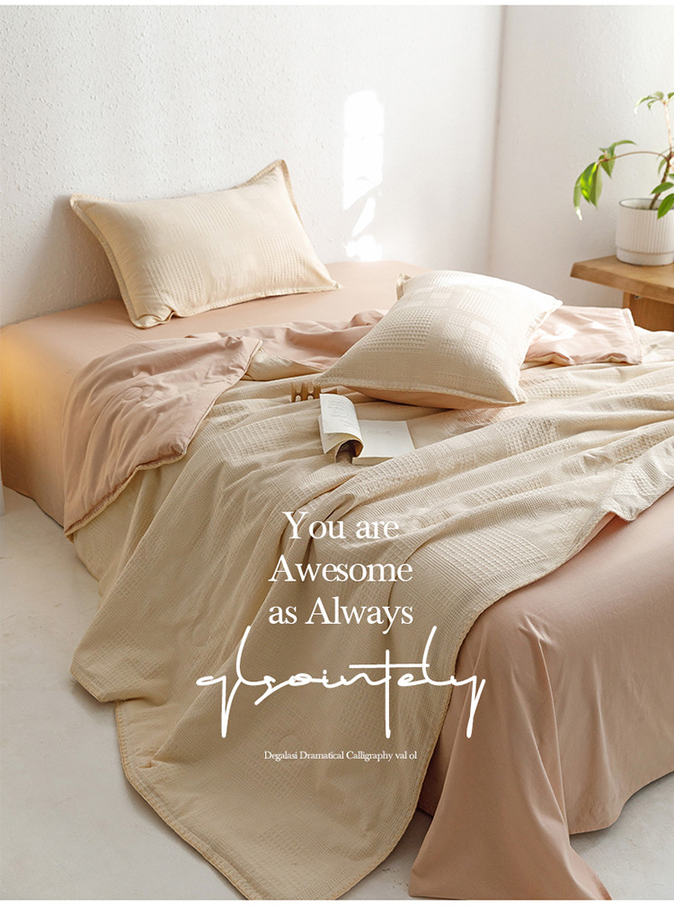 沐棉家居 2023新款全棉华夫格夏被四件套 华夫格-卡其