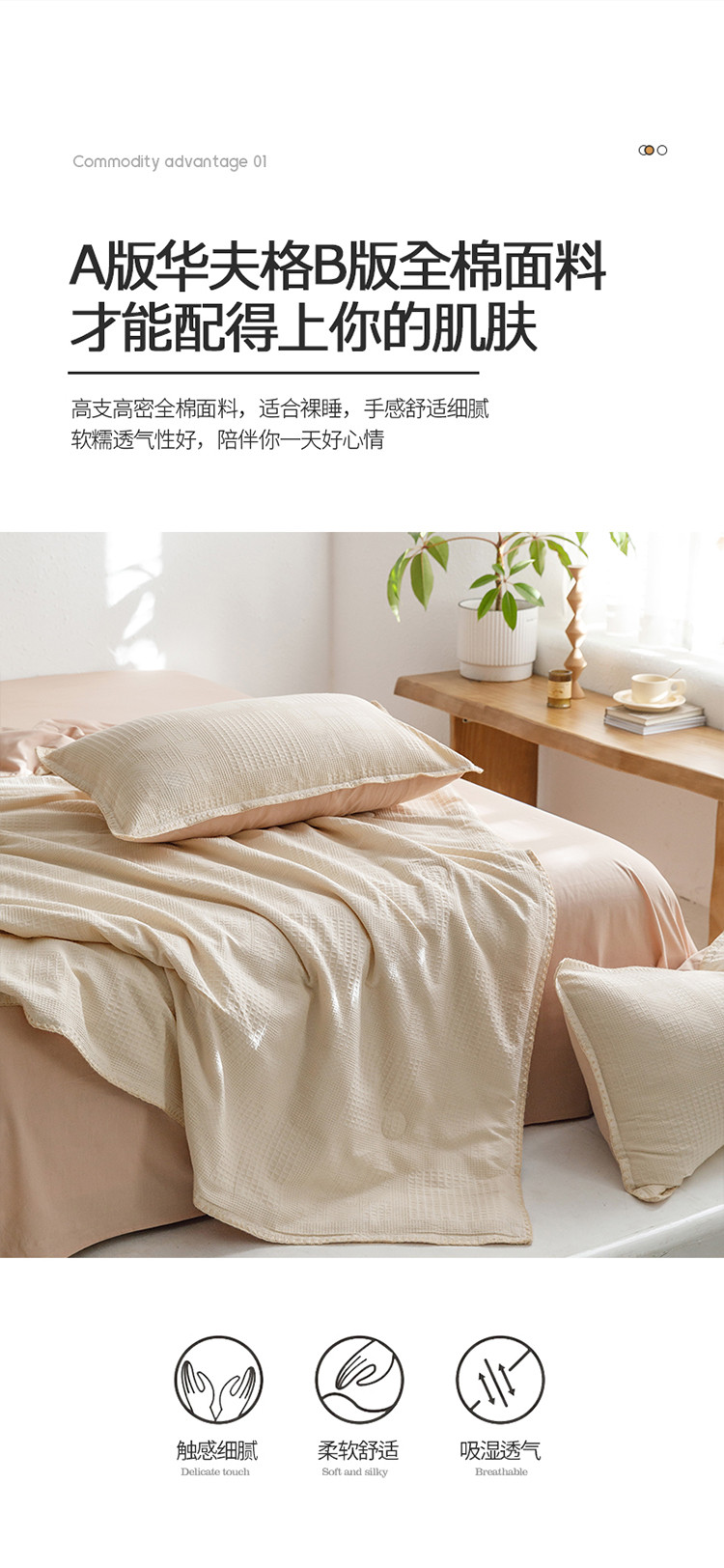 商品名称:沐棉家居 2023新款全棉华夫格夏被四件套 华夫格-卡其