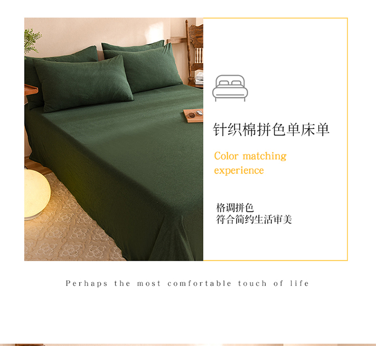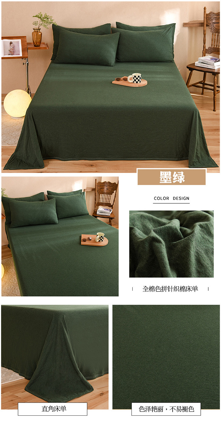 商品名称:甜之梦 2025新款针织棉拼色单床单(任何尺寸都可以定制) 墨绿