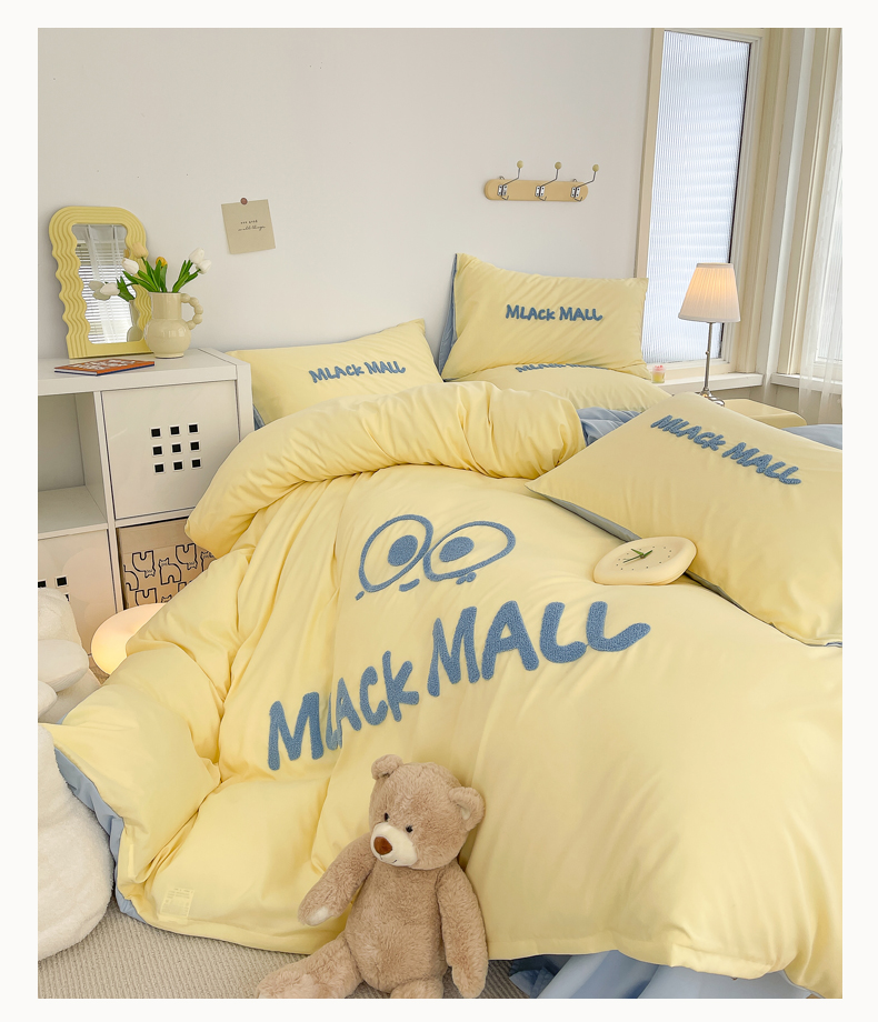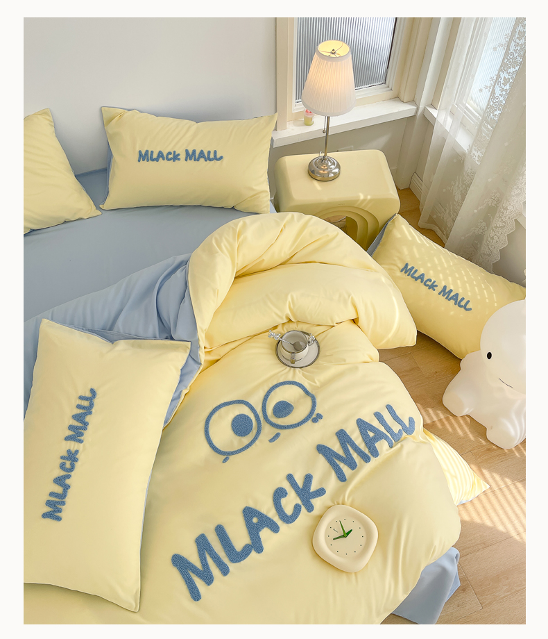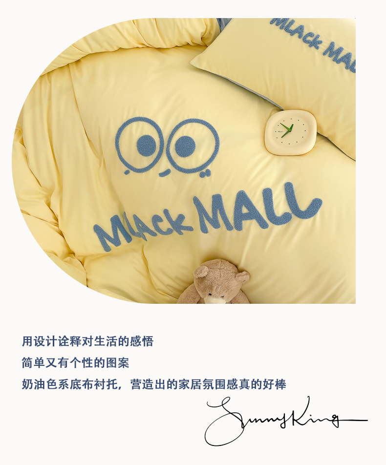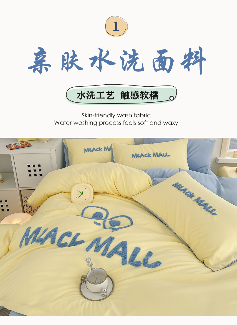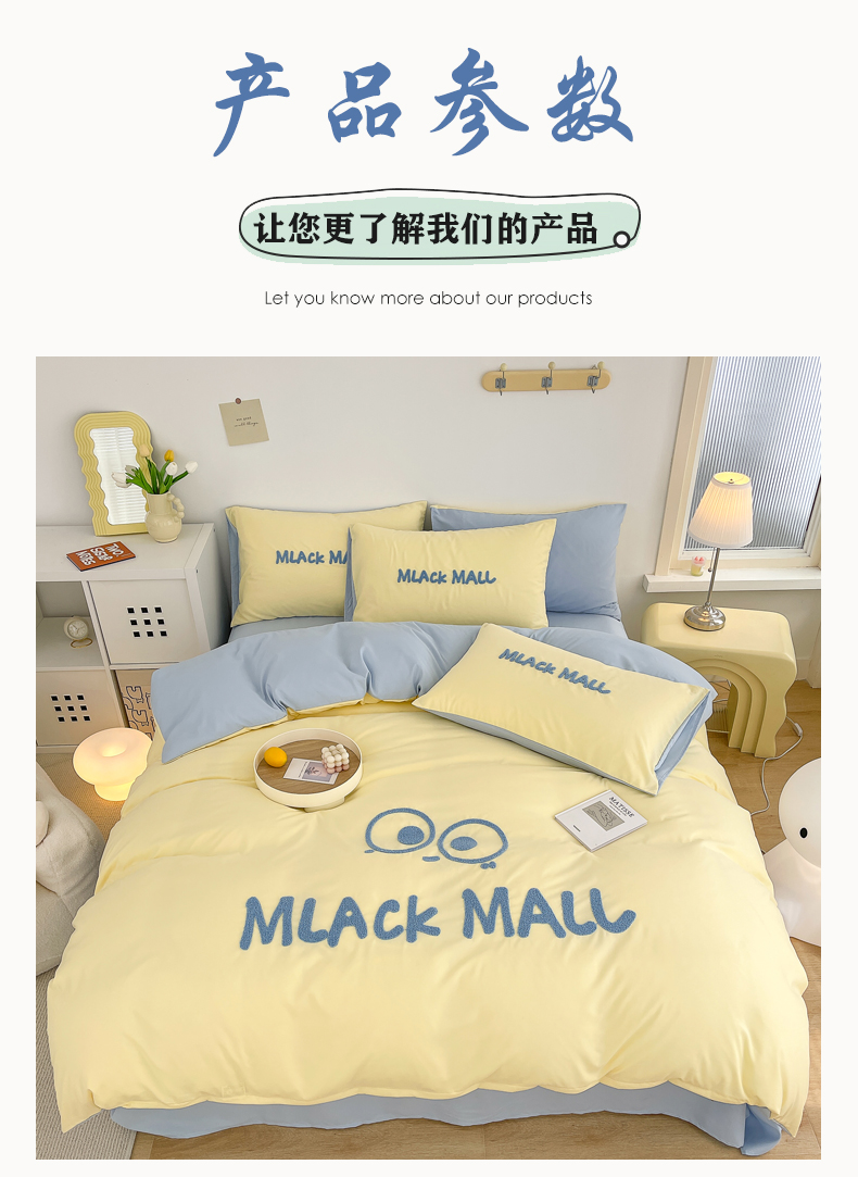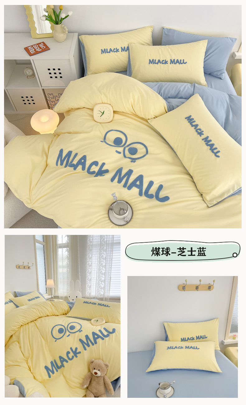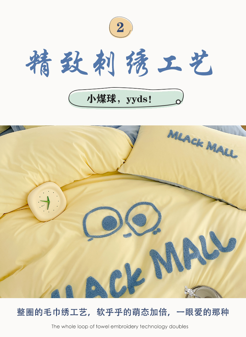 当前位置: 91家纺网 > 商品网购 > 床品套件 > 四件套 > 毛巾绣四件套 > 曼谷 新款毛巾绣四件套ins煤球图案柔软磨毛水洗棉套件 煤球-芝士蓝