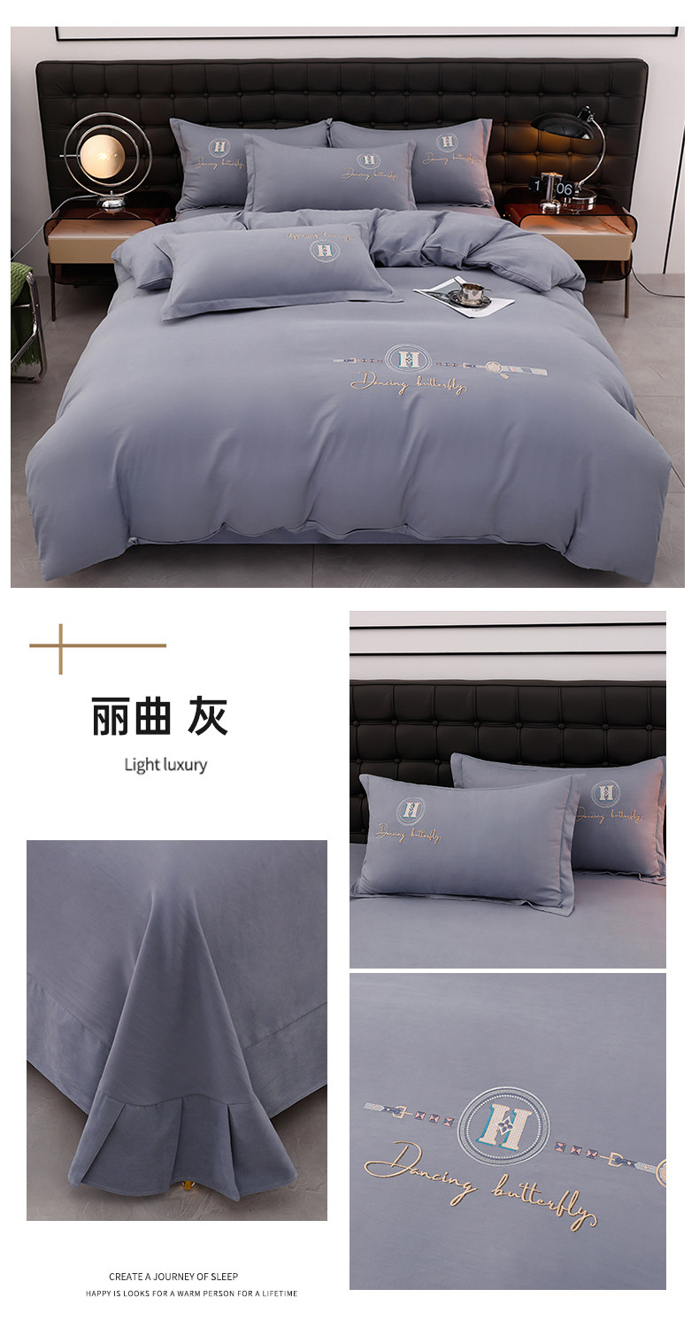 润淳家居 2025新款直播爆款云锦棉绣花刺绣四件套 丽曲 灰