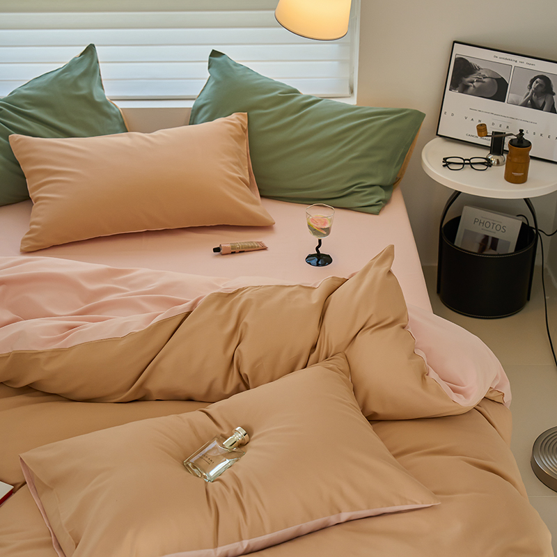 当前位置: 91家纺网 > 商品网购 > 床品套件 > 四件套 > 普通磨毛四件套 > 沐白家居 2023火山小磨毛拼色基础款四件套 奶咖