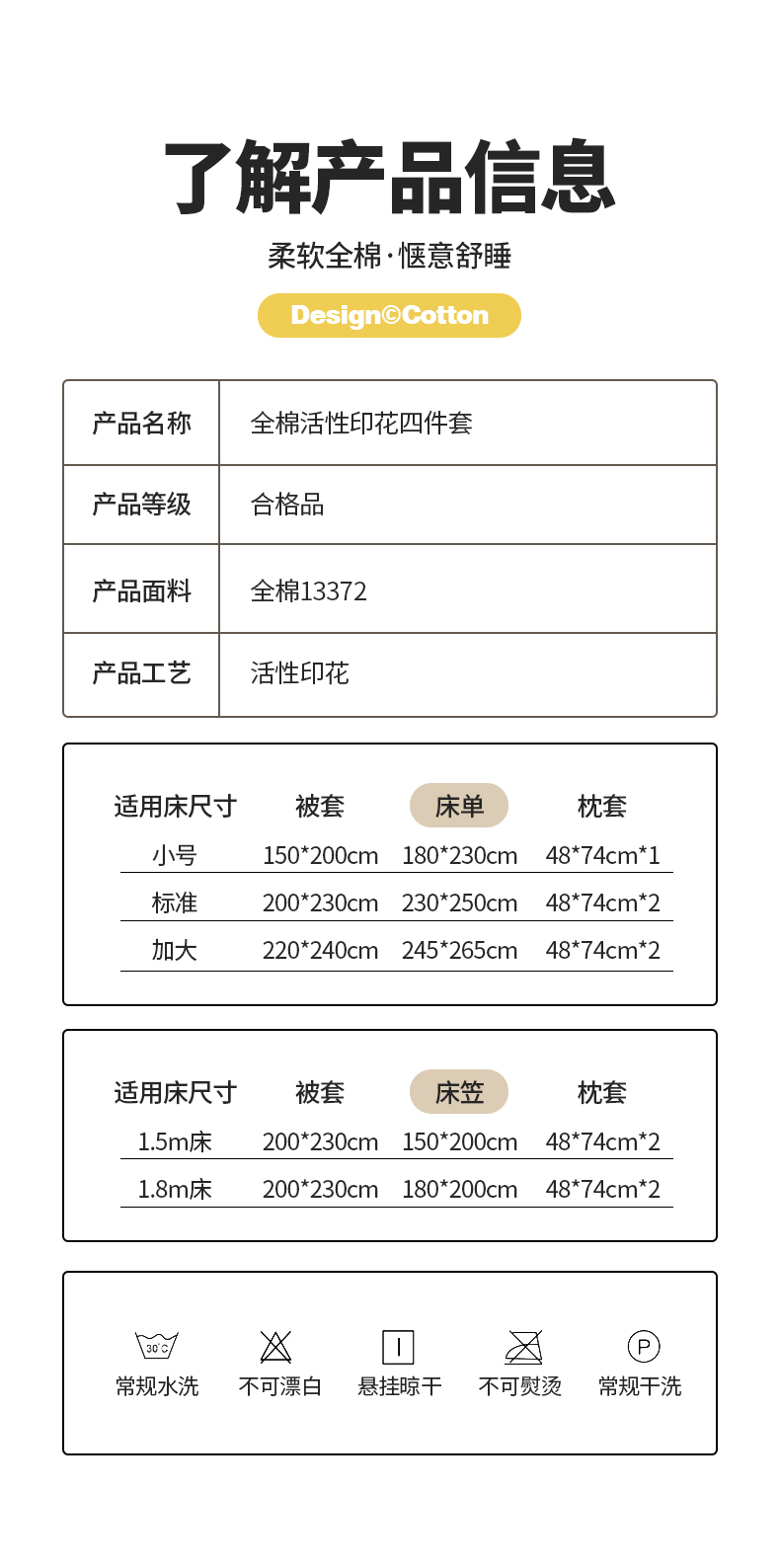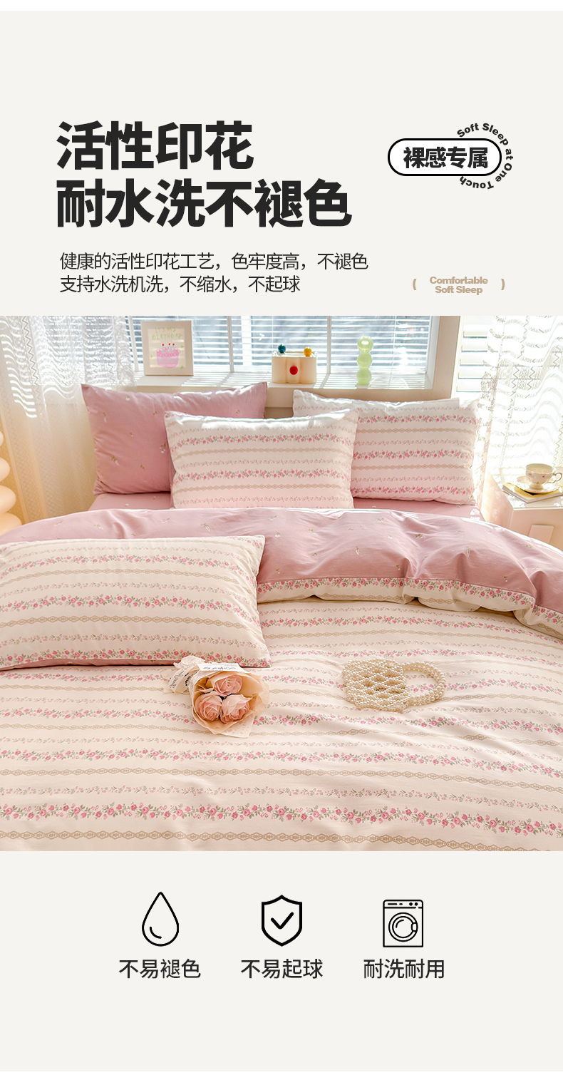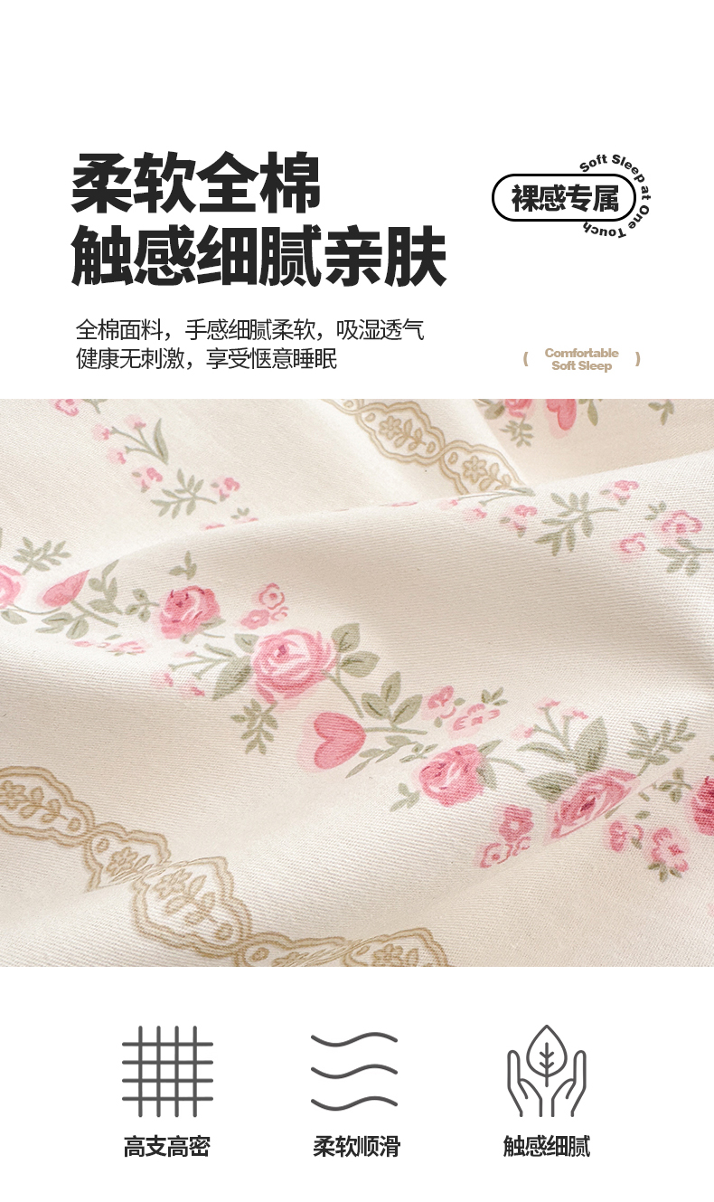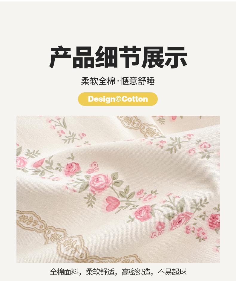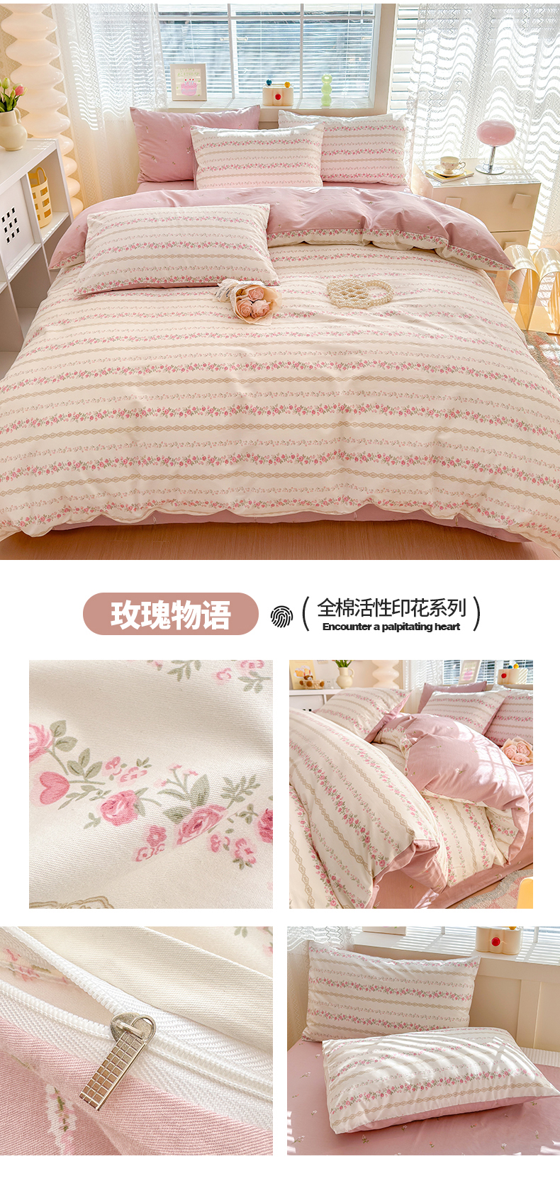 商品名称:清雅福 2024新款全棉13372小清新四件套-第三季 玫瑰物语