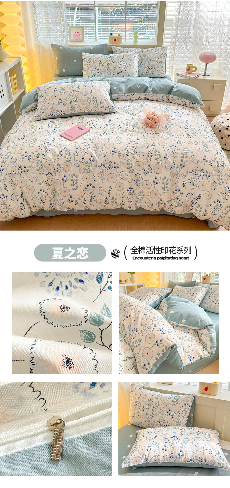 商品名称:清雅福 2024新款全棉13372小清新四件套-第三季 夏之恋