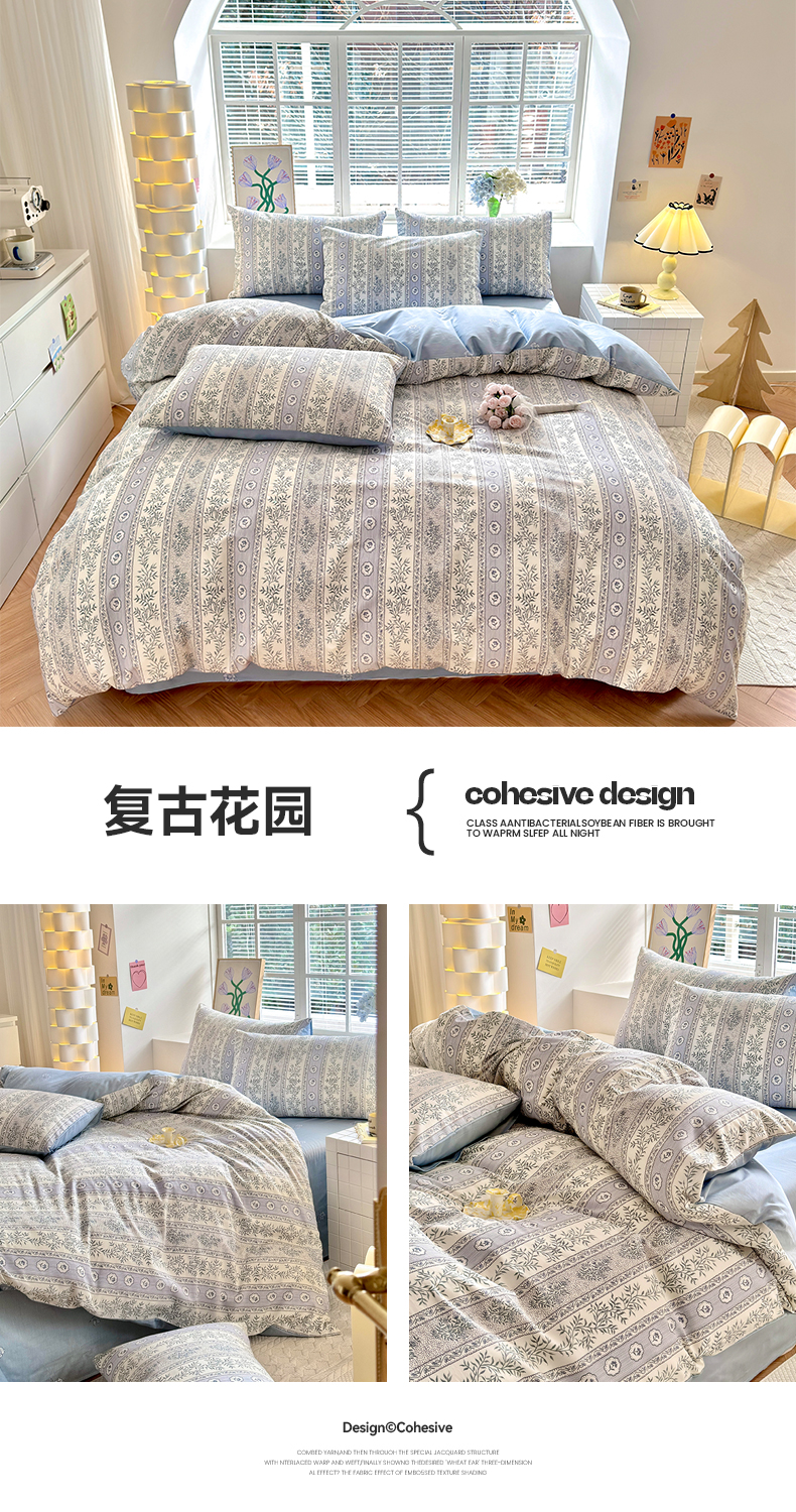 沐棉家居 2024新款小清新全棉13372印花四件套 复古花园