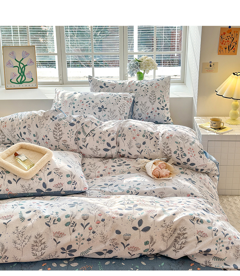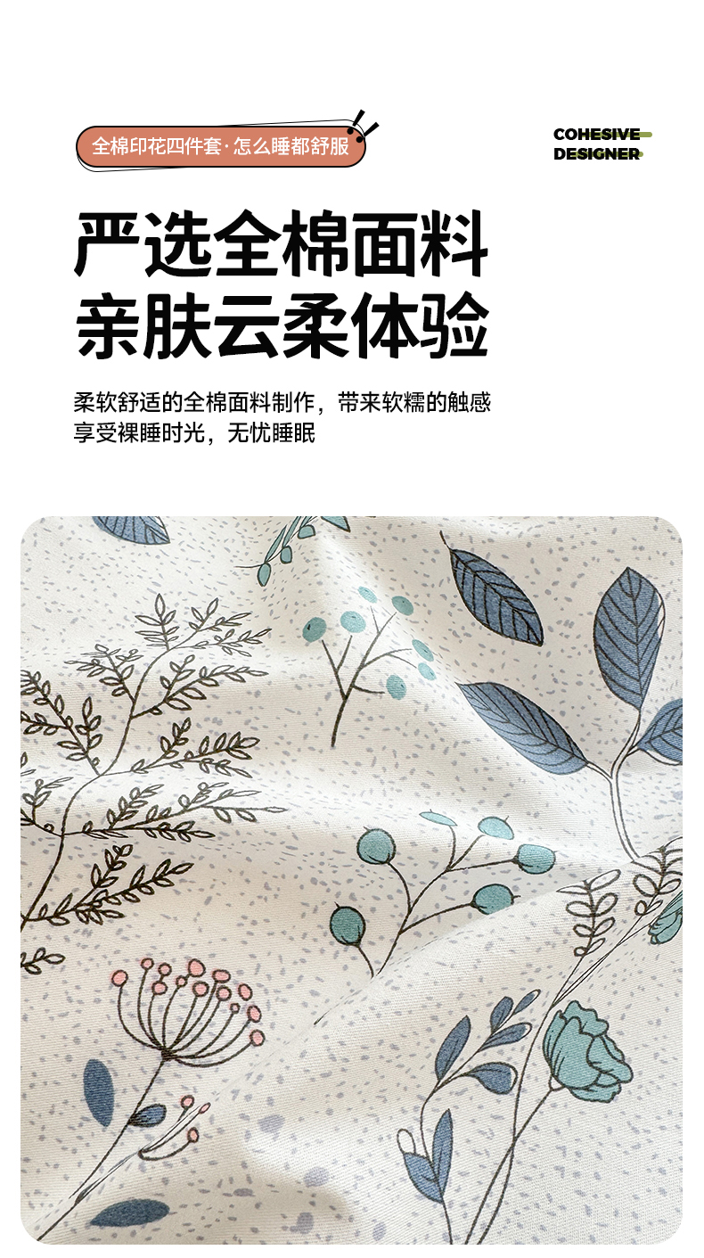 商品名称:沐棉家居 2024新款小清新全棉13372印花四件套 叶落知秋
