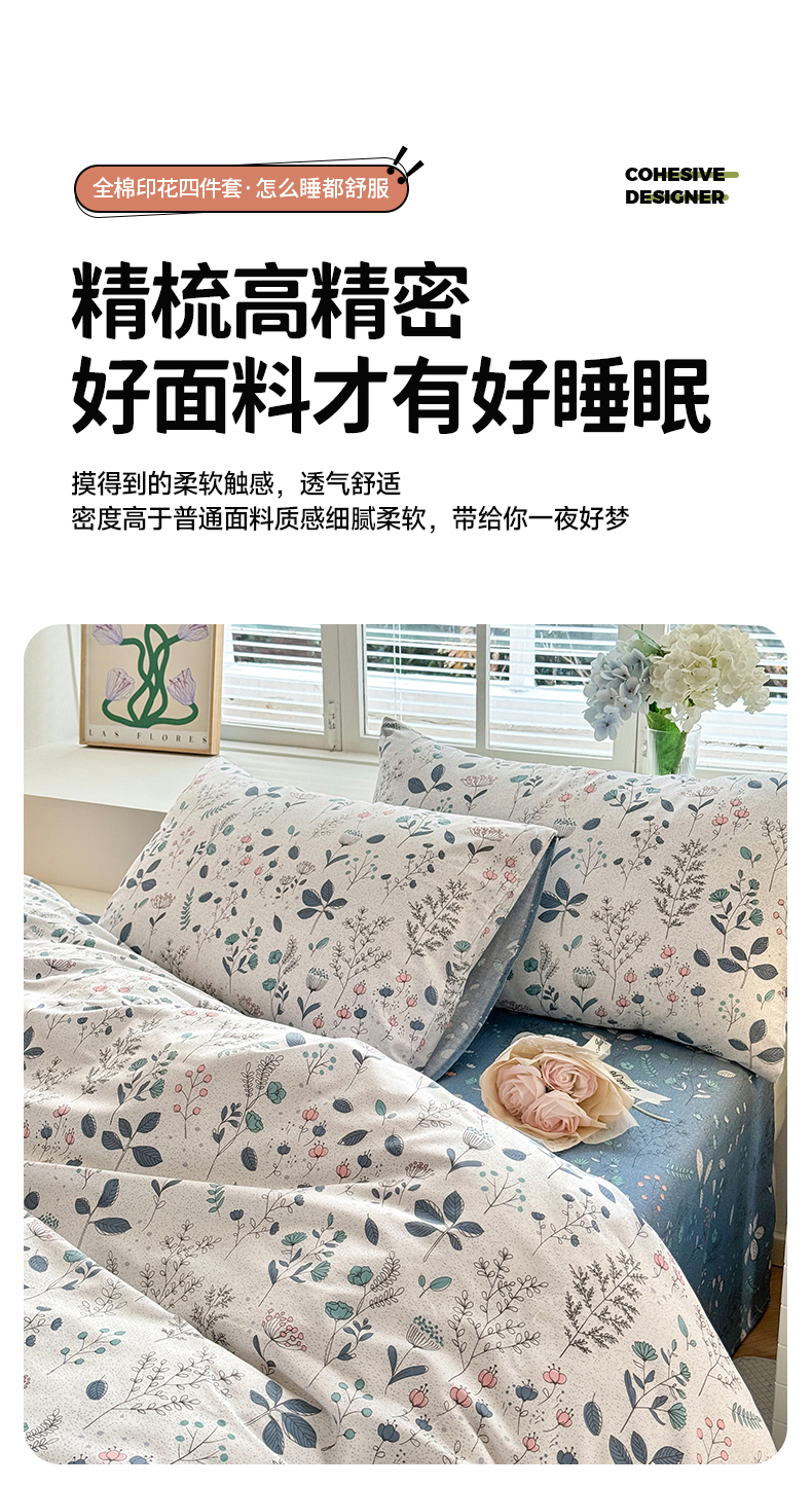 (总)沐棉家居 2025新款全棉印花四件套,安娜花园,春风慕颜,春色满园,淡香花语,蝴蝶结,花梦,可爱熊猫,露丝,嘻嘻兔,幸福小兔,优雅花朵,紫花小羊,紫藤蔓蔓