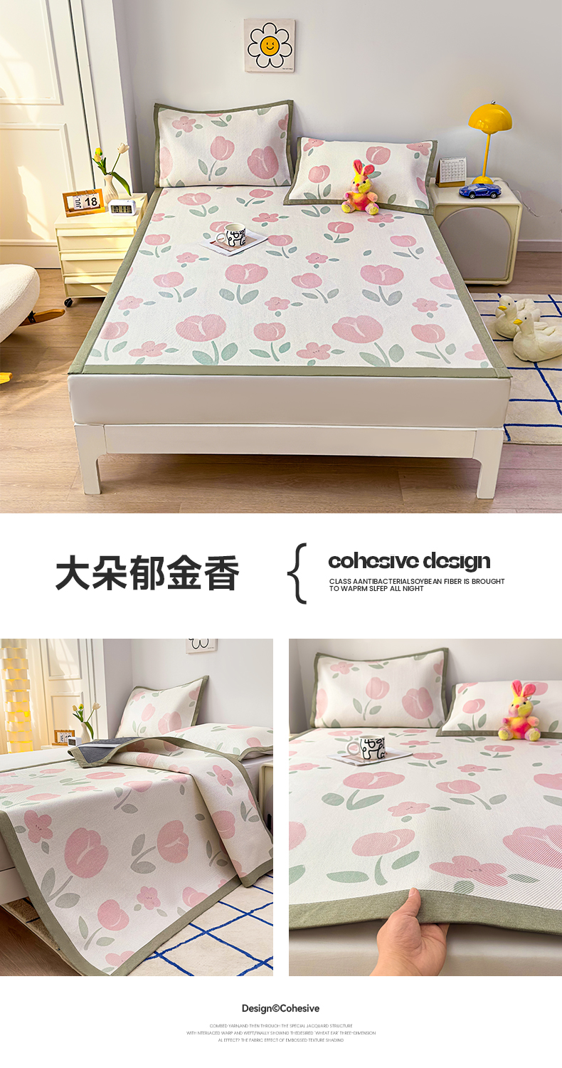 商品名称:大元 2025新款数码印花冰藤席系列 -冰藤条席 大朵郁金香