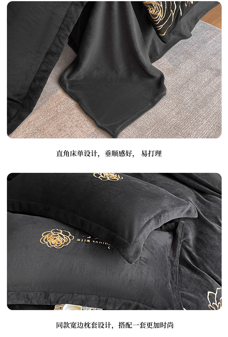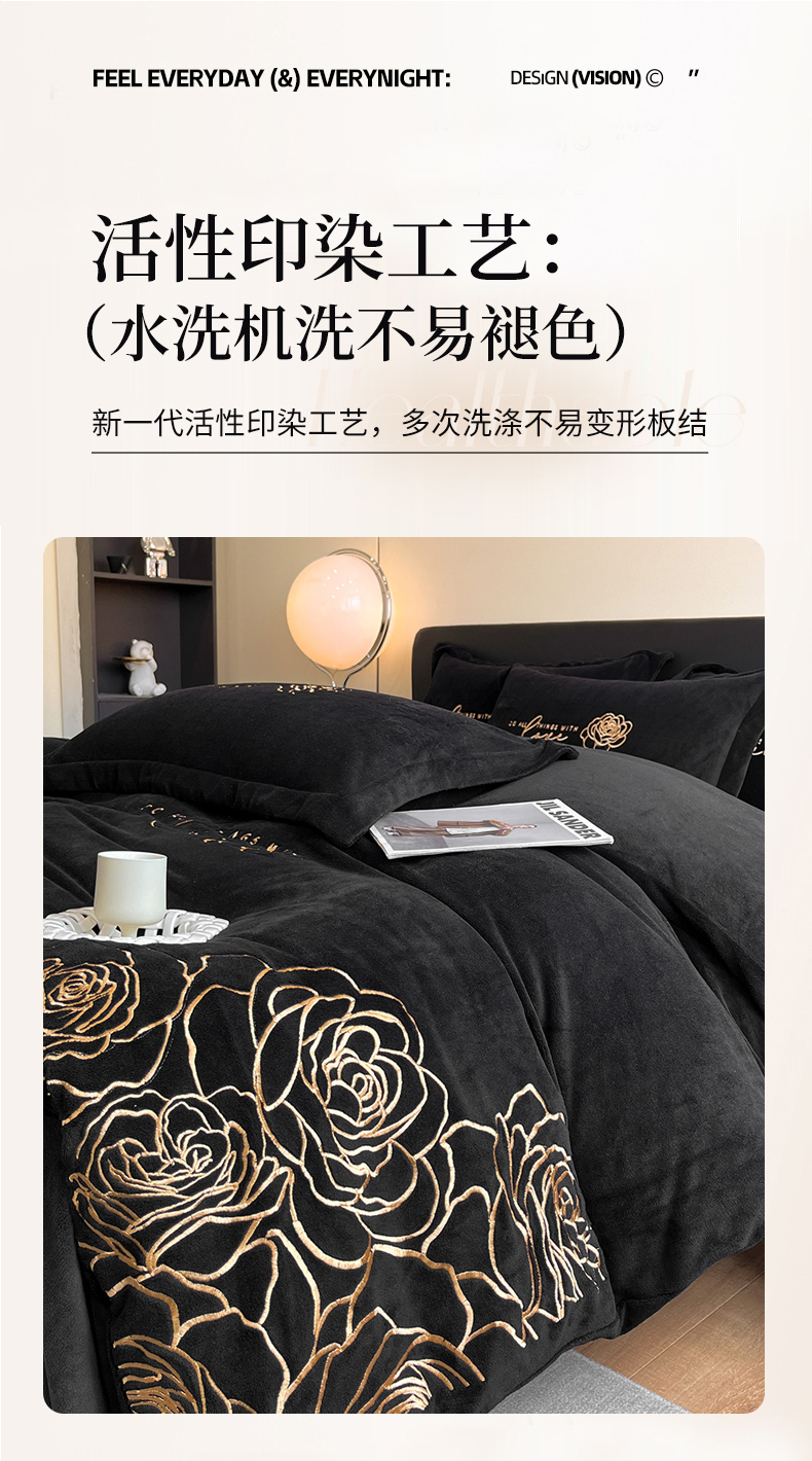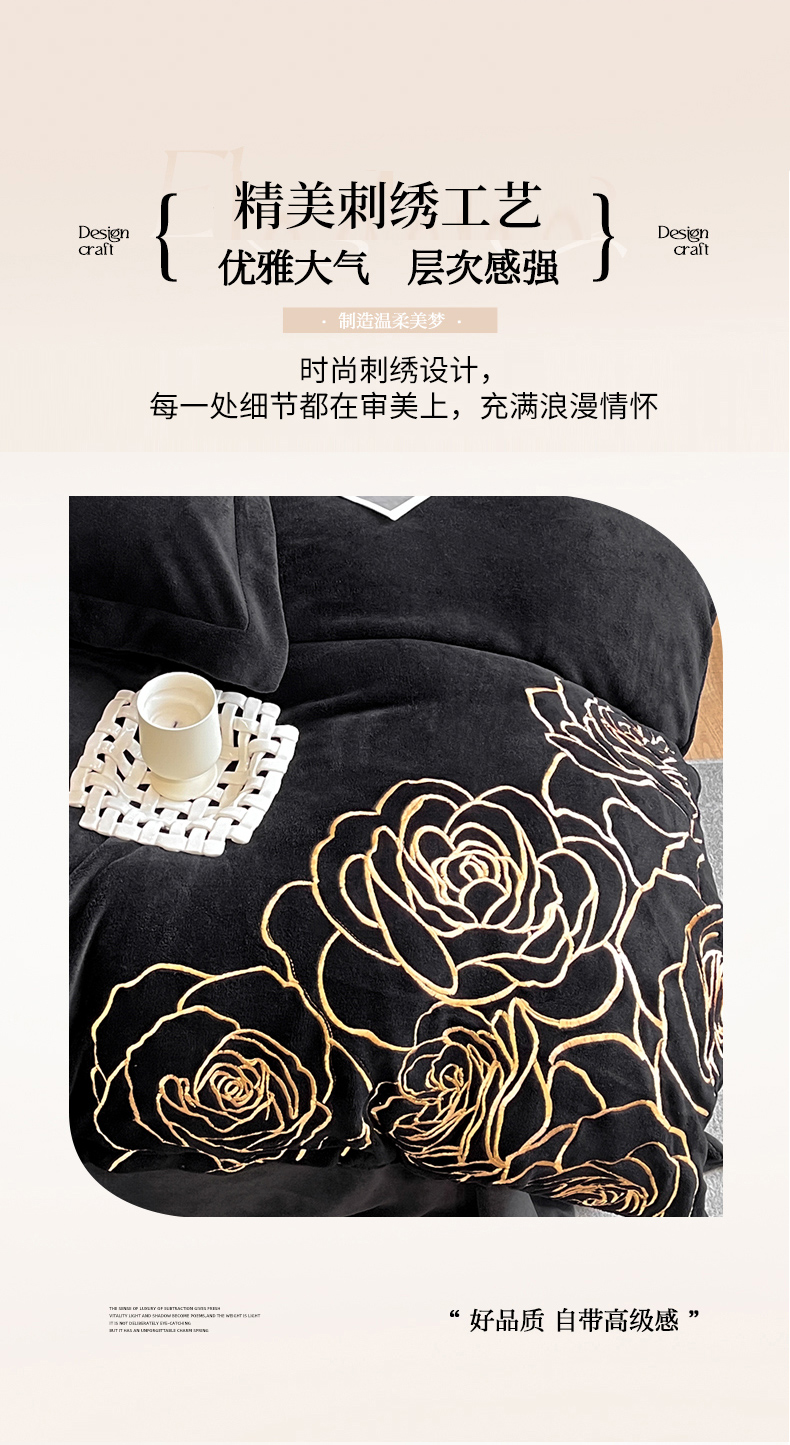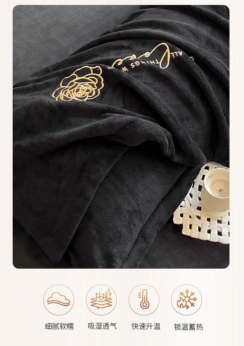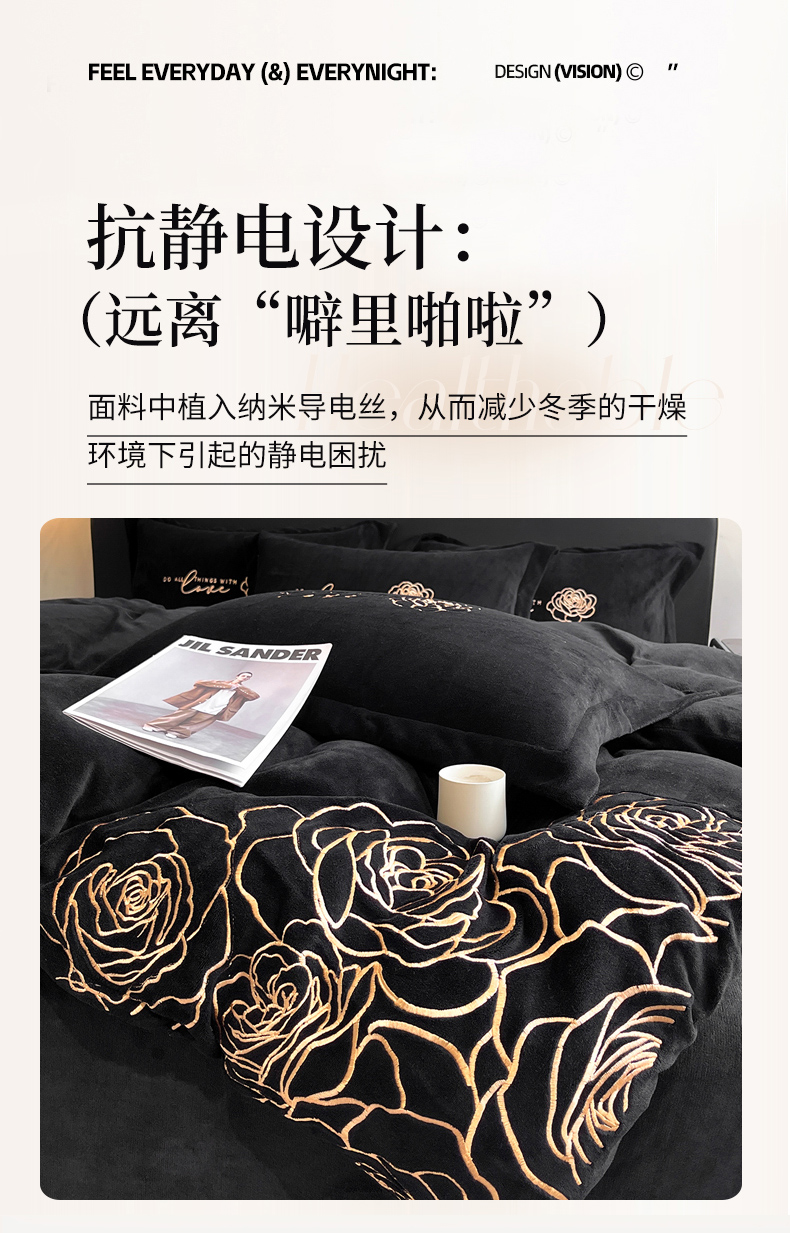 当前位置: 91家纺网 > 商品网购 > 床品套件 > 四件套 > 牛奶绒四件套 > 你好美丽 2025新款牛奶绒A类200克四件套刺绣香韵-花之语 香韵黑
