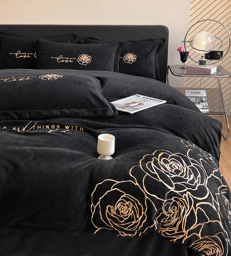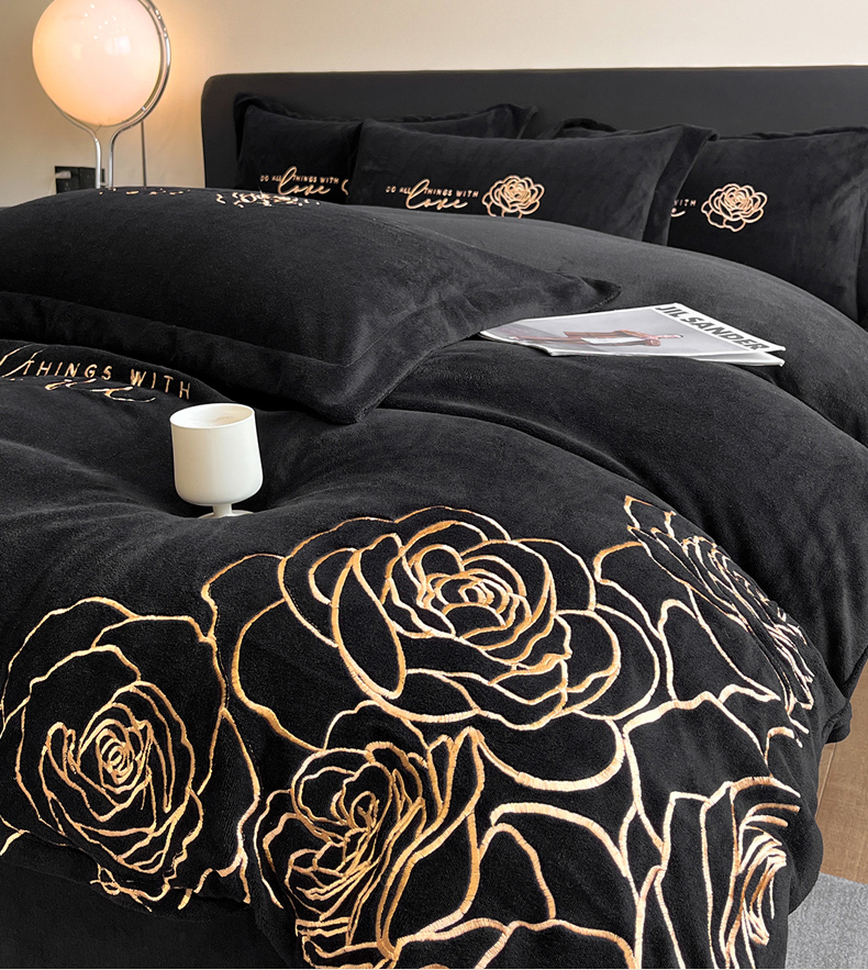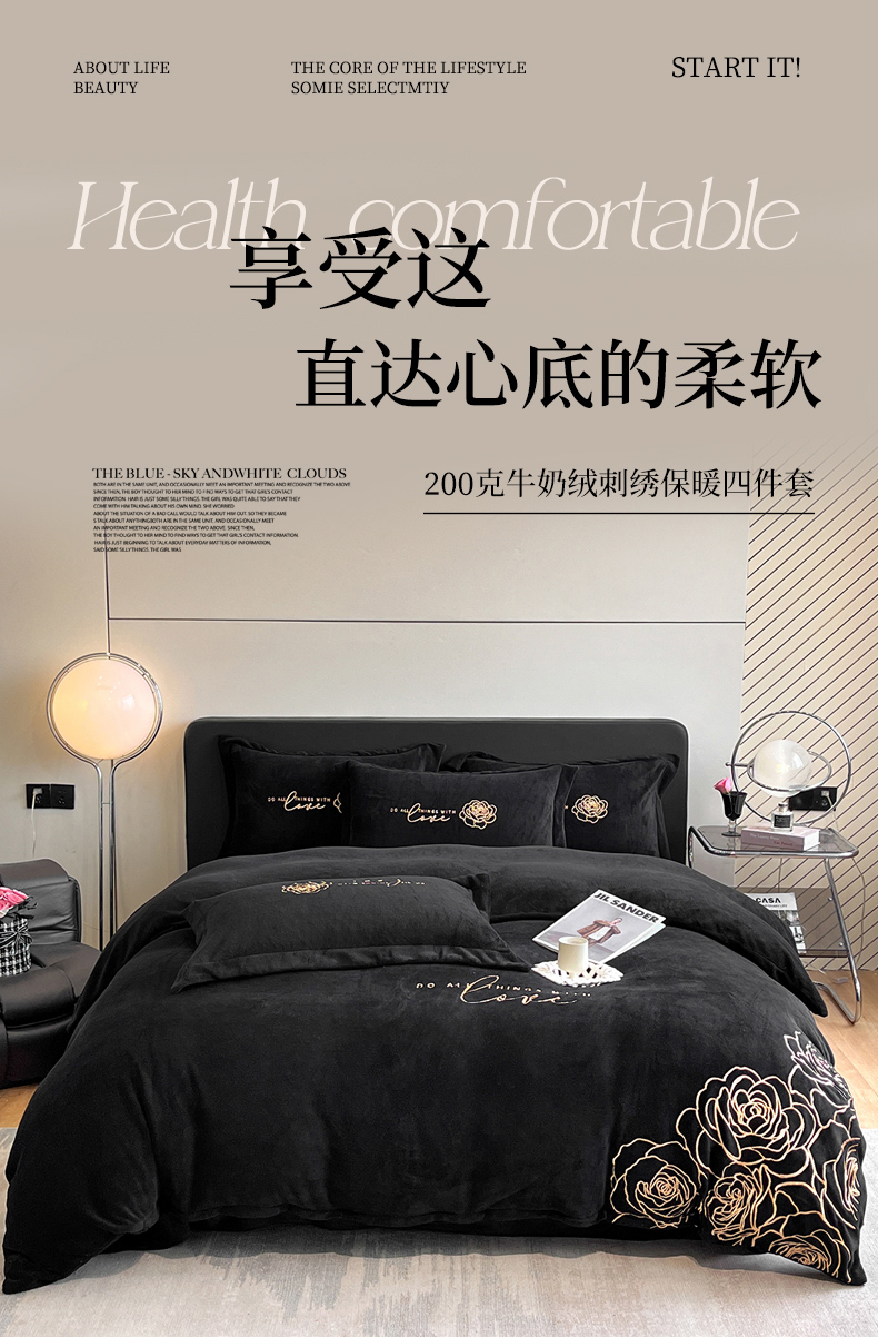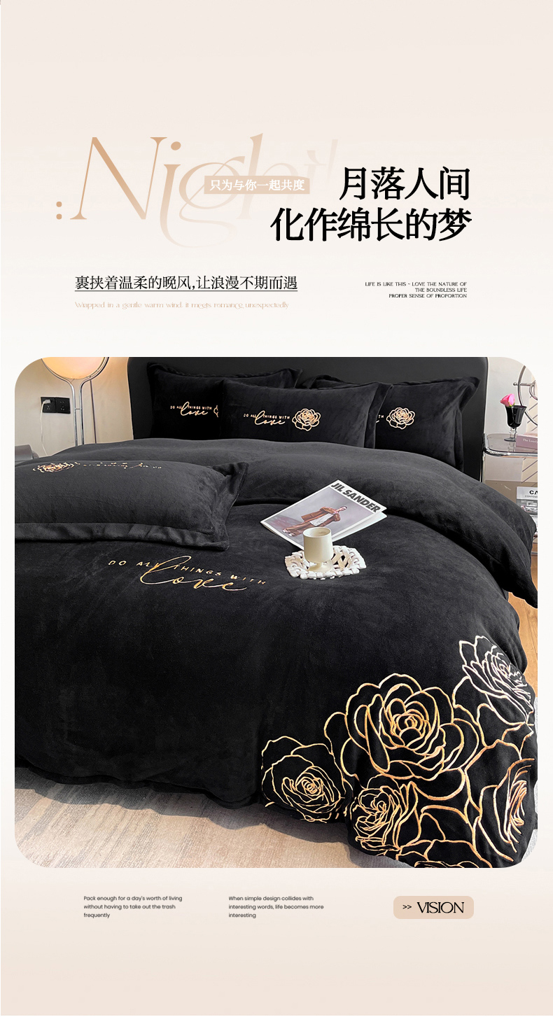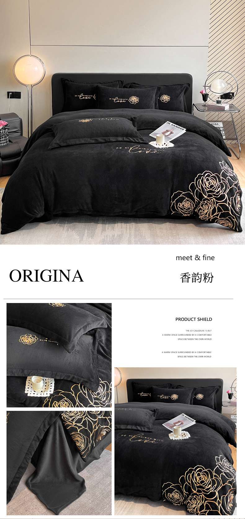 当前位置: 91家纺网 > 商品网购 > 床品套件 > 四件套 > 牛奶绒四件套 > 你好美丽 2025新款牛奶绒A类200克四件套刺绣香韵-花之语 香韵黑