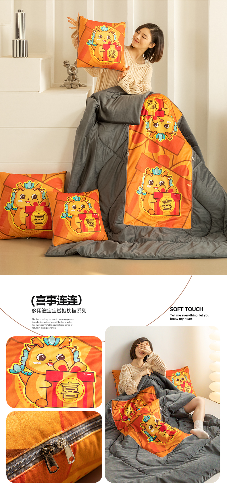 雷人家纺 2024新款多功能印花宝宝绒抱枕被 喜事连连