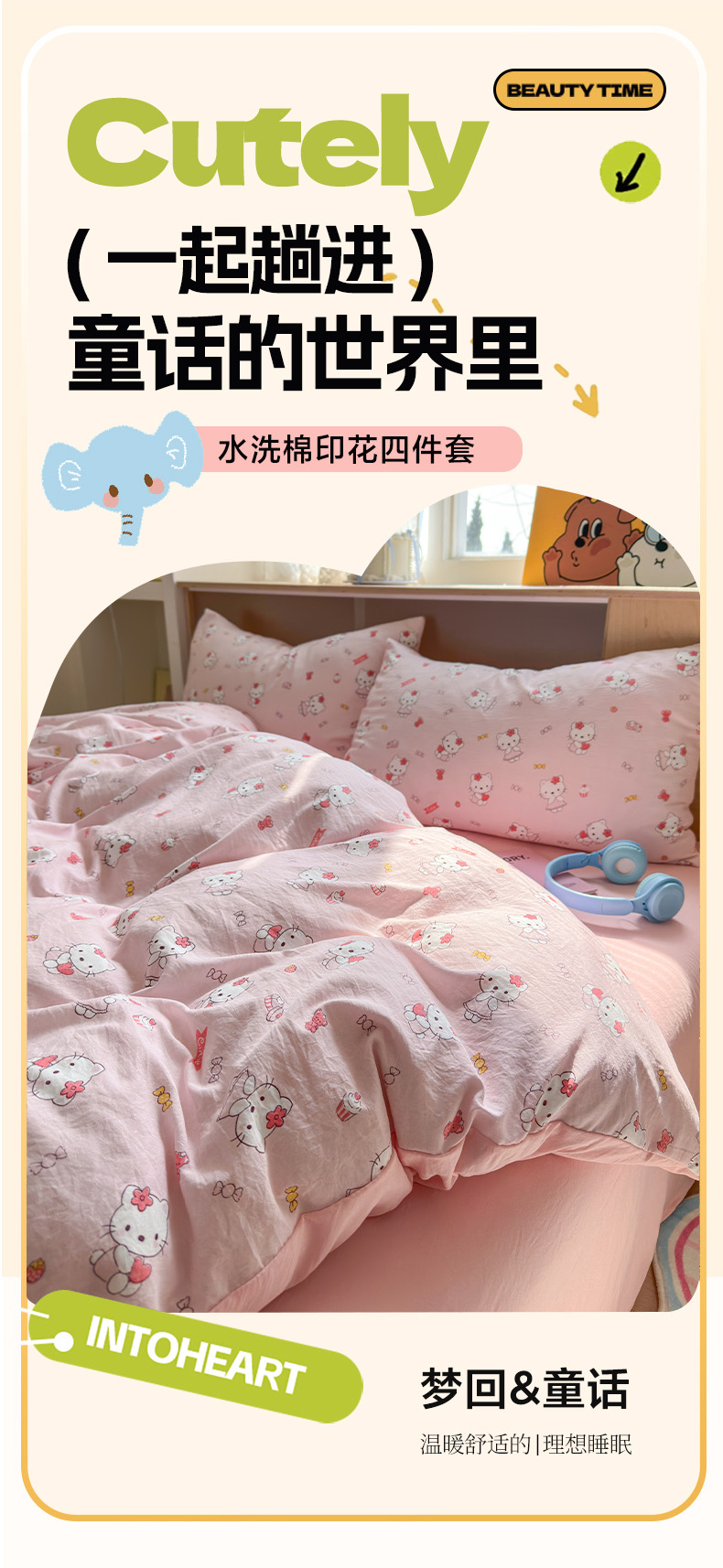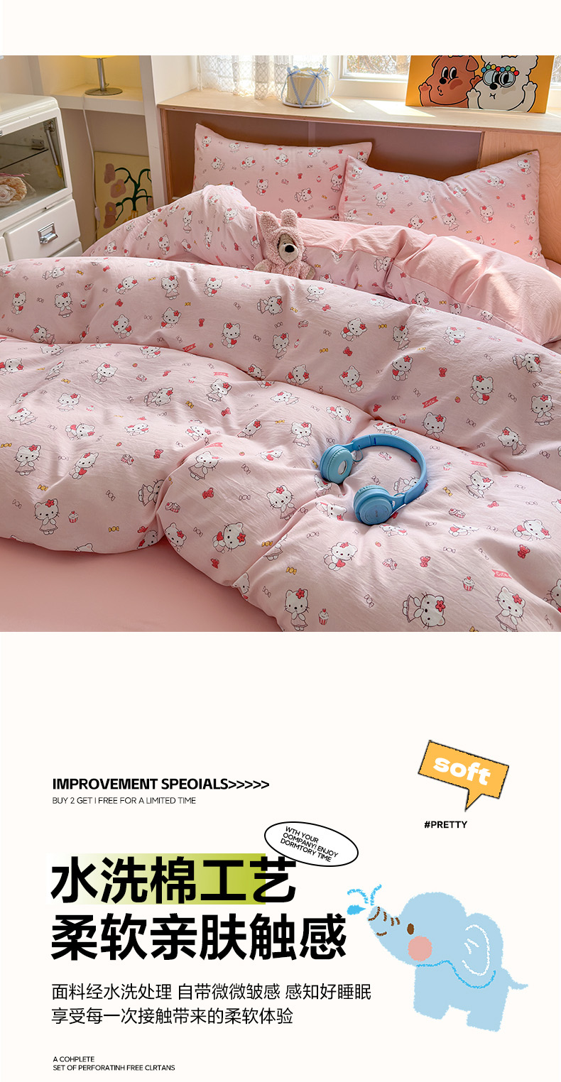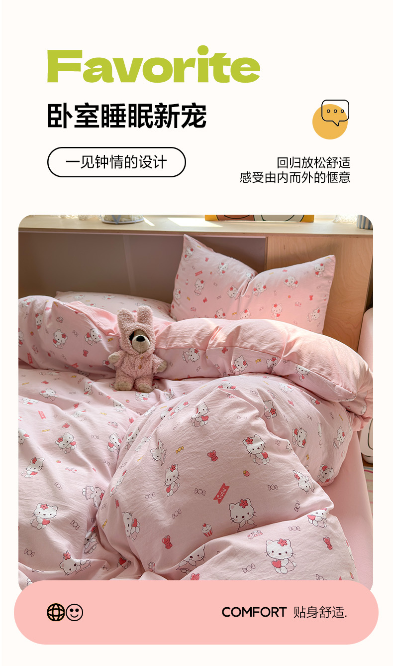 当前位置: 91家纺网 > 商品网购 > 床品套件 > 四件套 > 水洗棉四件套 > 冕悠家纺 2025新款A类高克重糯叽叽超柔糯水洗棉印花四件套 KT喵