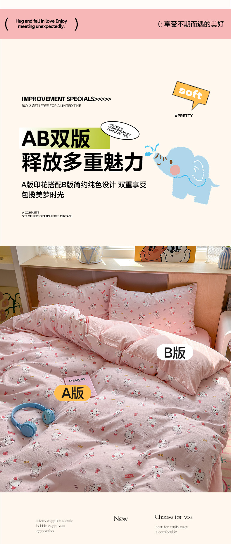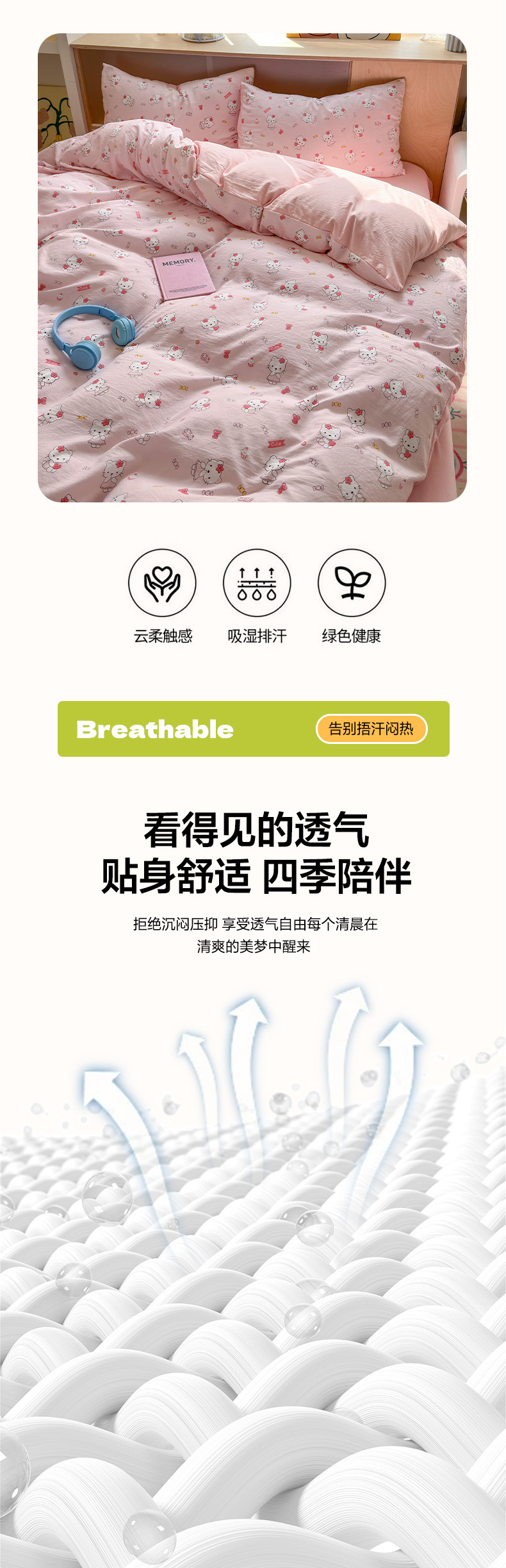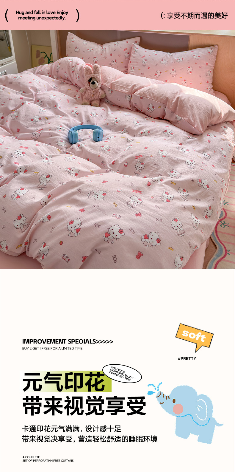 当前位置: 91家纺网 > 商品网购 > 床品套件 > 四件套 > 水洗棉四件套 > 冕悠家纺 2025新款A类高克重糯叽叽超柔糯水洗棉印花四件套 KT喵