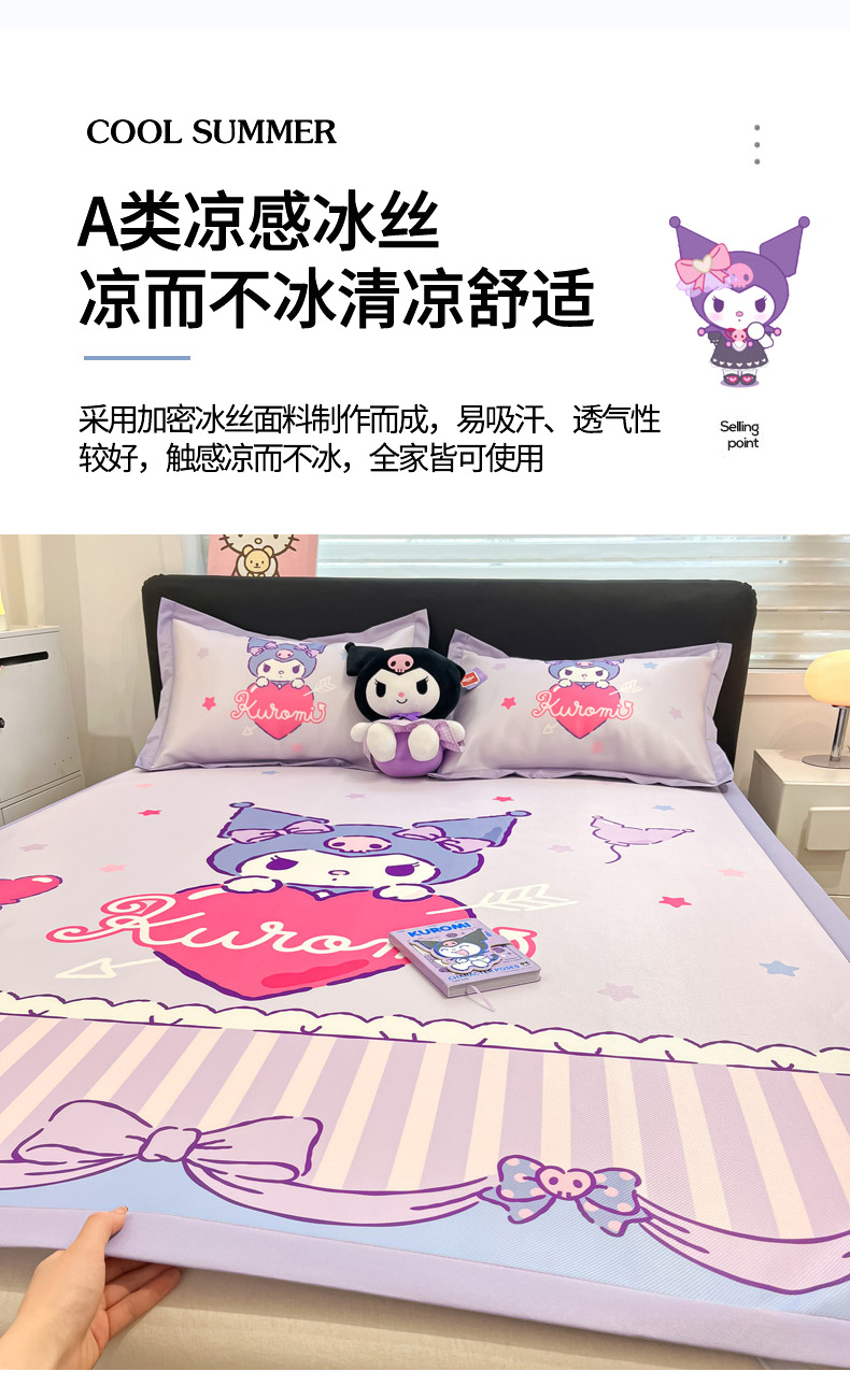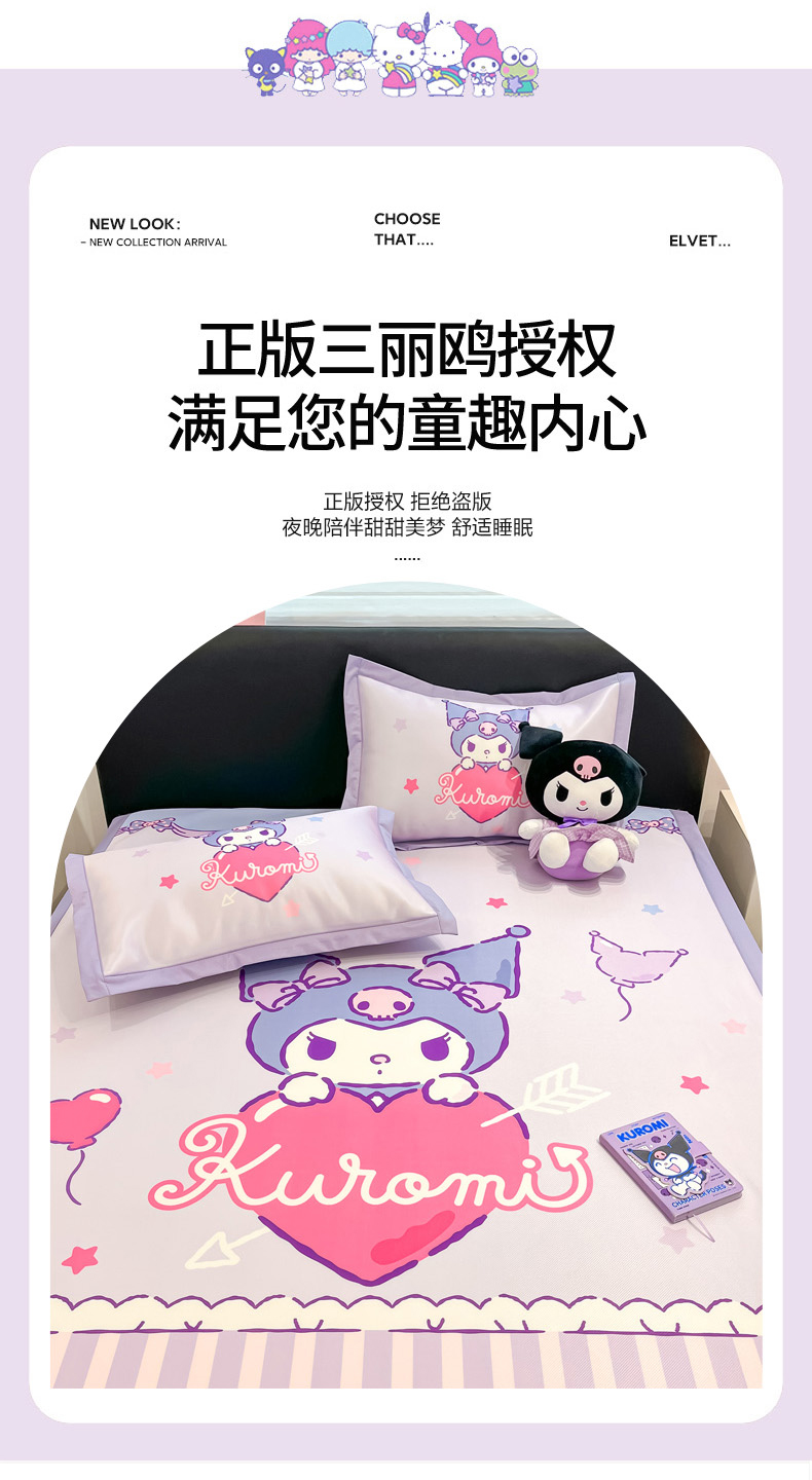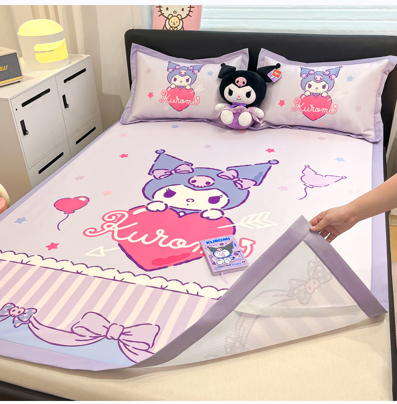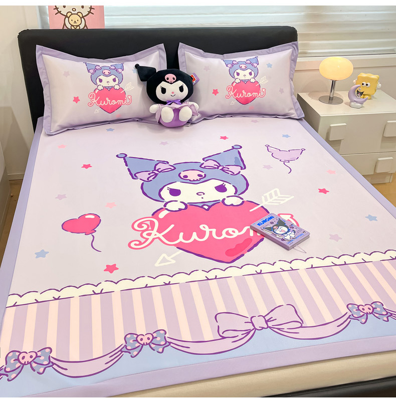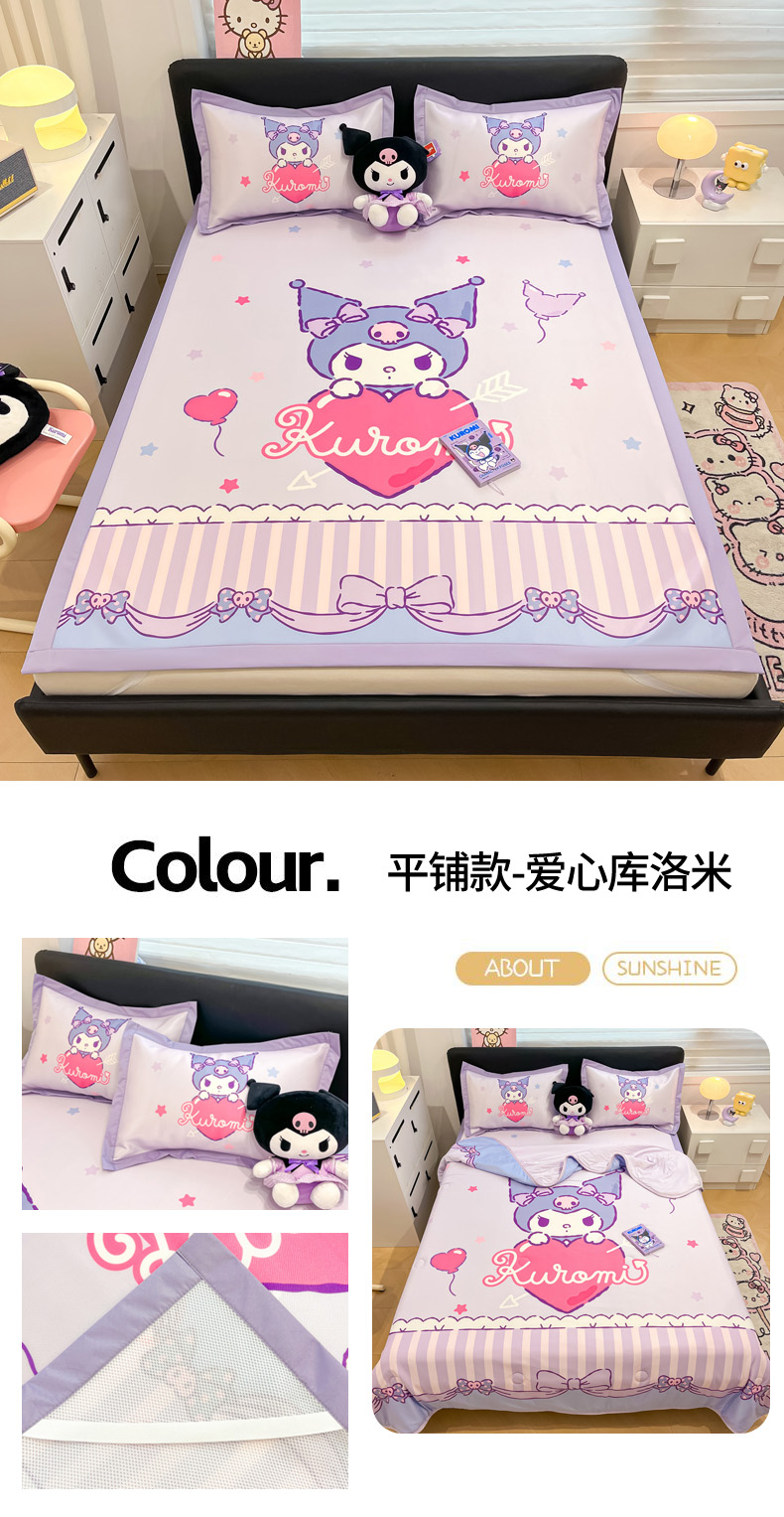 当前位置: 91家纺网 > 商品网购 > 床品套件 > 四件套 > 其它四件套 > 2025新款正版授权A类大版数码印花三丽鸥可机洗1200D冰丝凉席席子凉席可组合针织棉夏被四件套-平铺款 平铺款-爱心库洛米