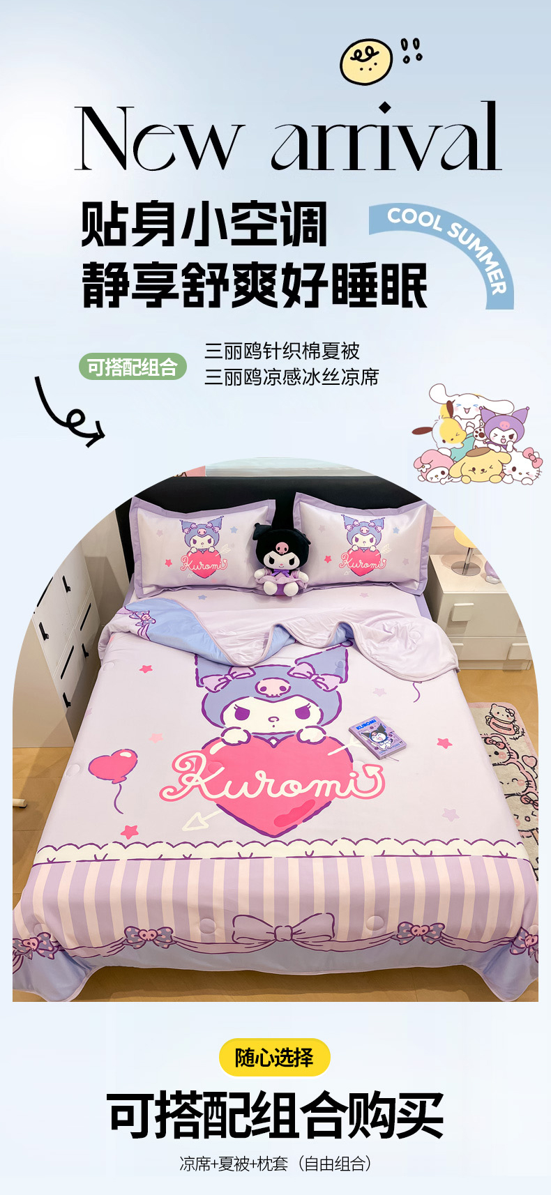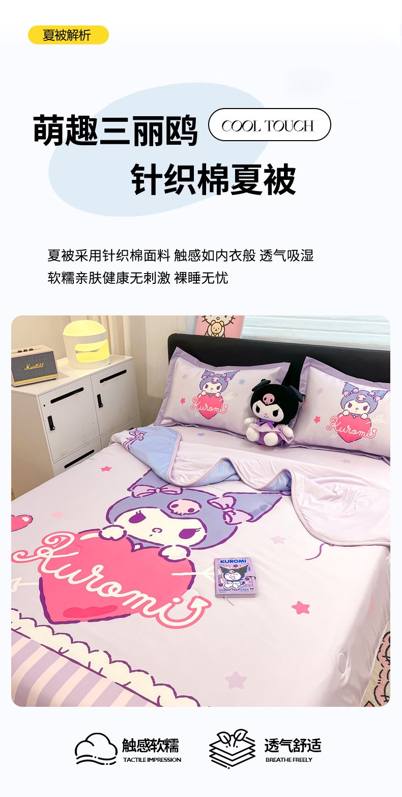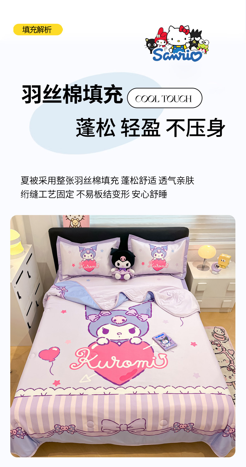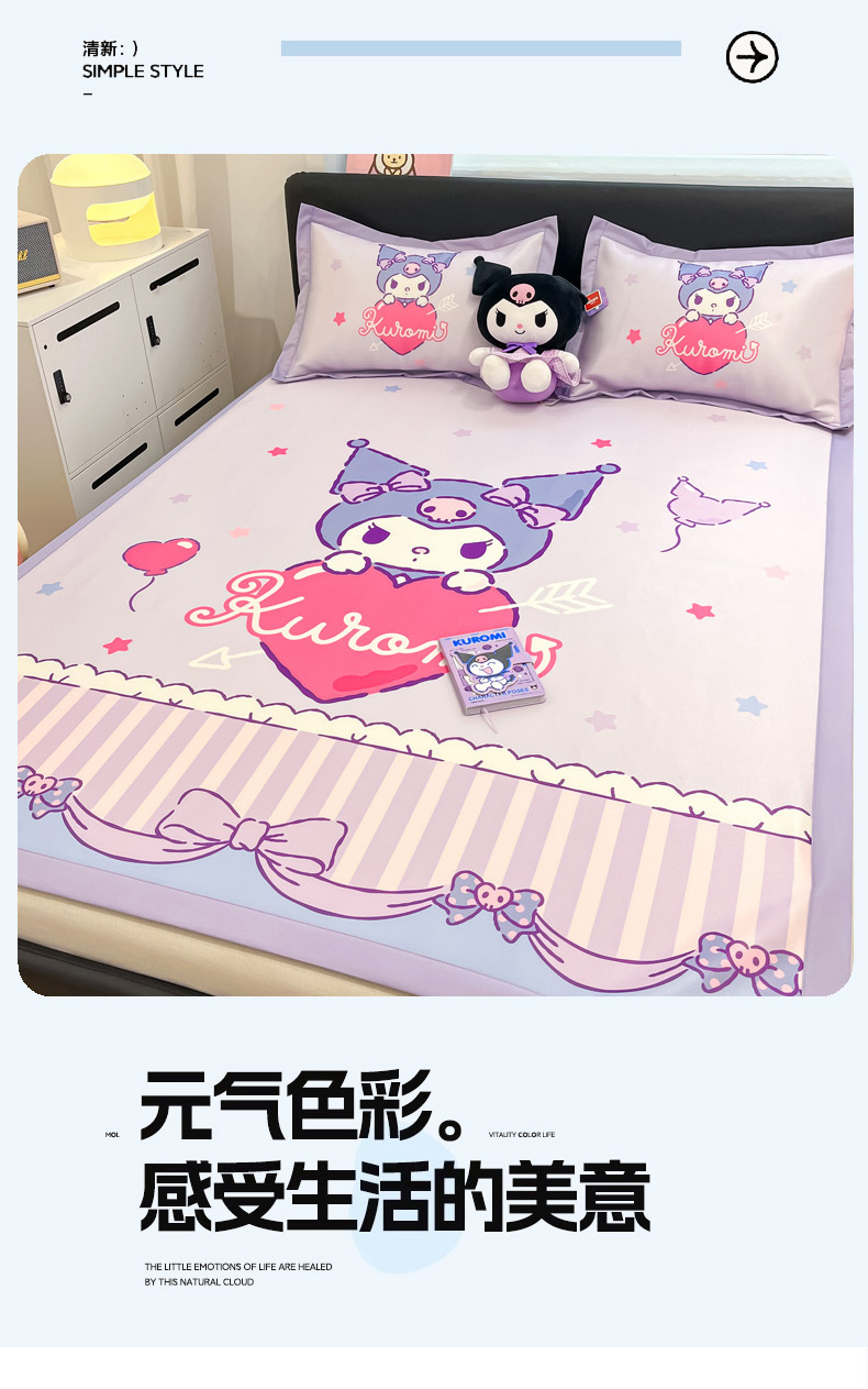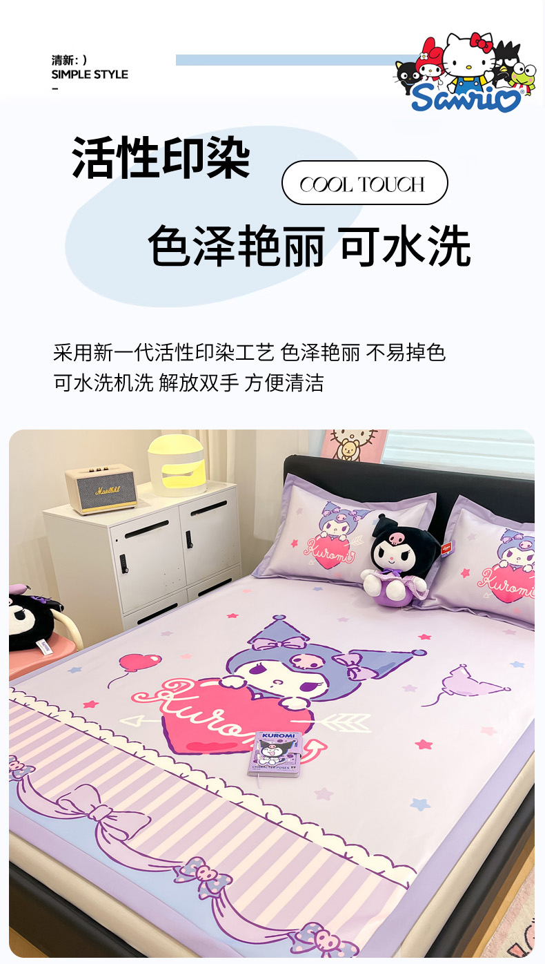 当前位置: 91家纺网 > 商品网购 > 床品套件 > 四件套 > 其它四件套 > 2025新款正版授权A类大版数码印花三丽鸥可机洗1200D冰丝凉席席子凉席可组合针织棉夏被四件套-平铺款 平铺款-爱心库洛米