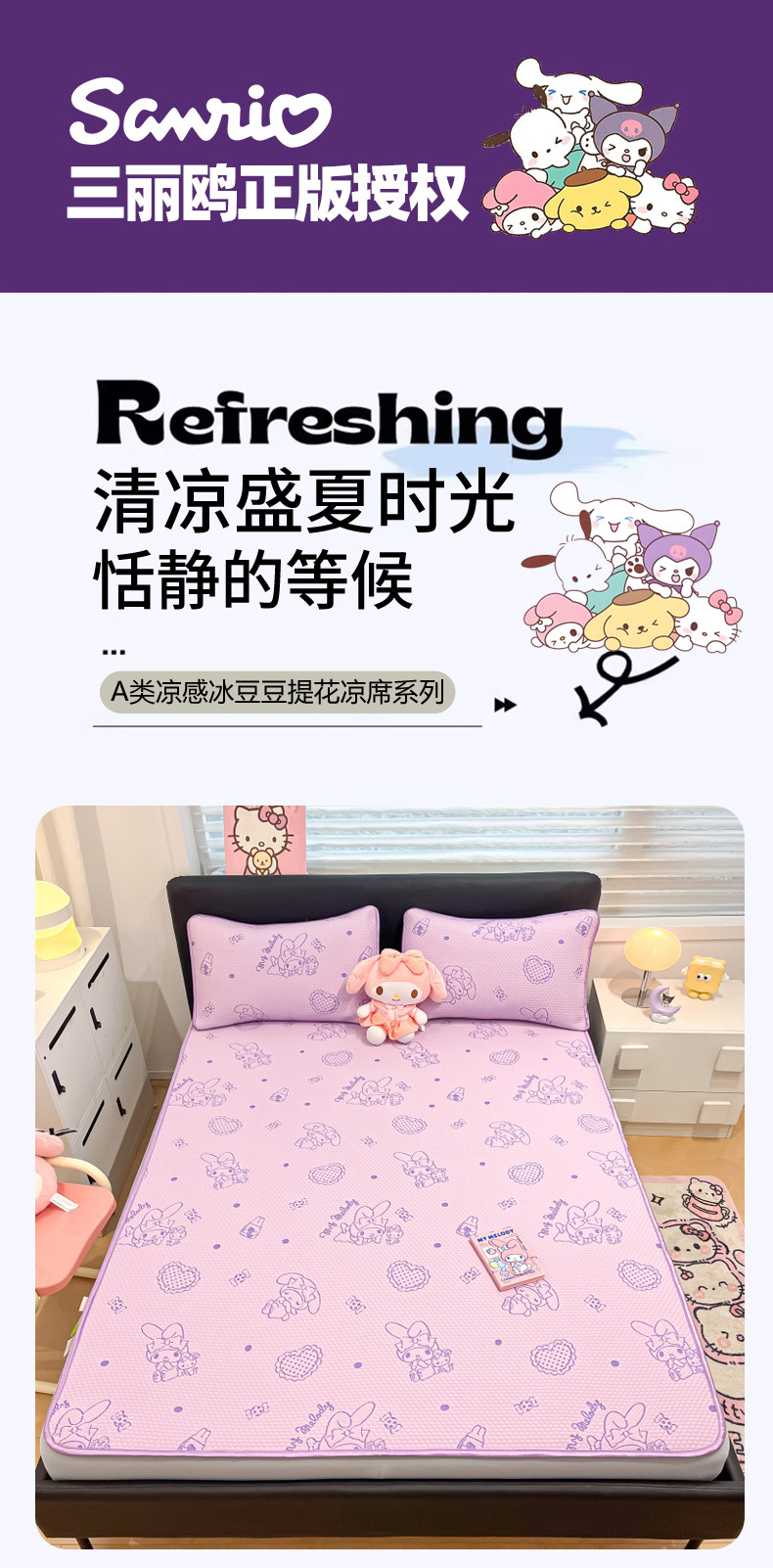 当前位置: 91家纺网 > 商品网购 > 床上用品 > 凉席 > 凉席套件 > 2025新款三丽鸥正版授权A类提花冰豆豆凉席平铺款床笠款系列_1409 冰豆豆-美乐蒂-紫