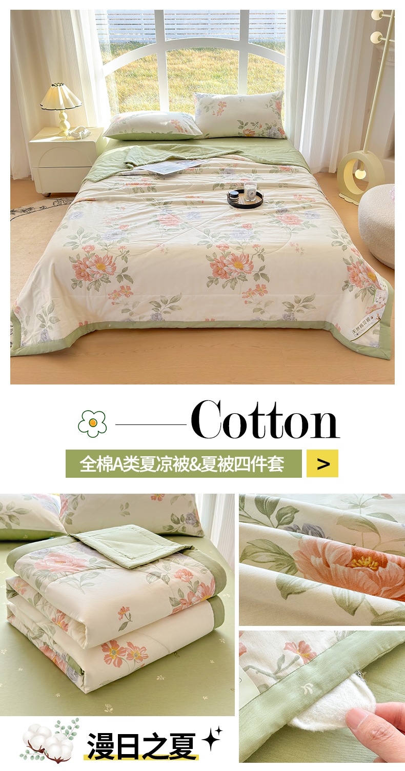 商品名称:蓝雀翎 2025新款全棉印花新疆棉花夏被 午后馨香