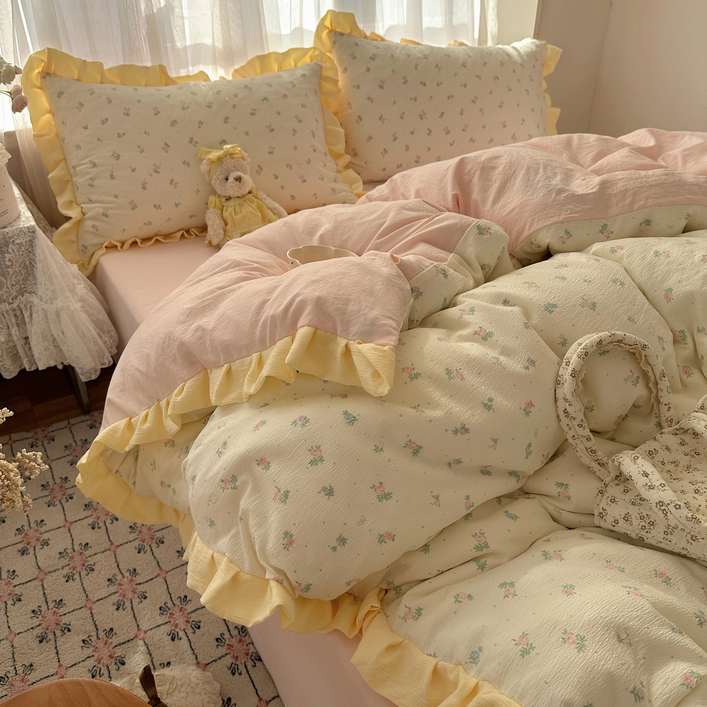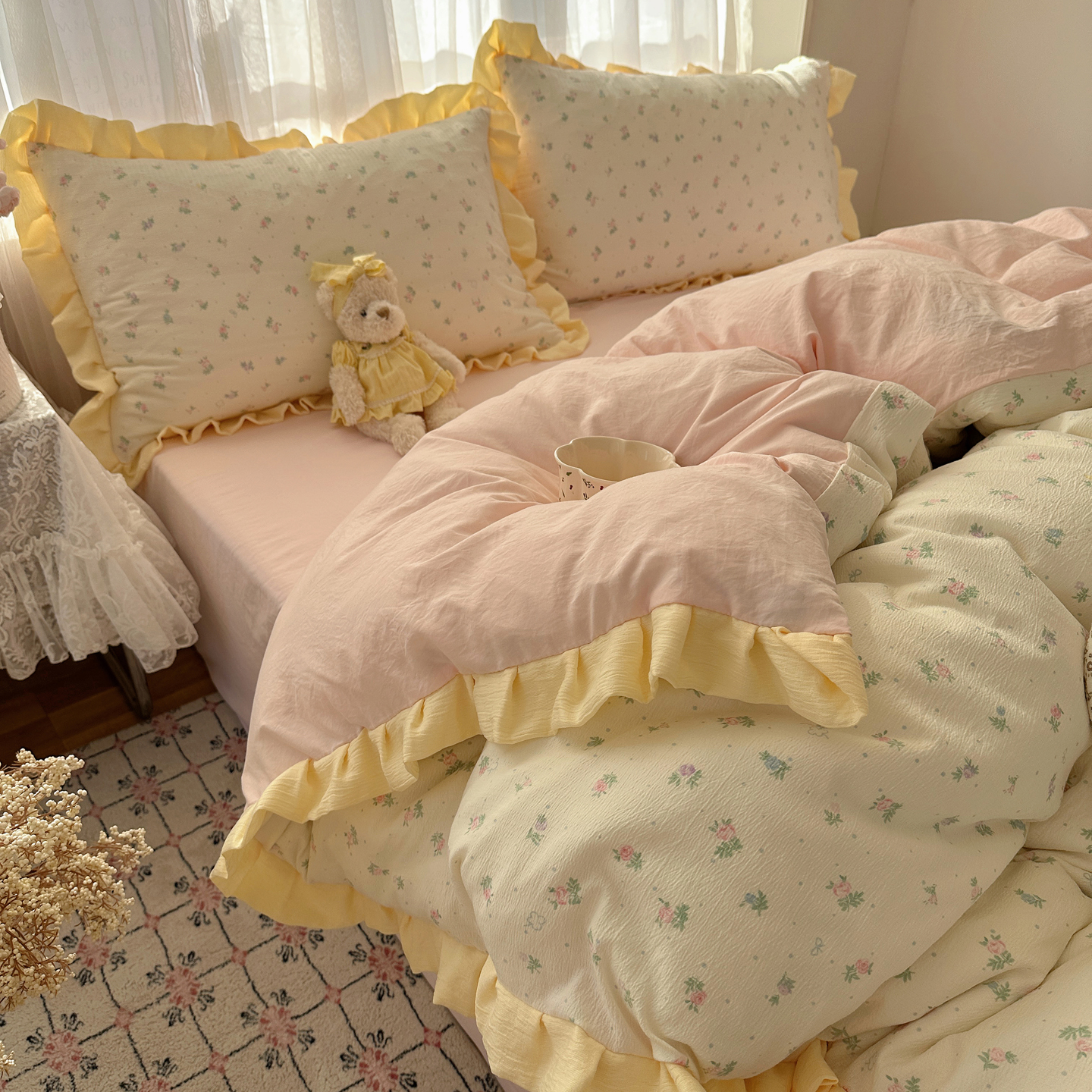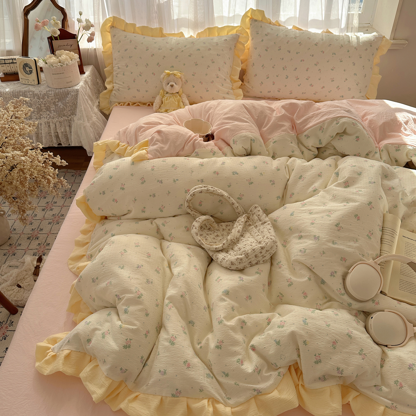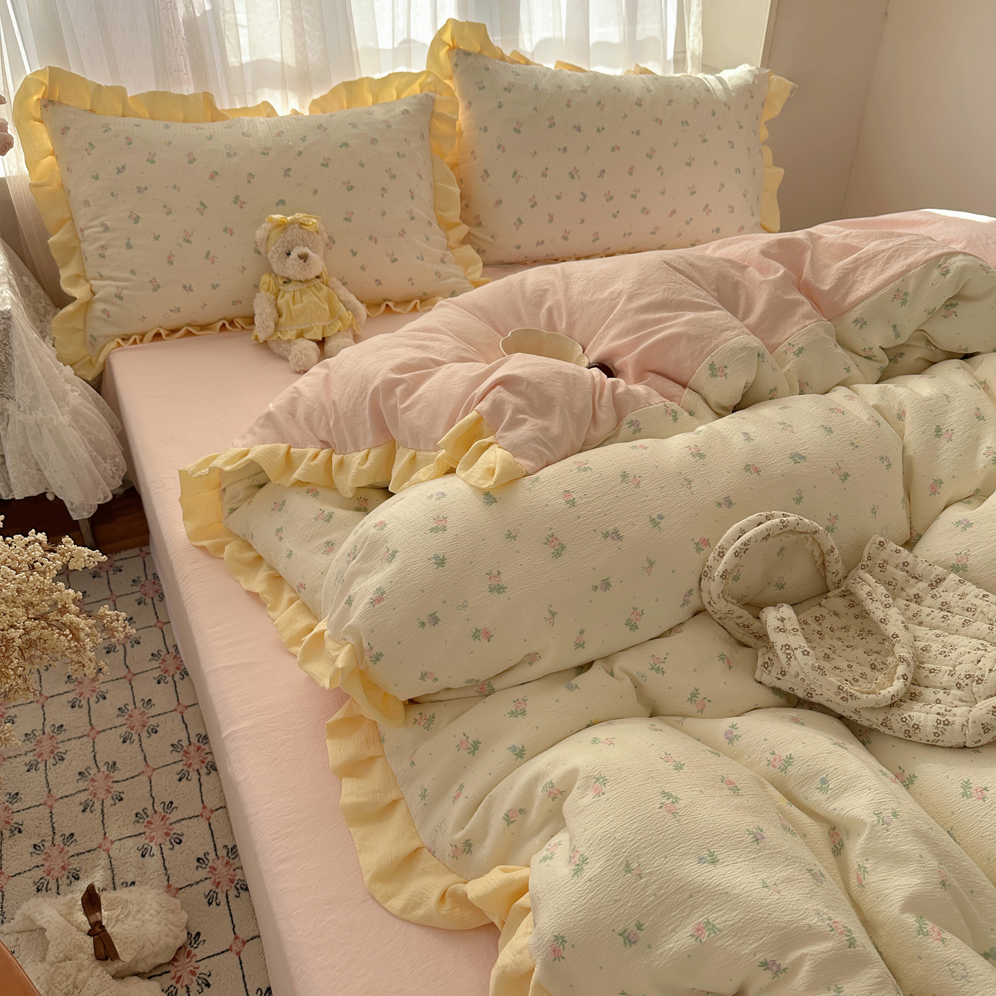 当前位置: 91家纺网 > 商品网购 > 床品套件 > 四件套 > 双层纱四件套 > 顾里家纺 2025新款韩系花边皱皱纱四件套 韩系花花