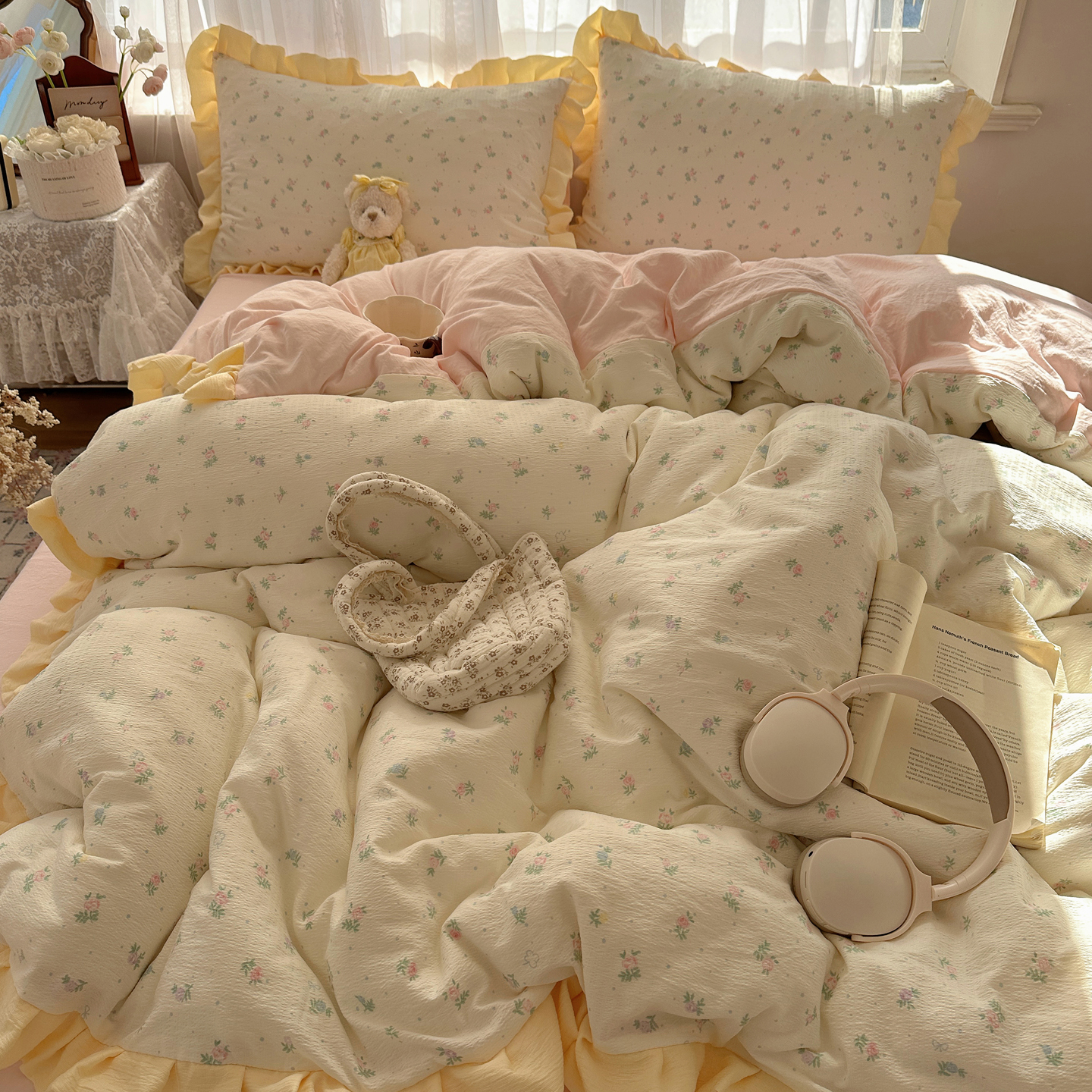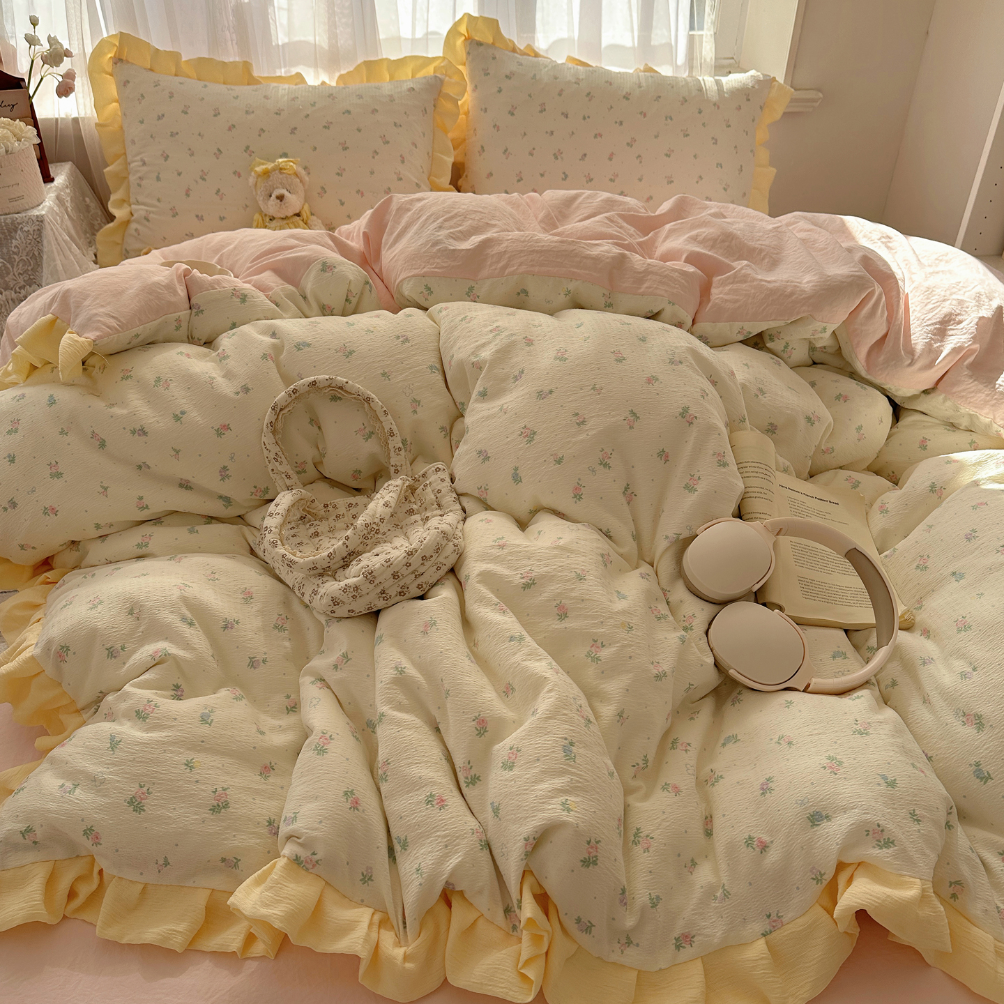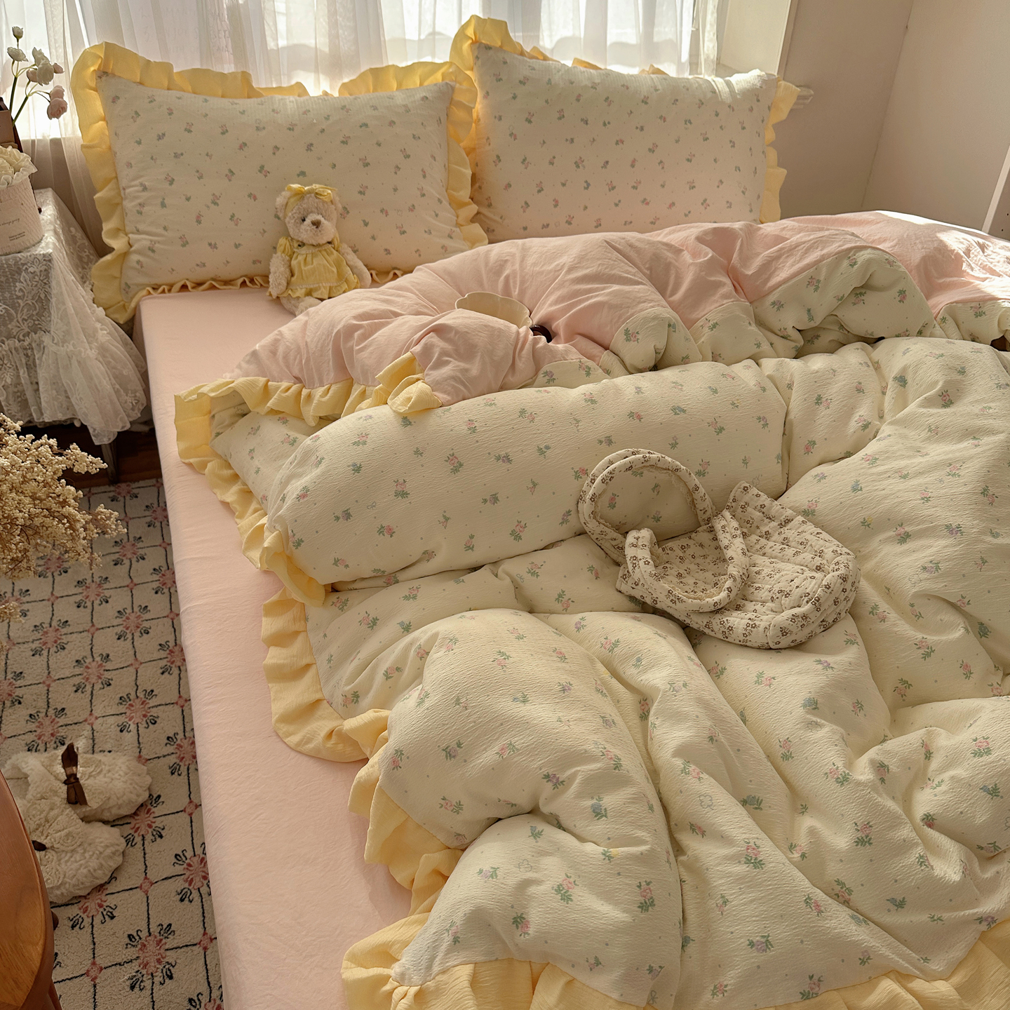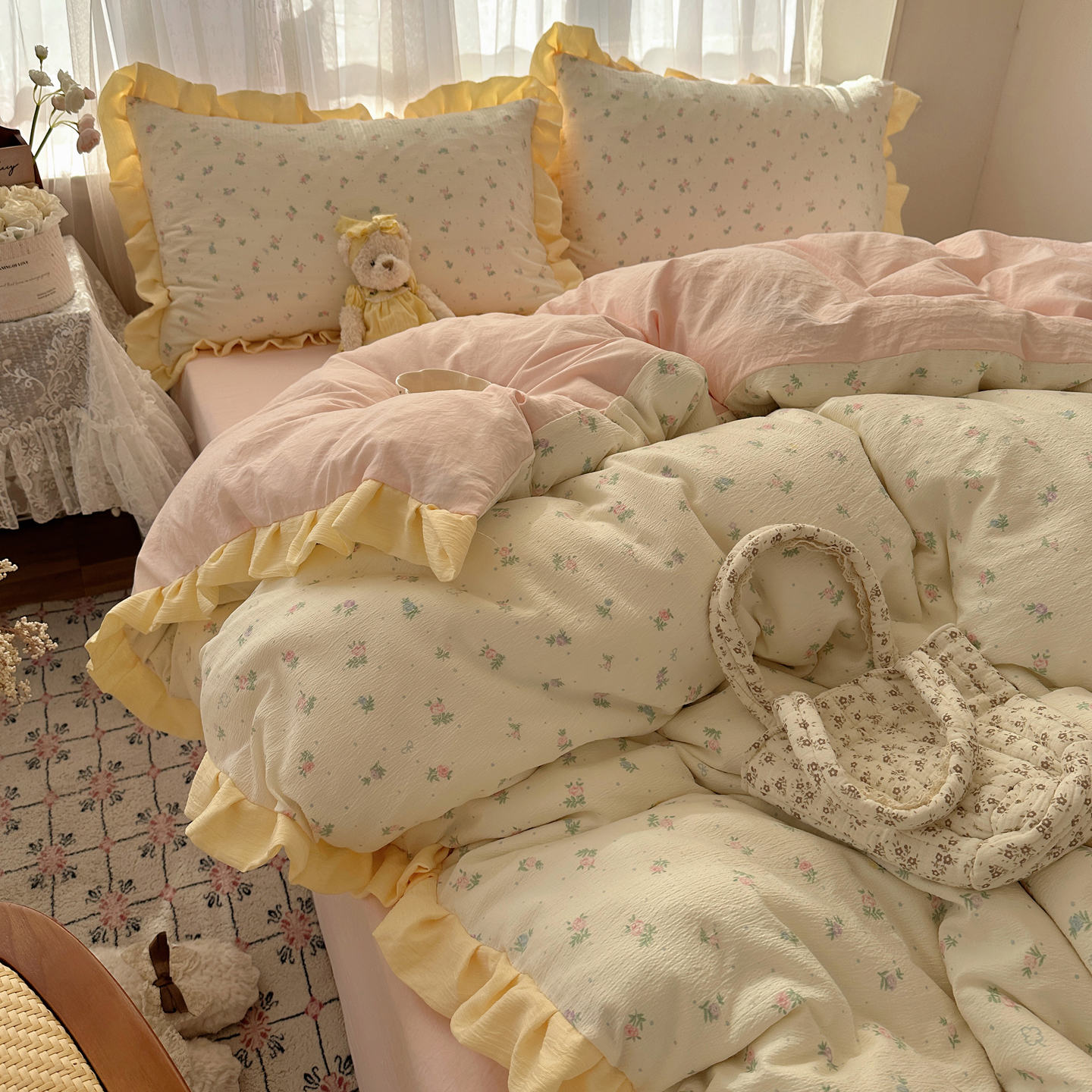 当前位置: 91家纺网 > 商品网购 > 床品套件 > 四件套 > 双层纱四件套 > 顾里家纺 2025新款韩系花边皱皱纱四件套 韩系花花