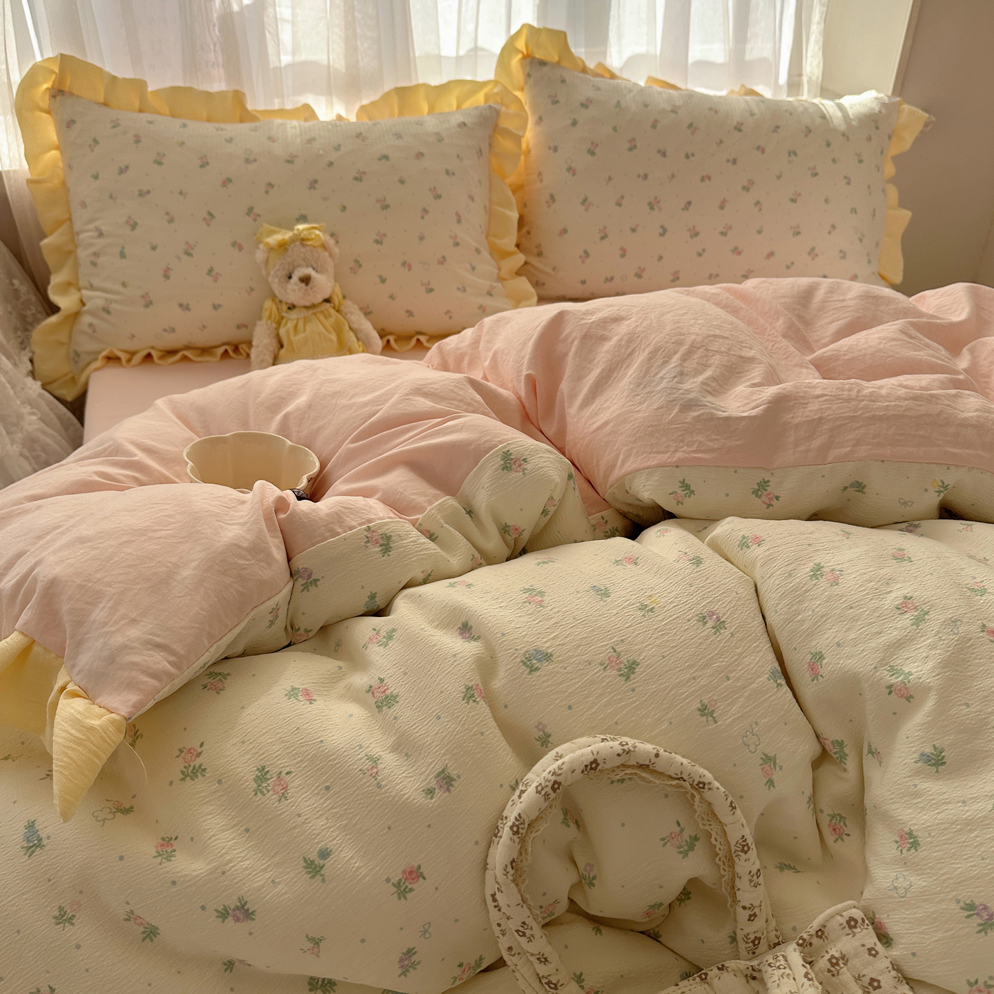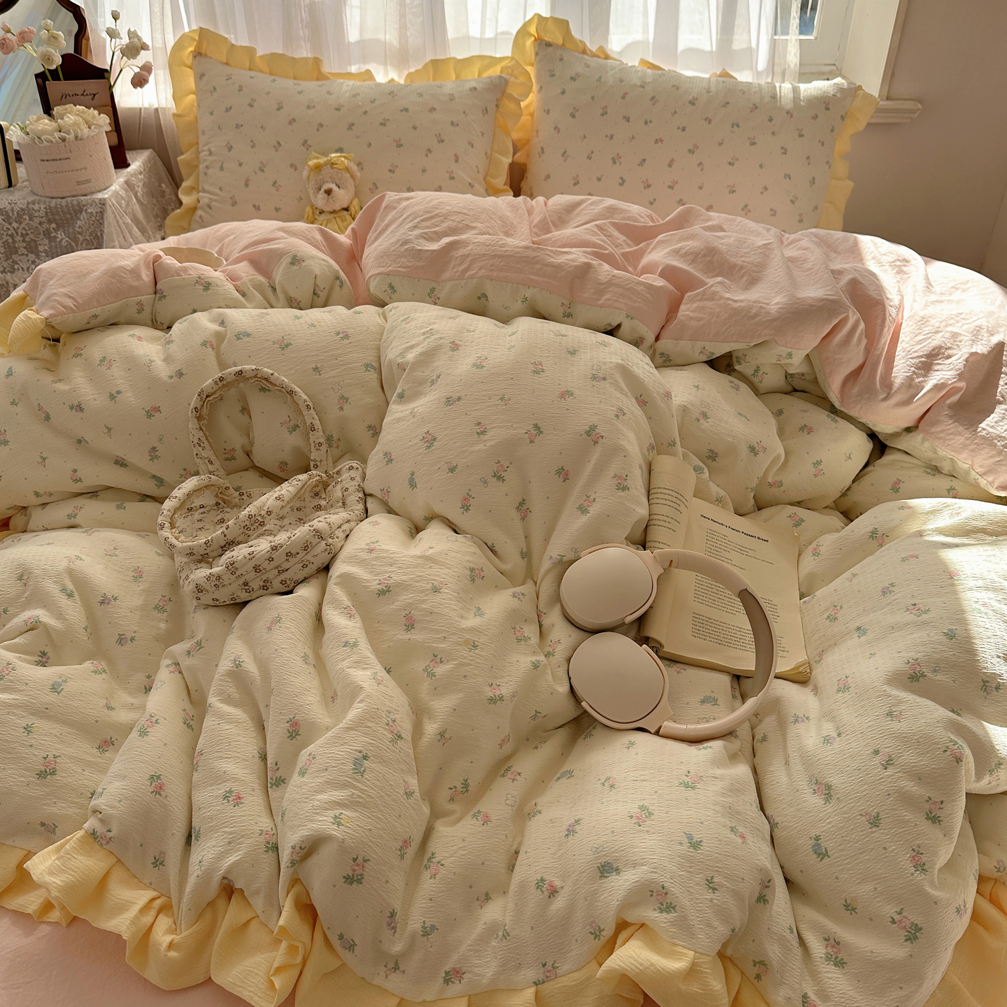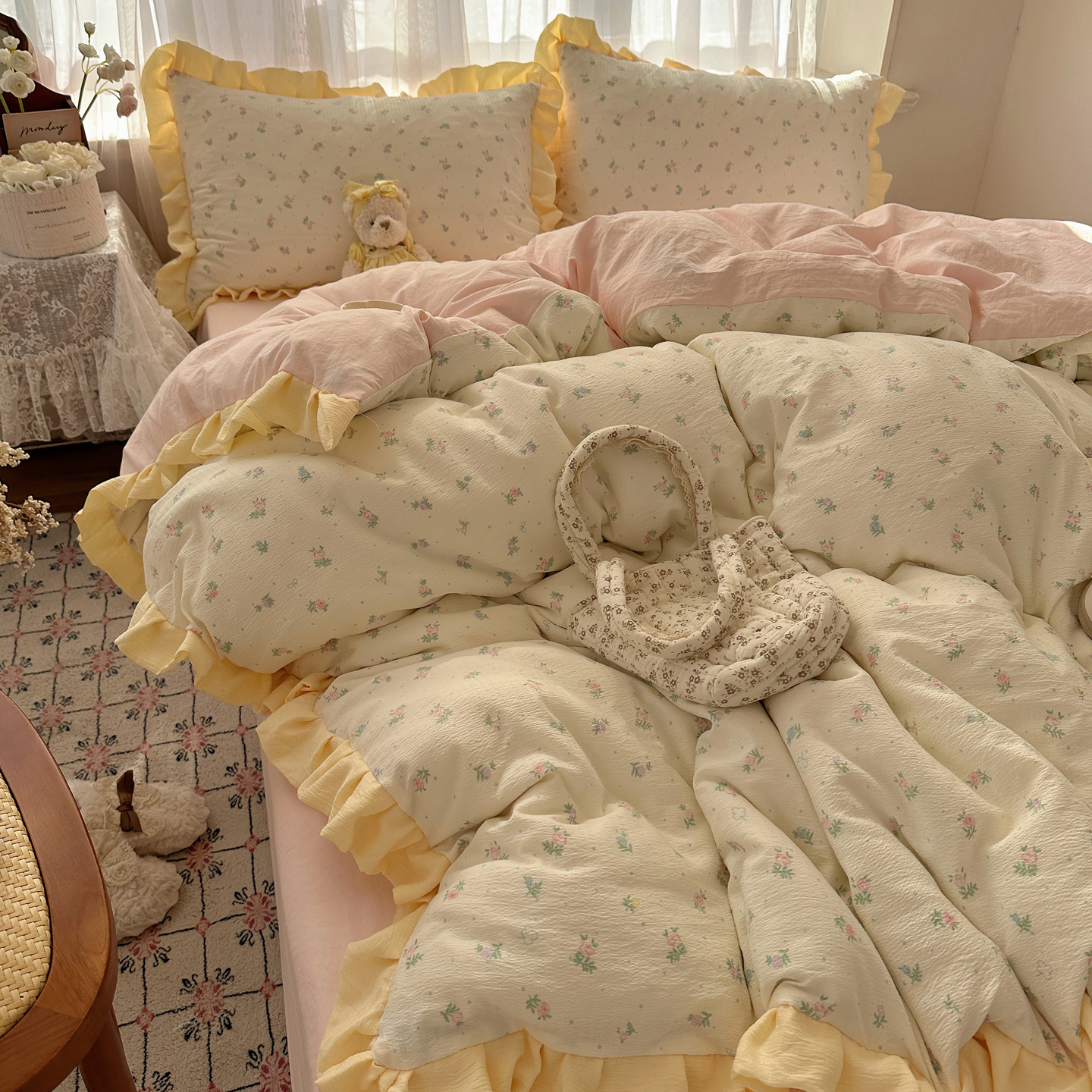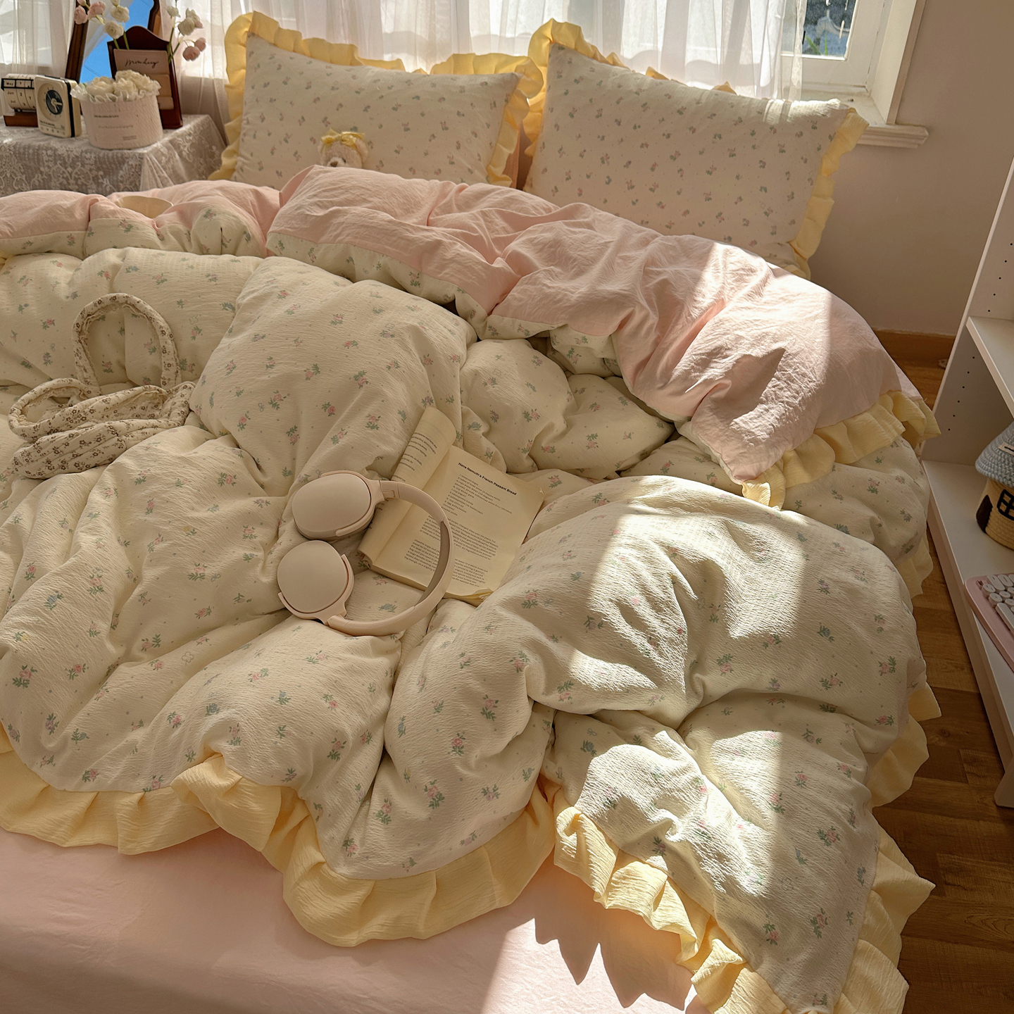 当前位置: 91家纺网 > 商品网购 > 床品套件 > 四件套 > 双层纱四件套 > 顾里家纺 2025新款韩系花边皱皱纱四件套 韩系花花