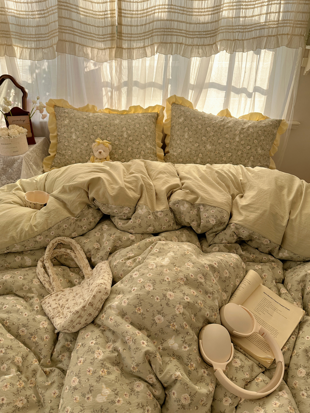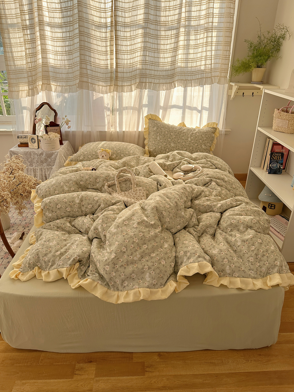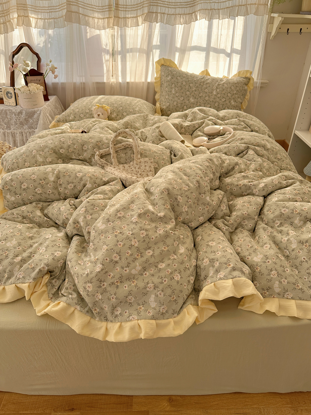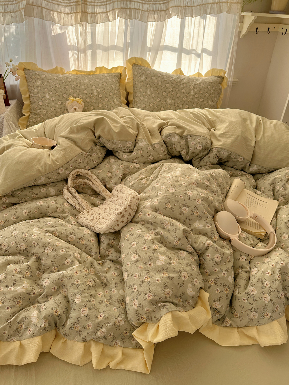 当前位置: 91家纺网 > 商品网购 > 床品套件 > 四件套 > 双层纱四件套 > 顾里家纺 2025新款韩系花边皱皱纱四件套 紫樱兔